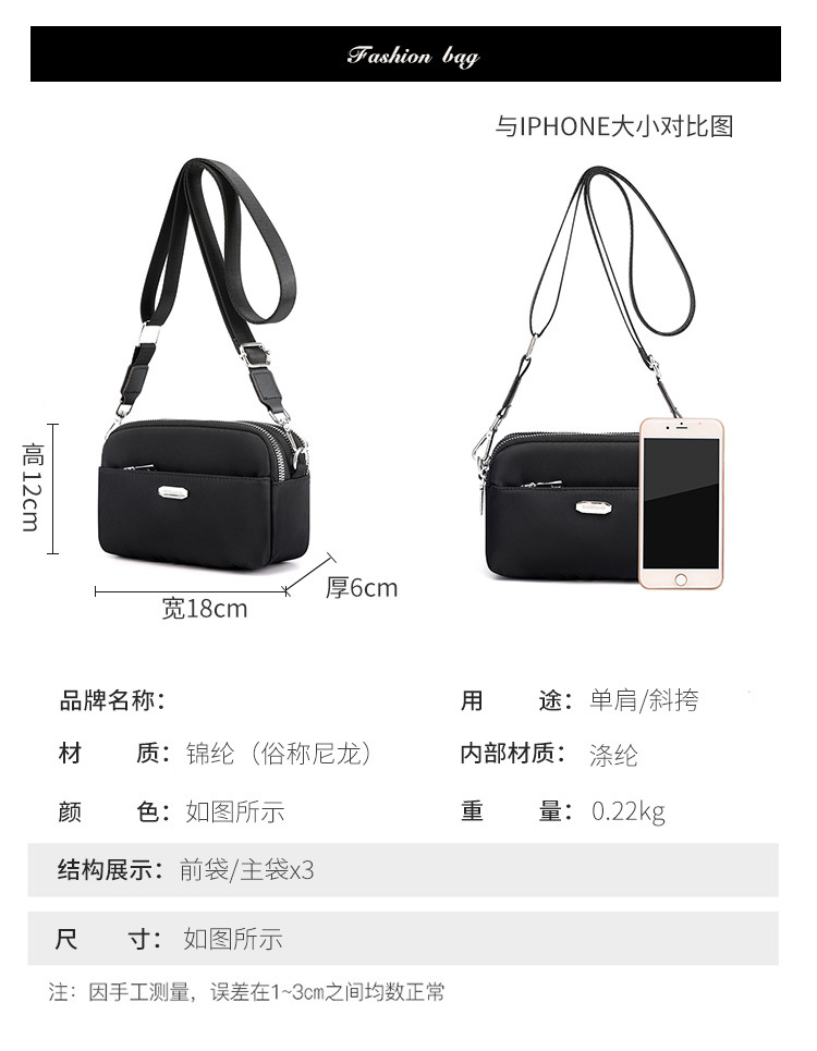 크로스보더 소형 가방 미니 크로스바디 백 2024 신상 여성용 가방 캔버스 숄더백 멀티 지퍼 방수 옥스포드 천 여성용 가방스토어 가기