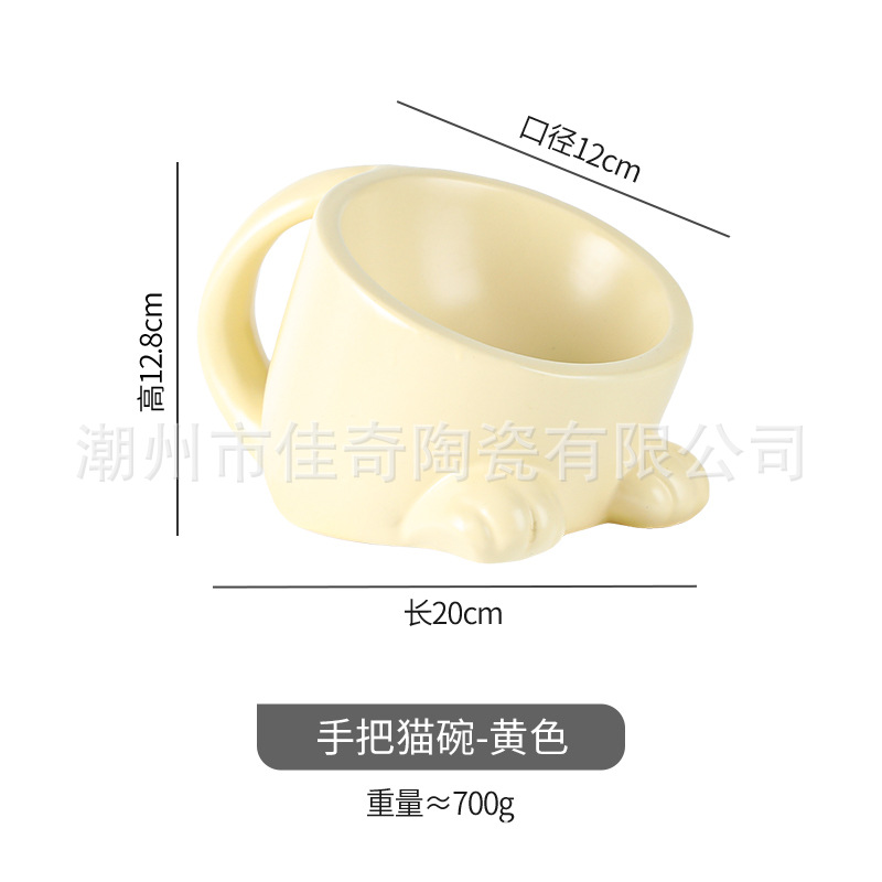• 손잡이 고양이 그릇 [라이트 옐로우]
