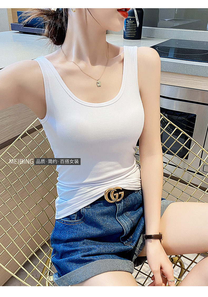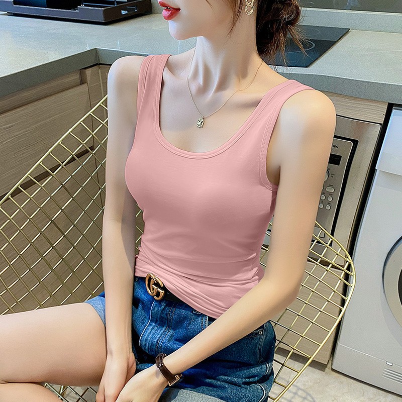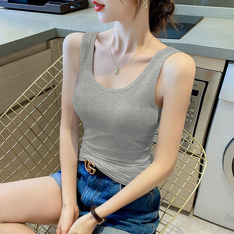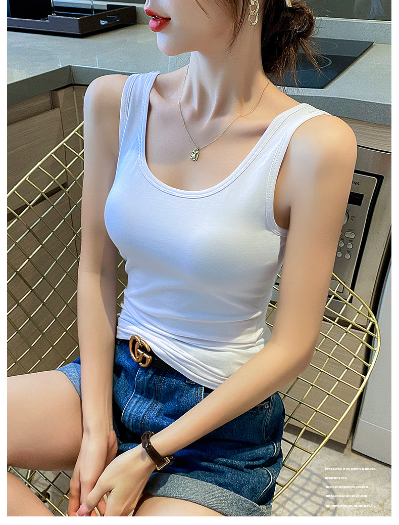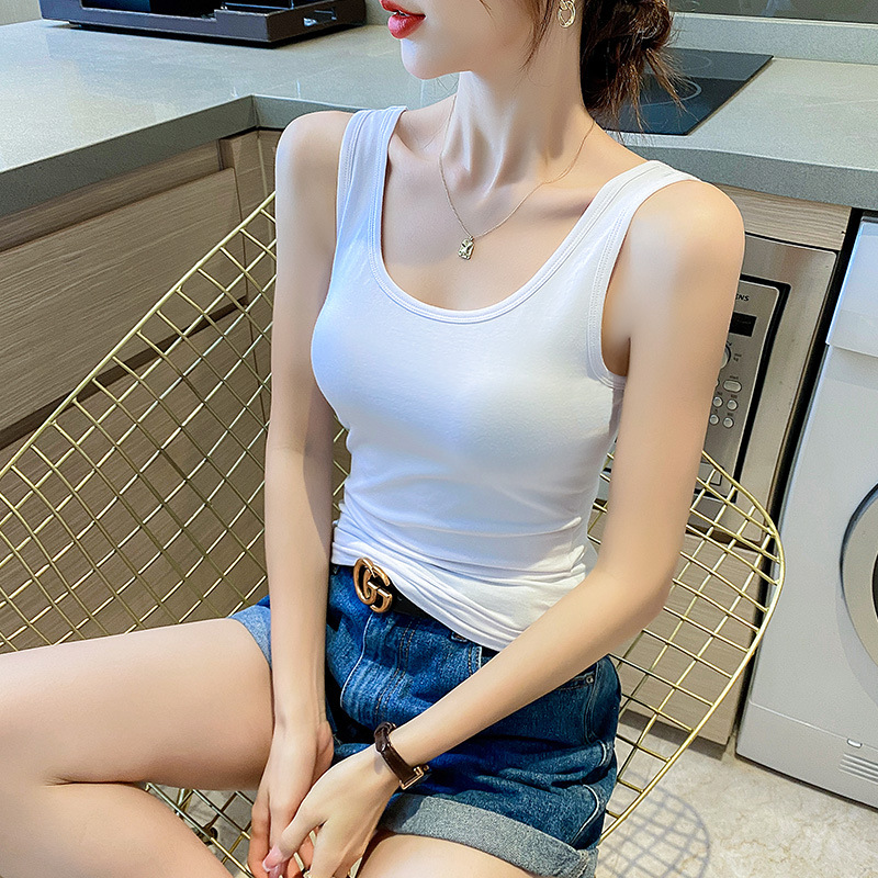 순면 질감 아름다운 백 화이트 캐미솔 조끼 여성용 여름 겉옷 스포츠 민소매 타이트 이너웨어 여름 요가 탑스토어 가기