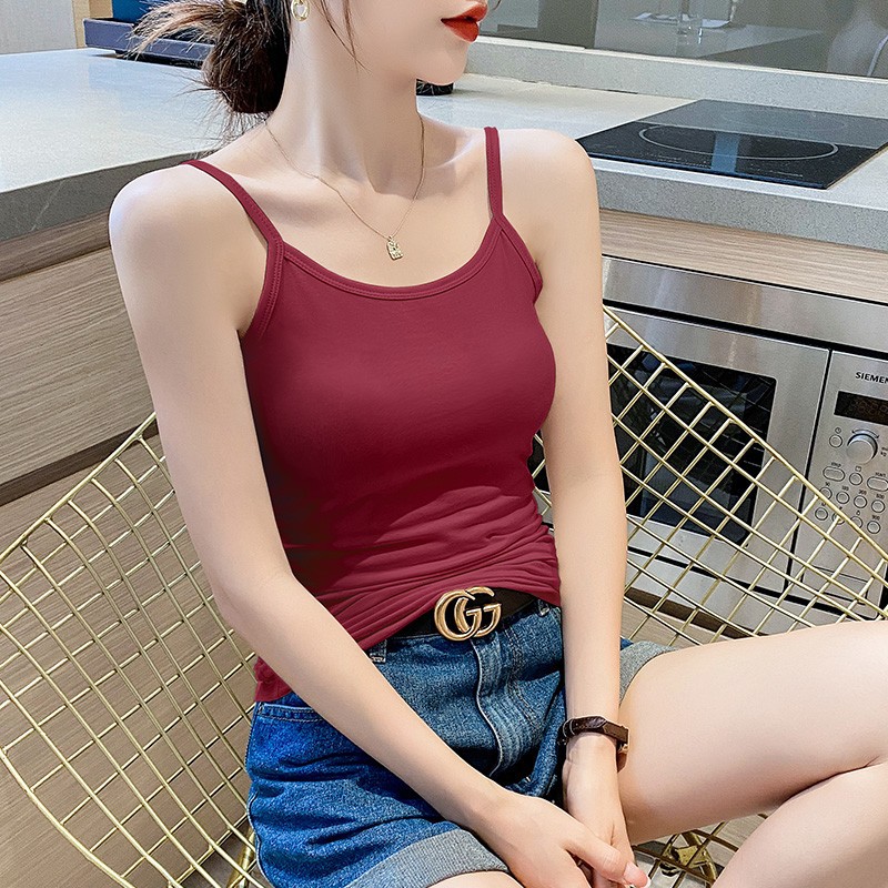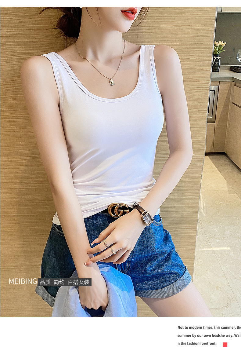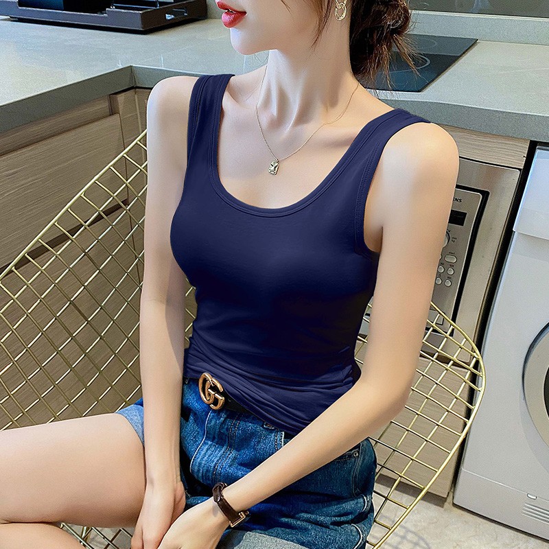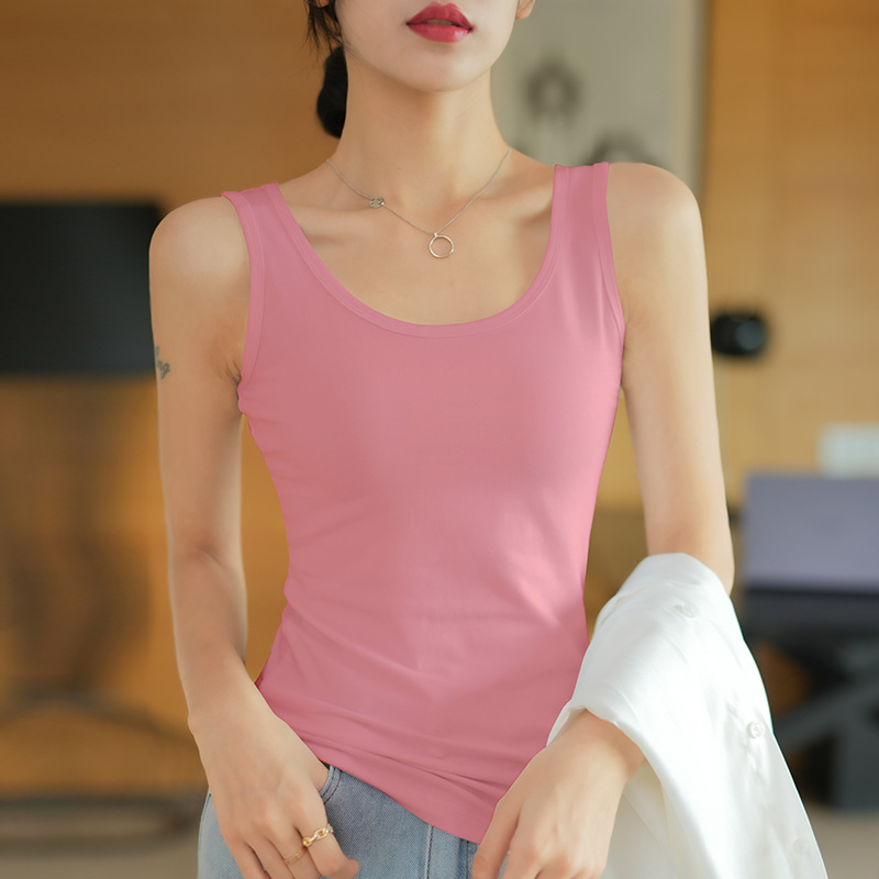 순면 질감 아름다운 백 화이트 캐미솔 조끼 여성용 여름 겉옷 스포츠 민소매 타이트 이너웨어 여름 요가 탑스토어 가기