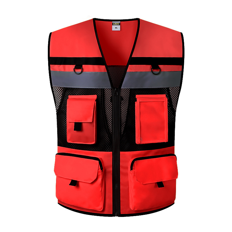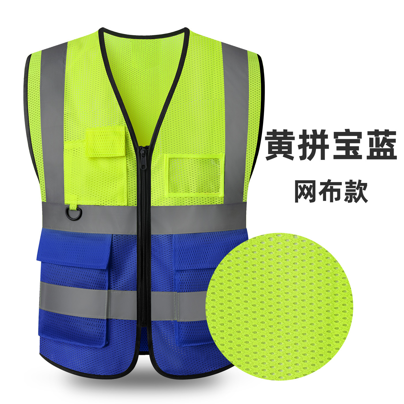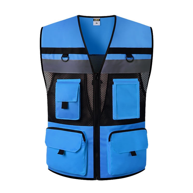 LIKAI 반사 조끼 도로 교통 통기성 조끼 건설 순찰 반사 의류 인쇄 멀티 포켓 안전 의류