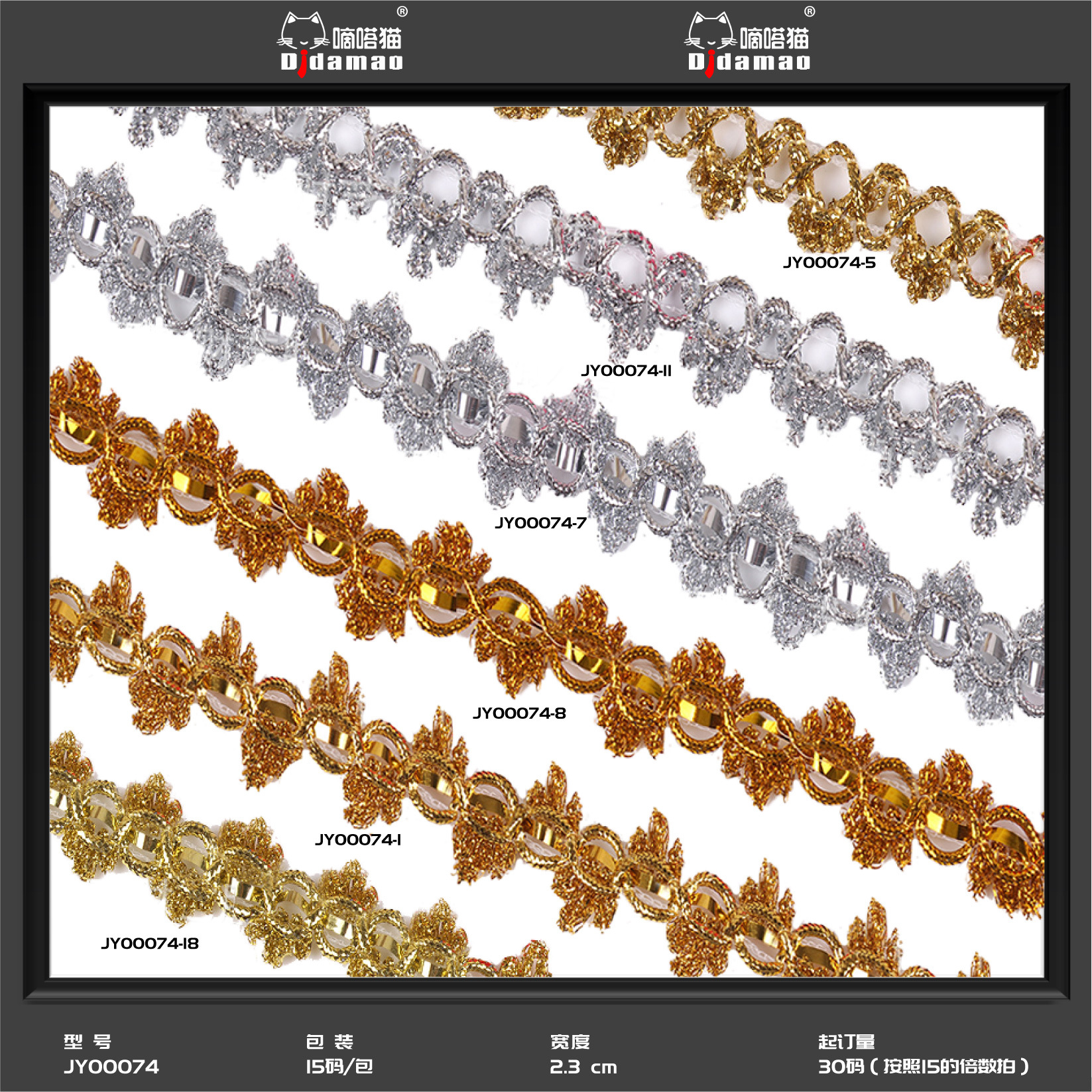 금색과 실버 실 레이스 의류 수제 장식 웨딩 레이스 의류 액세서리 웨이브 크라운 골드 실크 레이스스토어 가기