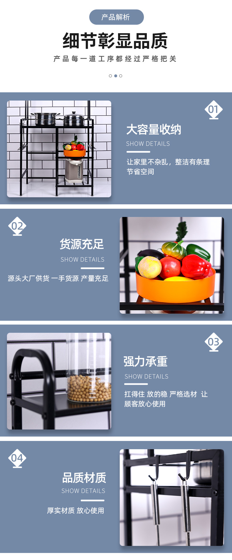 도매 가정용 가스레인지 선반 주방 수납 선반 무타공 액화가스 선반 조미료 선반 다층 선반스토어 가기