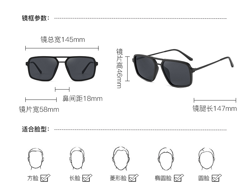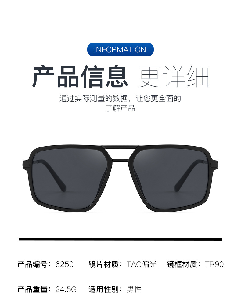 2024 신형 더블 빔 링 남성용 선글라스 대형 프레임 운전용 안경 TAC 편광 고급 선글라스 트렌디 6250
