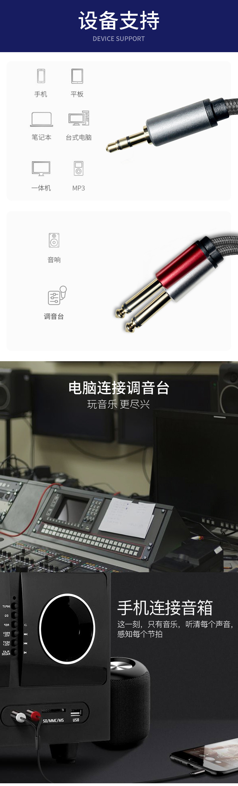 3.5mm 레볼루션 더블 6.35/6.5 Gongda 2 코어 오디오 컴퓨터 믹서 접속 회선 1-2 오디오 회선