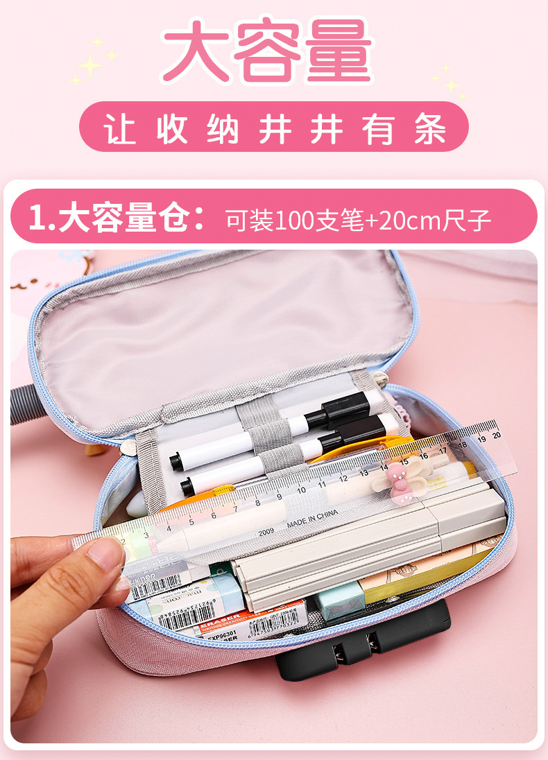 한국형 고급스러운 디자인의 초중학생용 도난방지 필통, 중학생용 비밀번호 잠금 필통