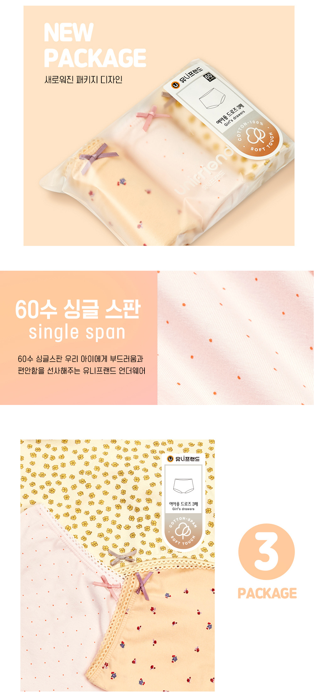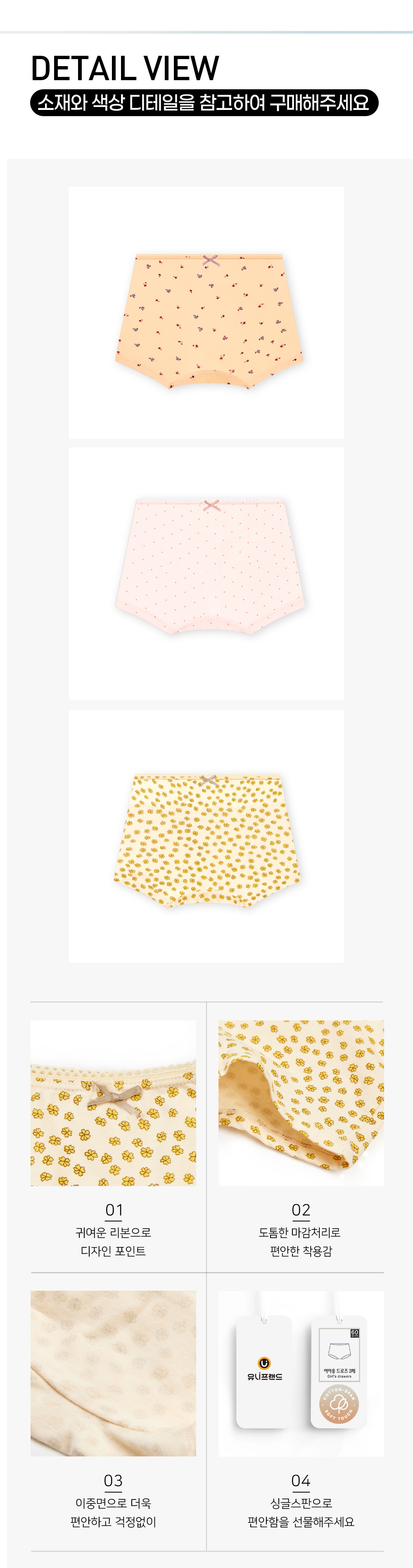 • 여아용 꽃무늬(3팩)