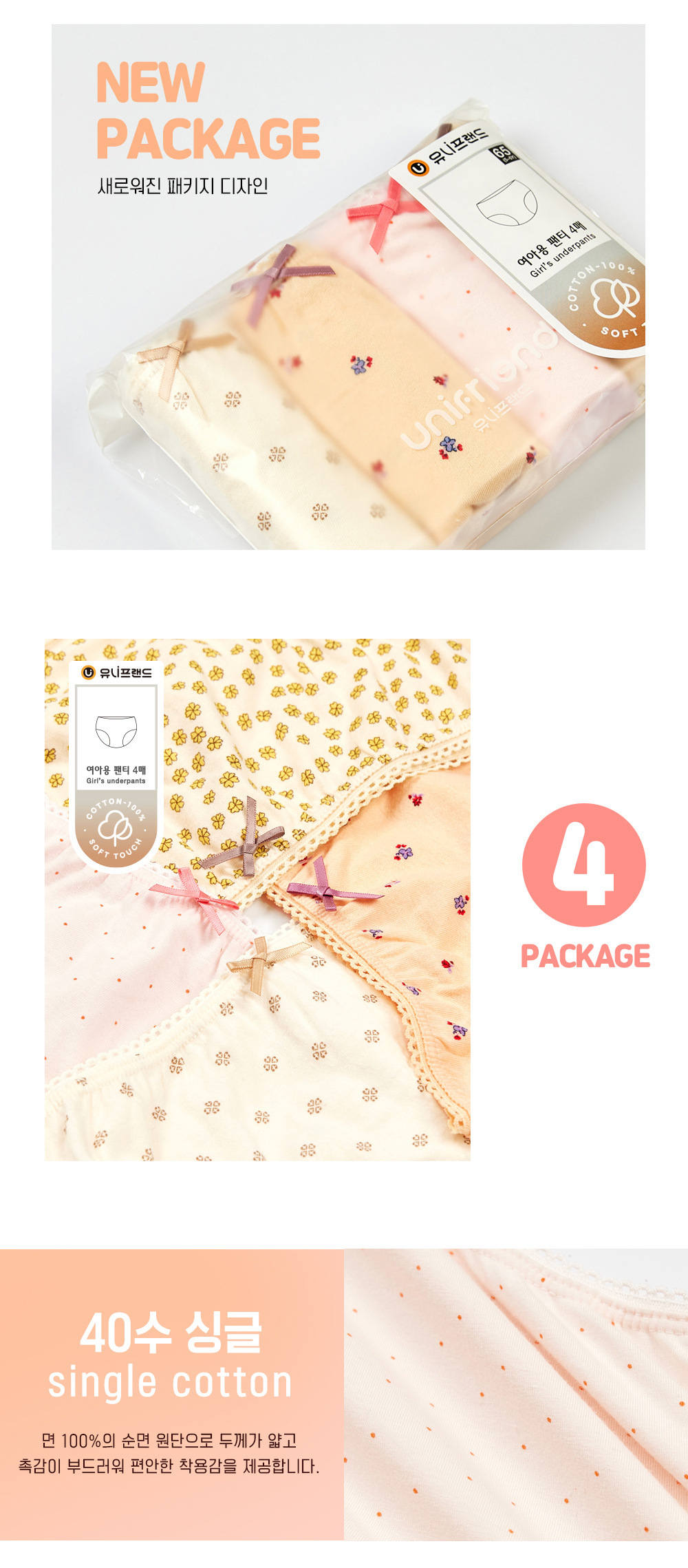 • 여아용 꽃무늬(4팩)