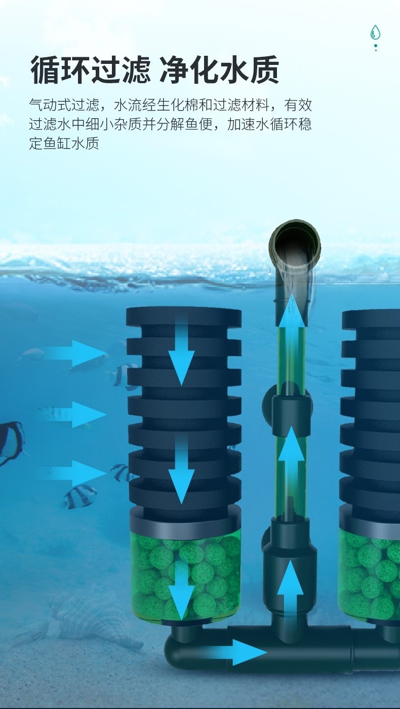 예 물 고블린 수족관 필터 유동층 세균 흡입 미니 가스 방지 LIFT 소형 내장 쓰리인원