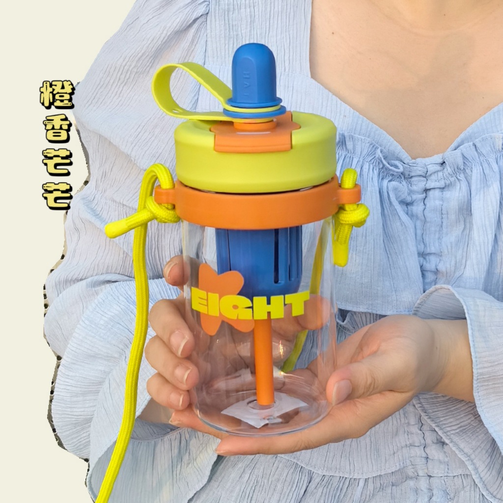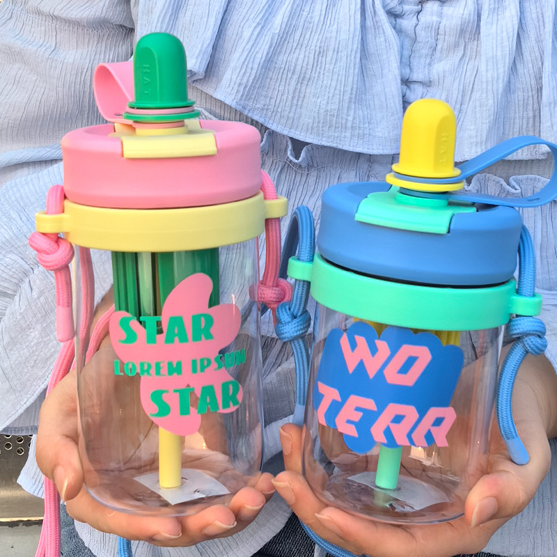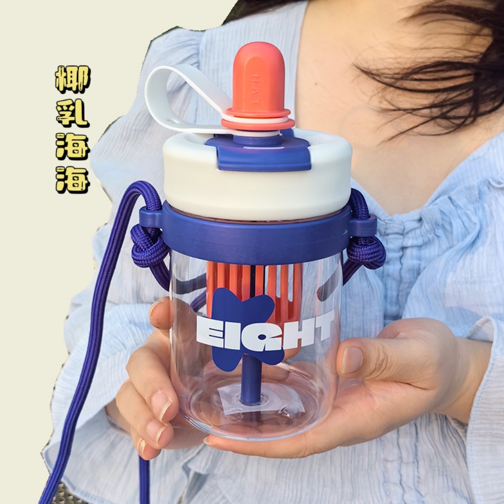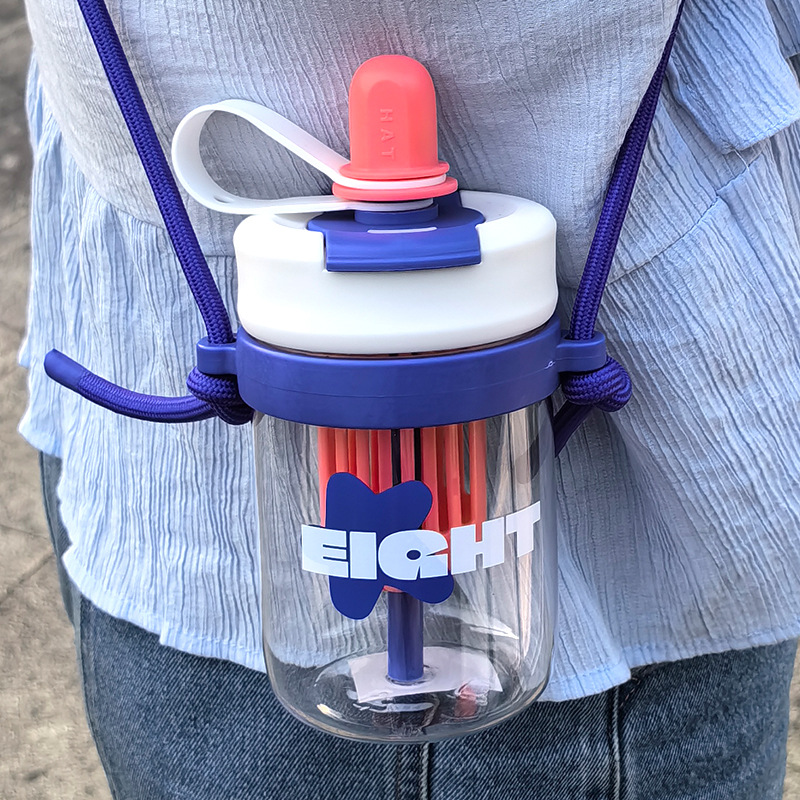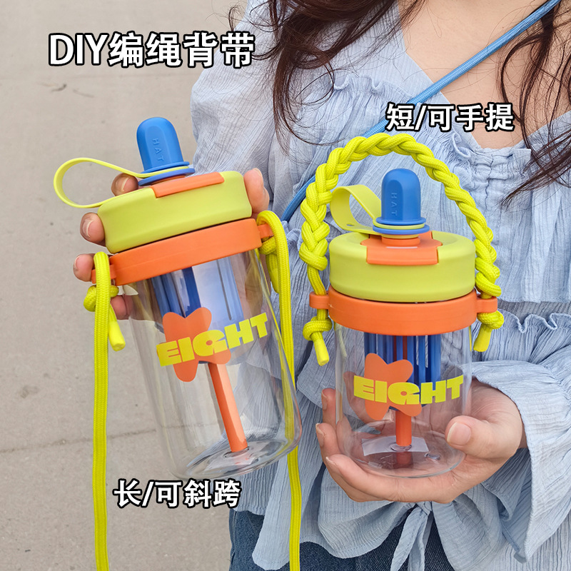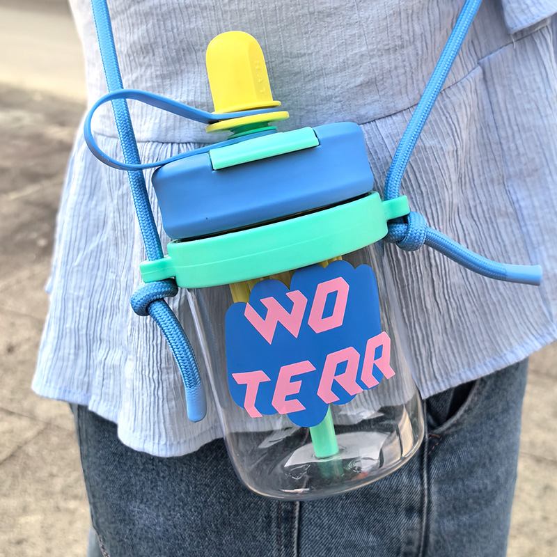 사이버 연예인 물컵 소년과 소녀 학생을위한 고가 밀짚 플라스틱 컵 크로스 바디 Instagram 유행 플라스틱 컵 여름 주전자