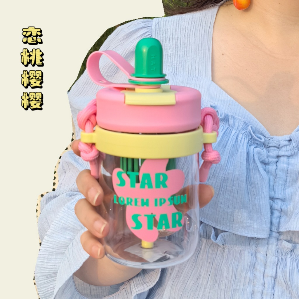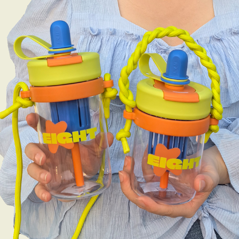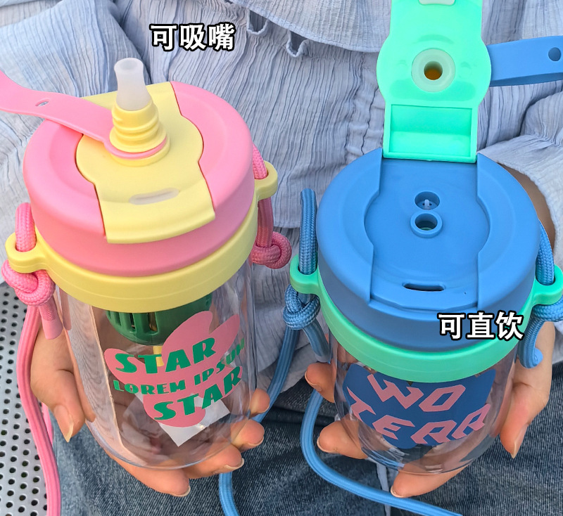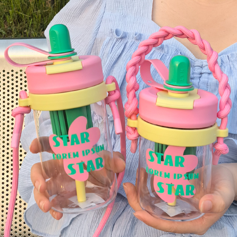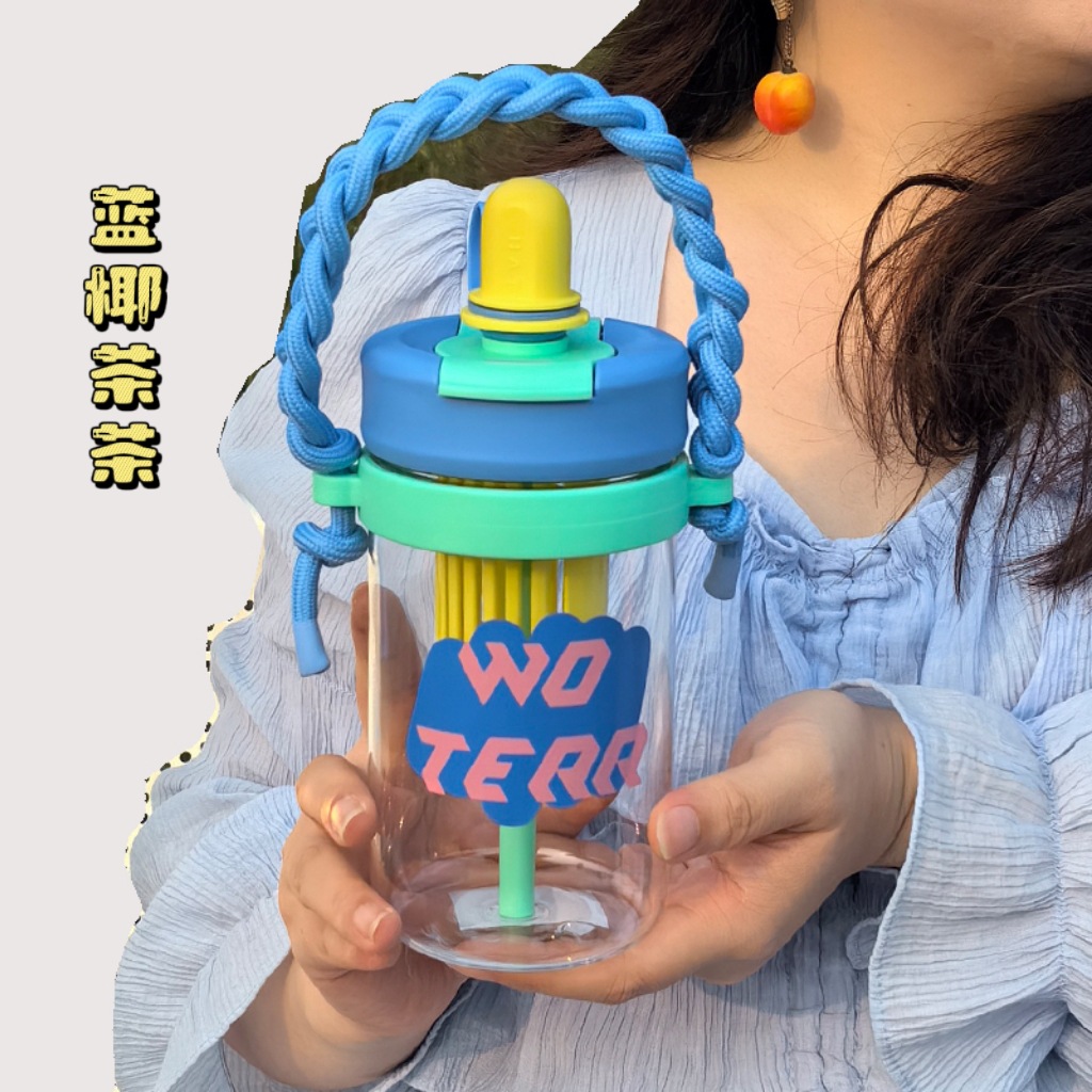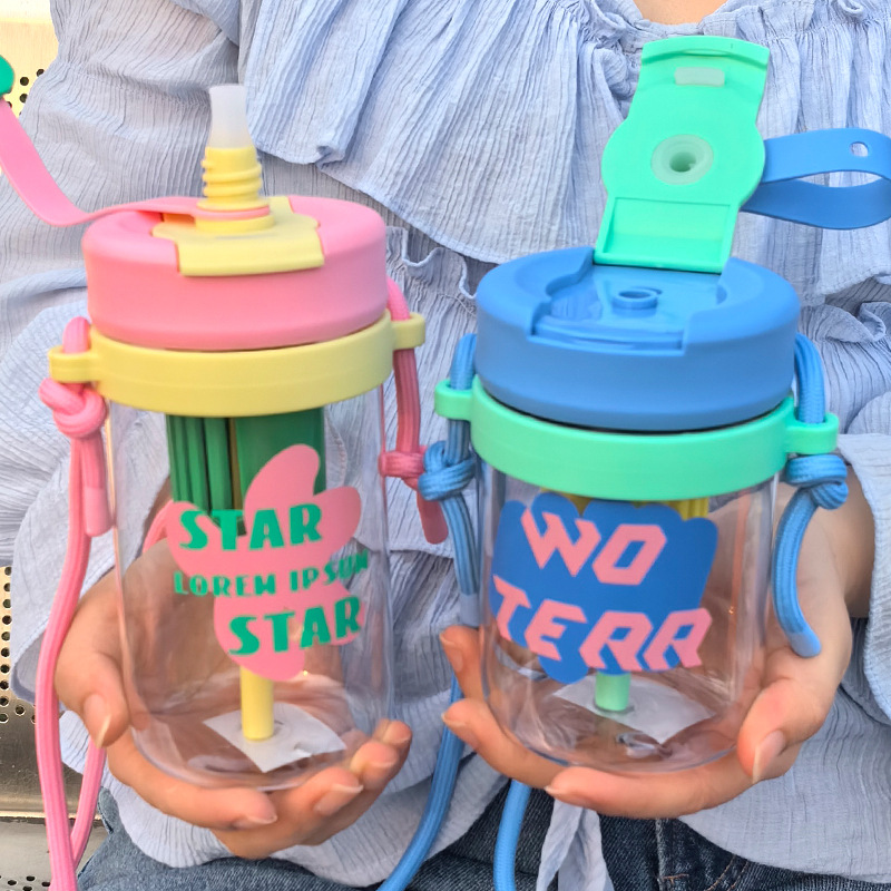 사이버 연예인 물컵 소년과 소녀 학생을위한 고가 밀짚 플라스틱 컵 크로스 바디 Instagram 유행 플라스틱 컵 여름 주전자