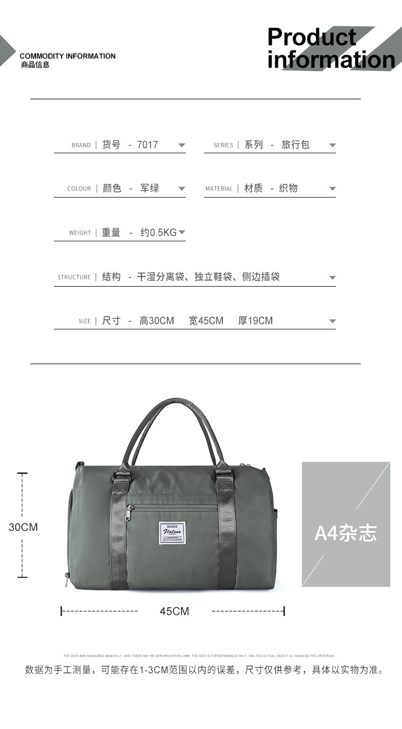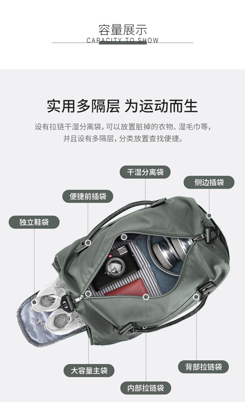 여행 가방 여성용 휴대용 숄더 크로스 바디 피트니스 백 건식 및 습식 분리 대용량 단거리 여행 수하물 가방