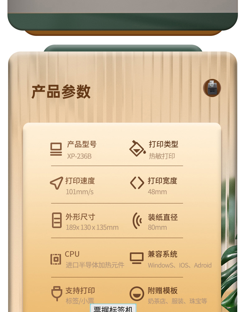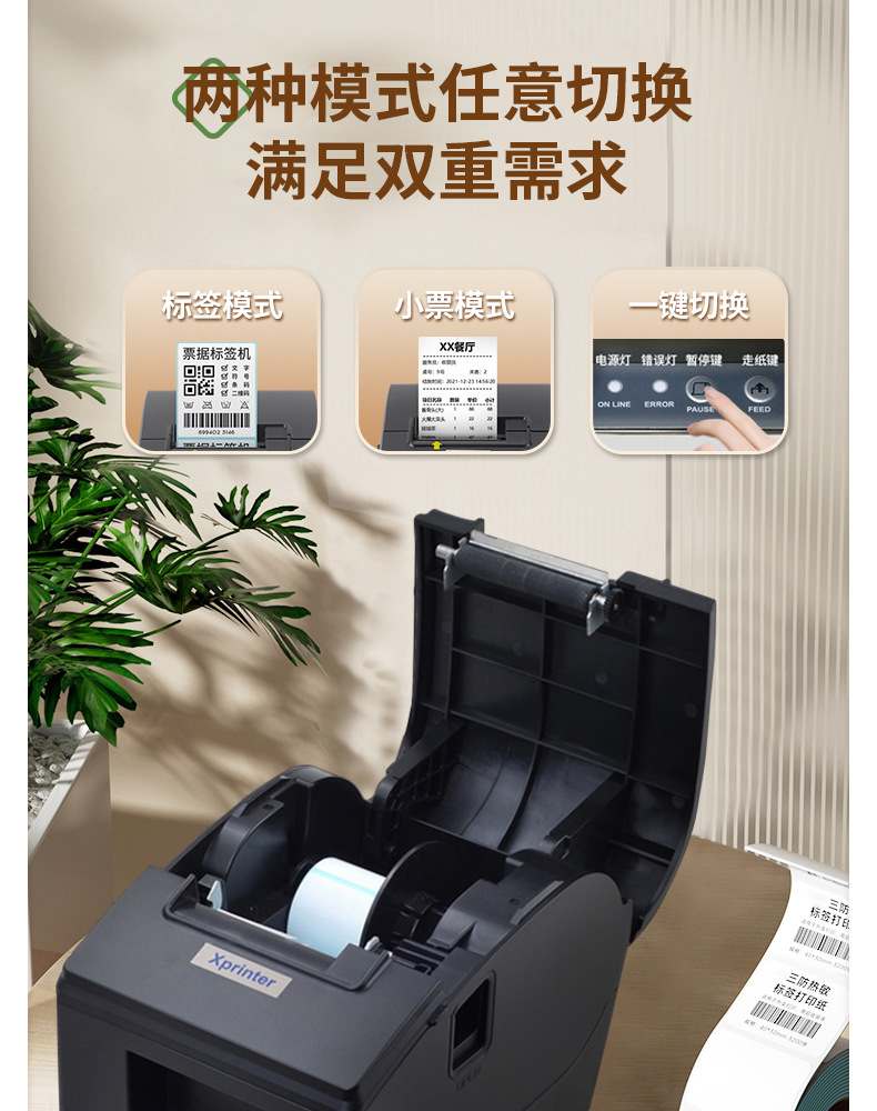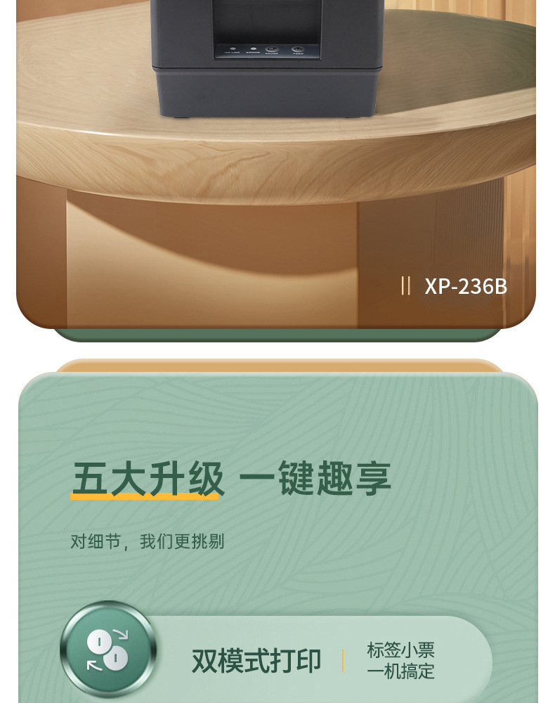 XPrinter 열전사 라벨 프린터 XP-236B 의류 태그 밀크티 2inch 라벨 기계 Xp-T202UA스토어 가기
