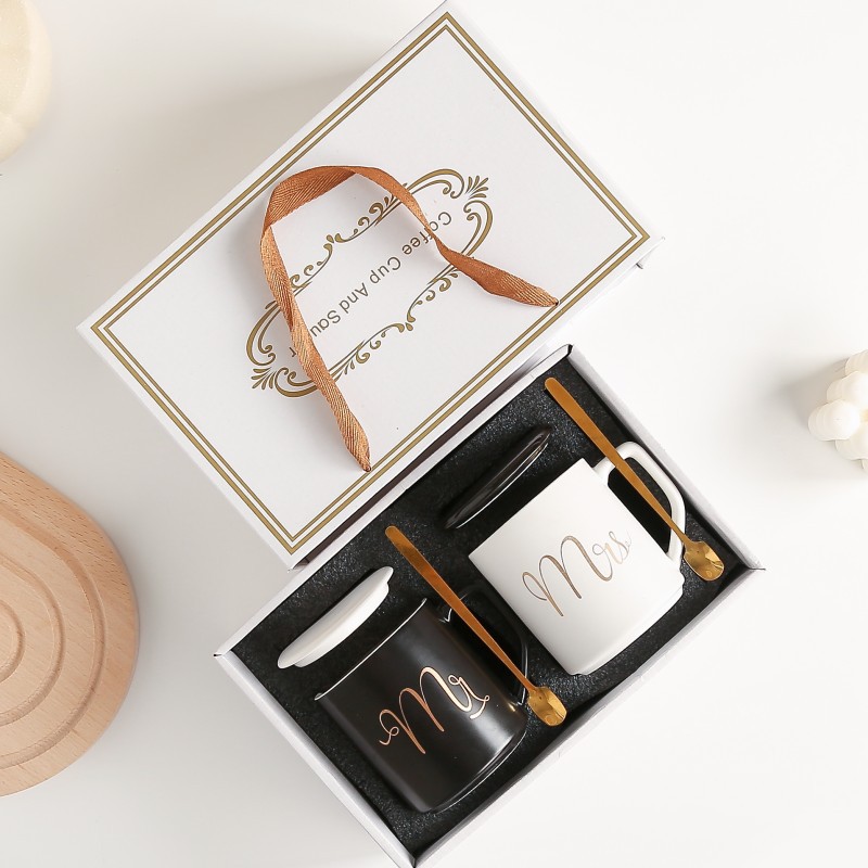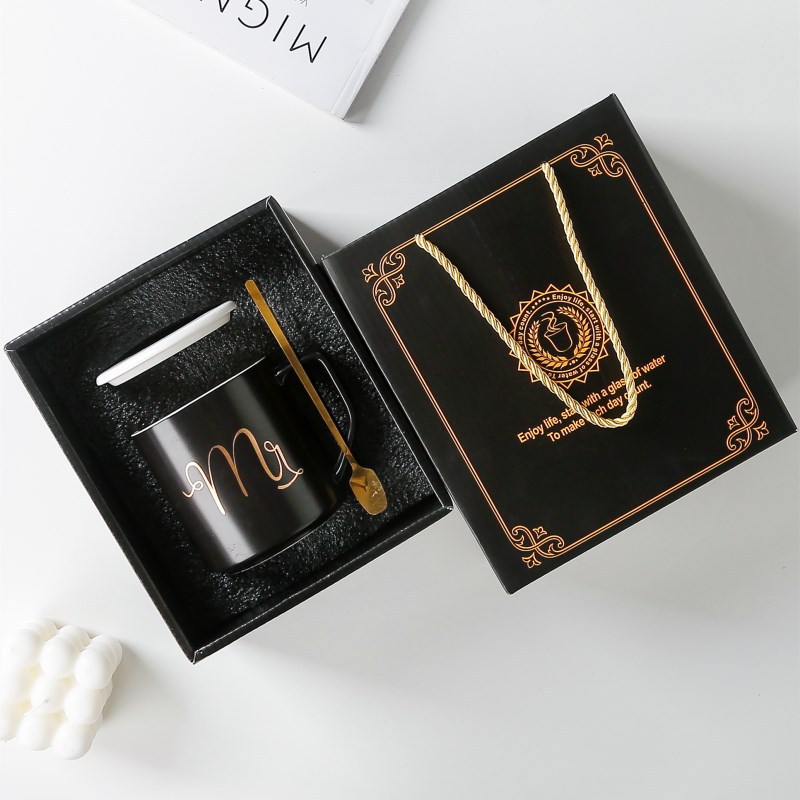 아마존 세라믹 컵 세트(뚜껑 포함) 로고 선물 상자 커플 컵 비즈니스 선물