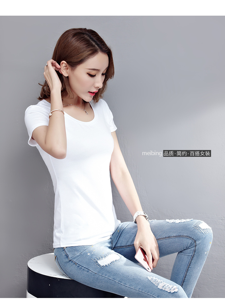 퓨어 코튼 솔리드 컬러 반팔 티셔츠 여성용 슬림핏 여름 여성 의류 2023 신베이스 티셔츠 반팔 타이트 탑스토어 가기