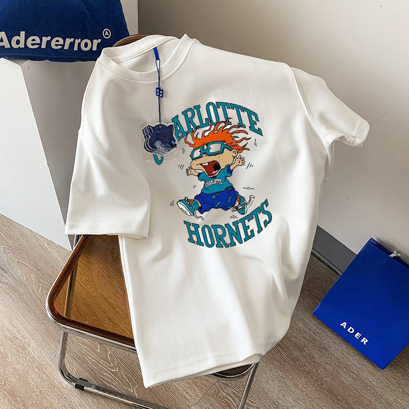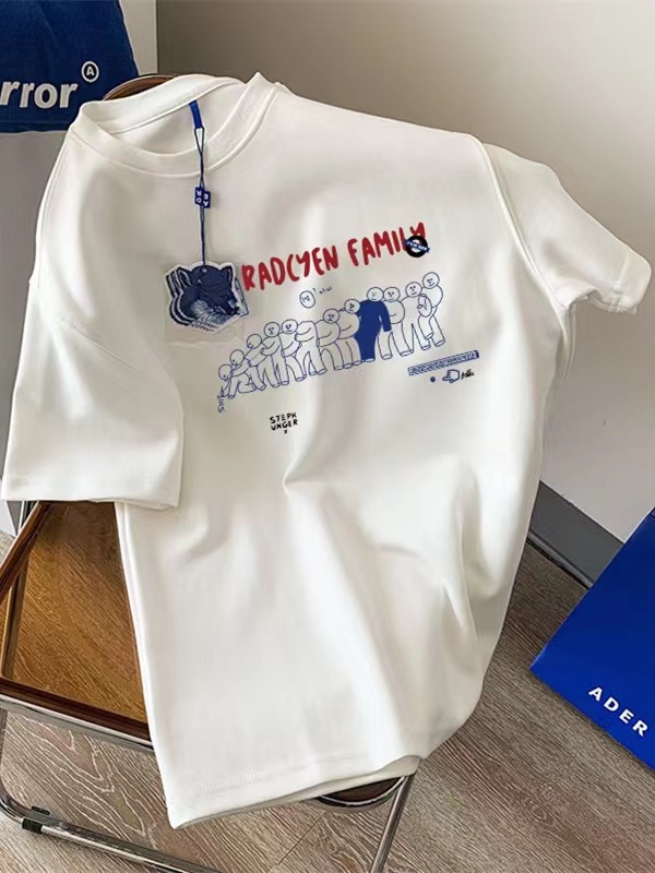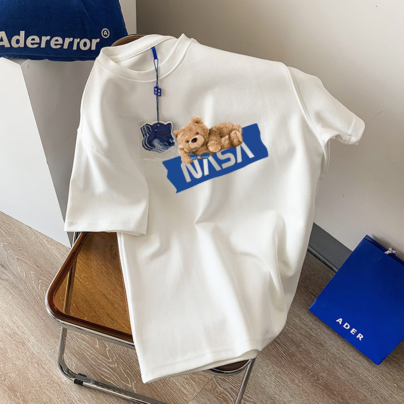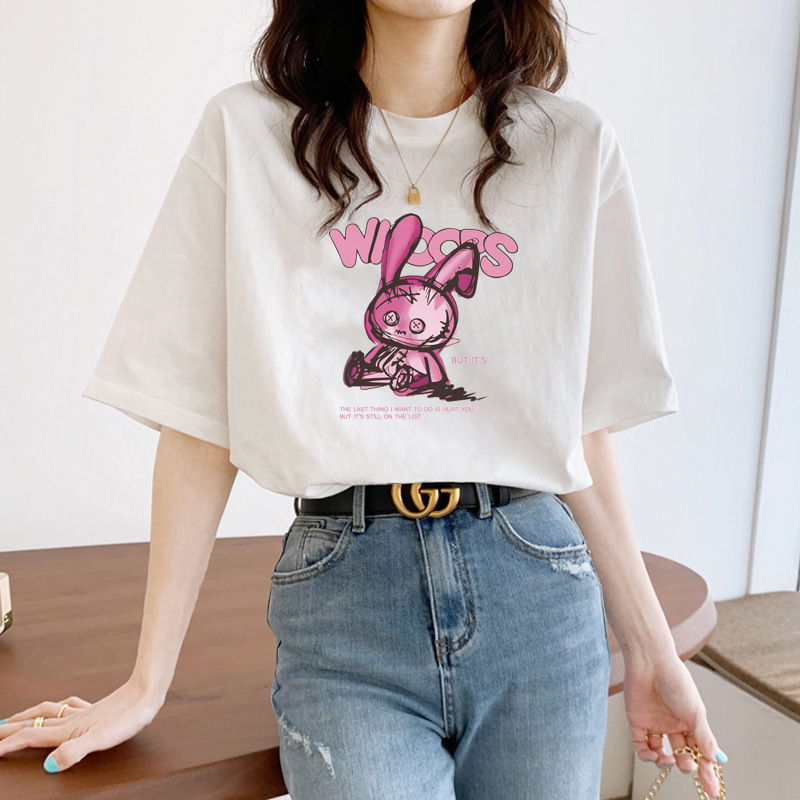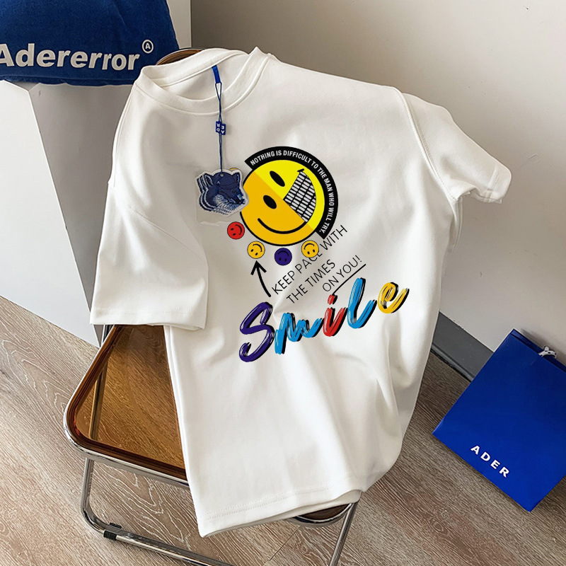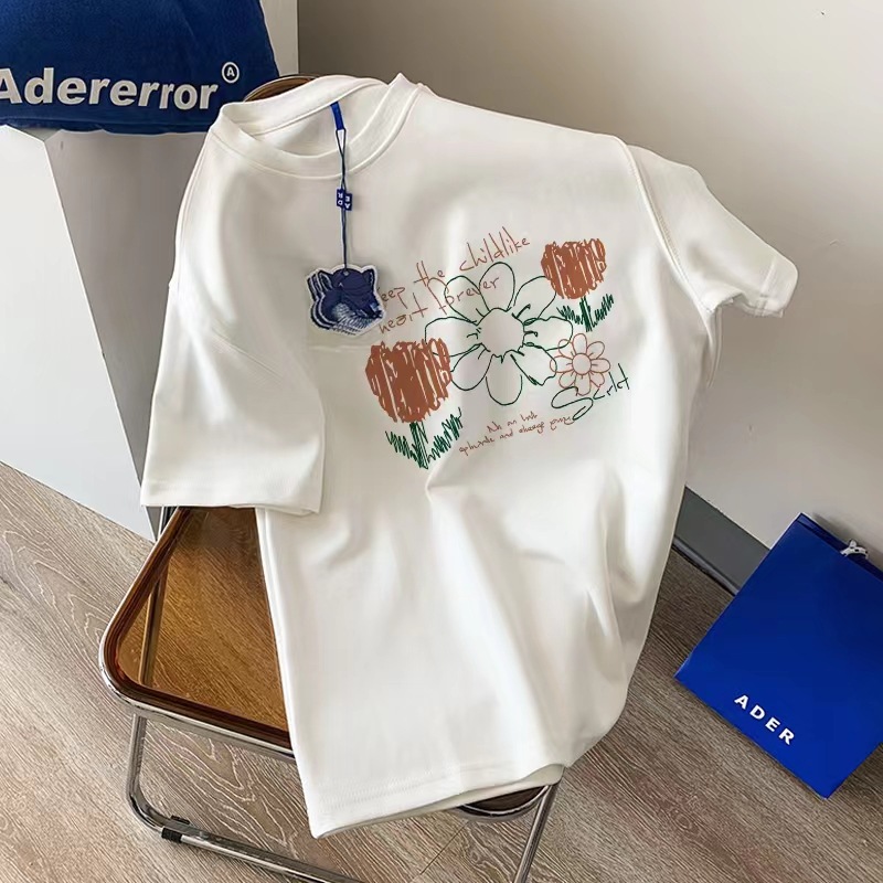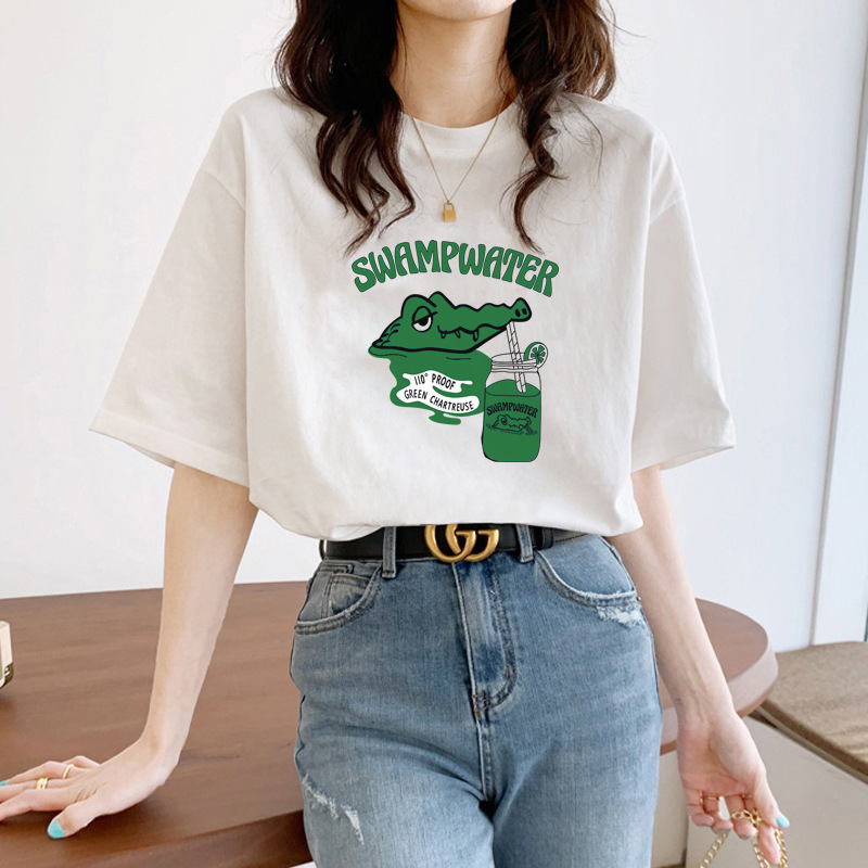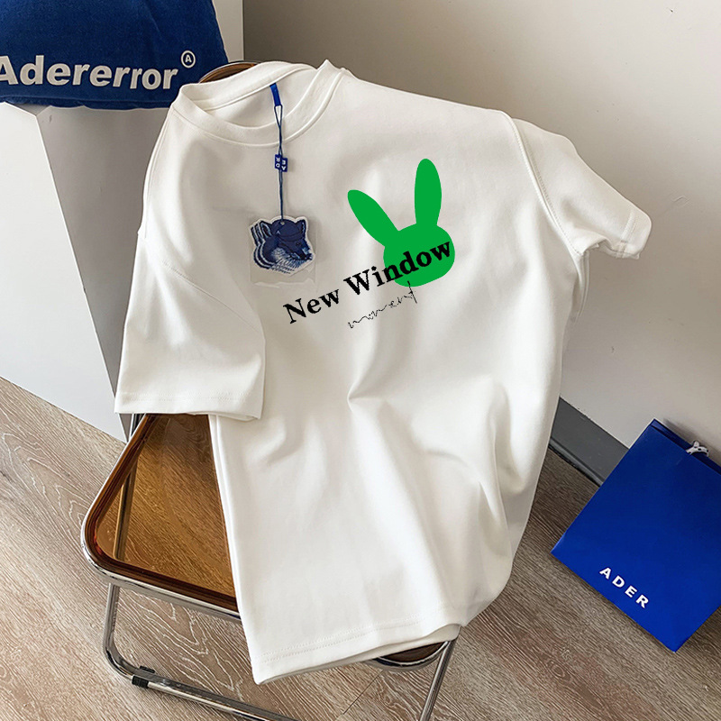 트렌디한 화이트 순면 반팔 티셔츠 여성 여름 루즈핏 디자인 감성적인 2025 신상 프린트 오버숄더 탑스토어 가기