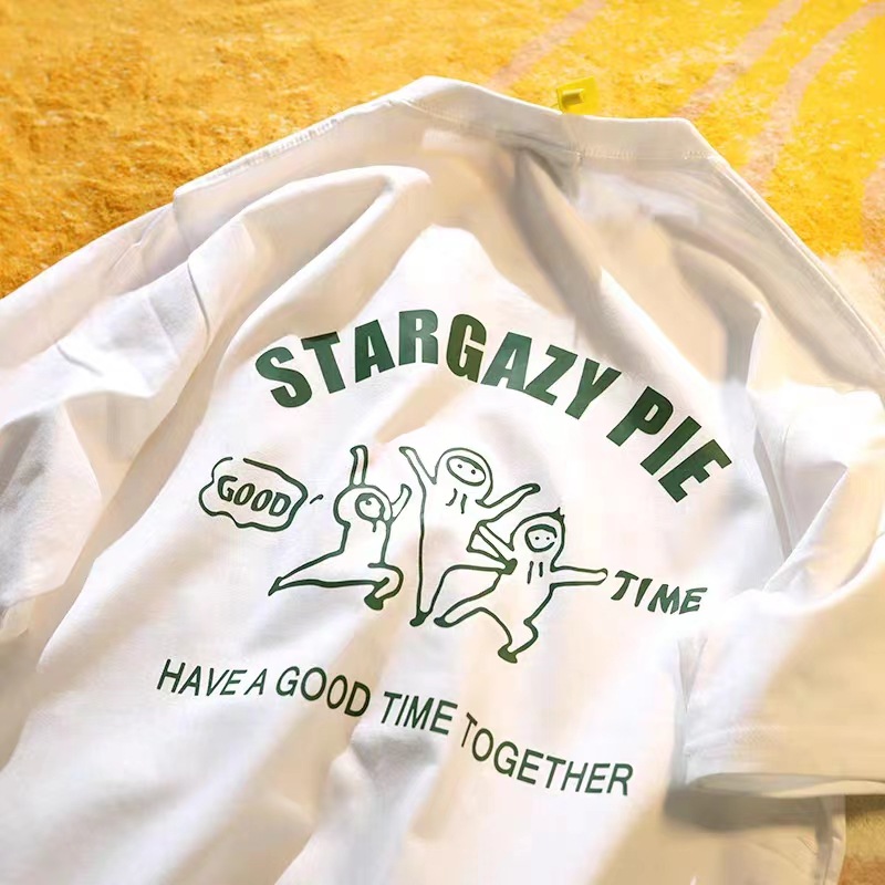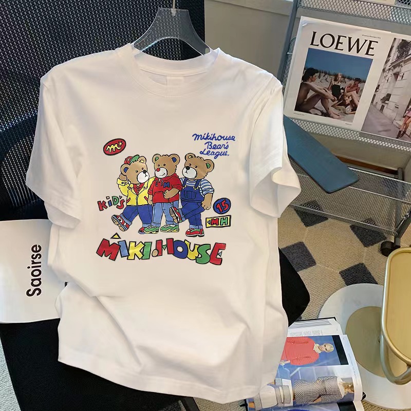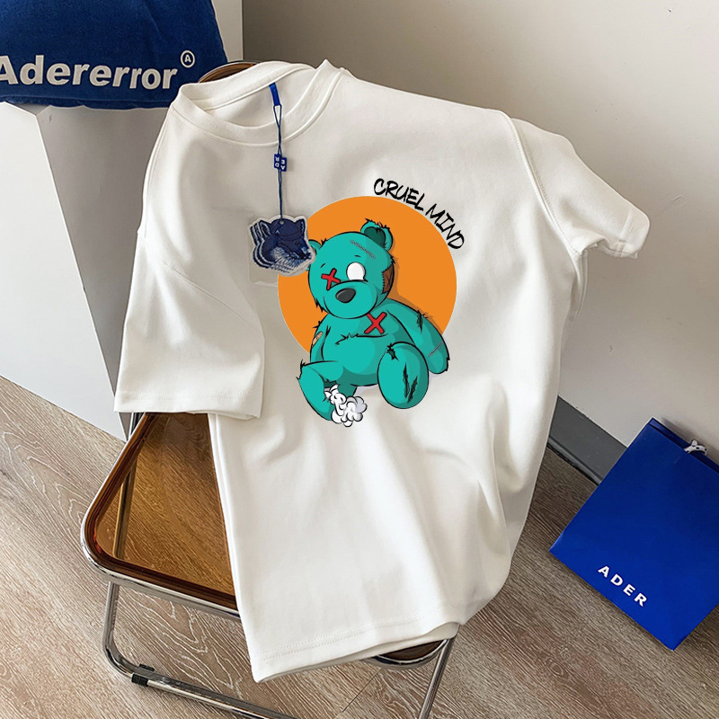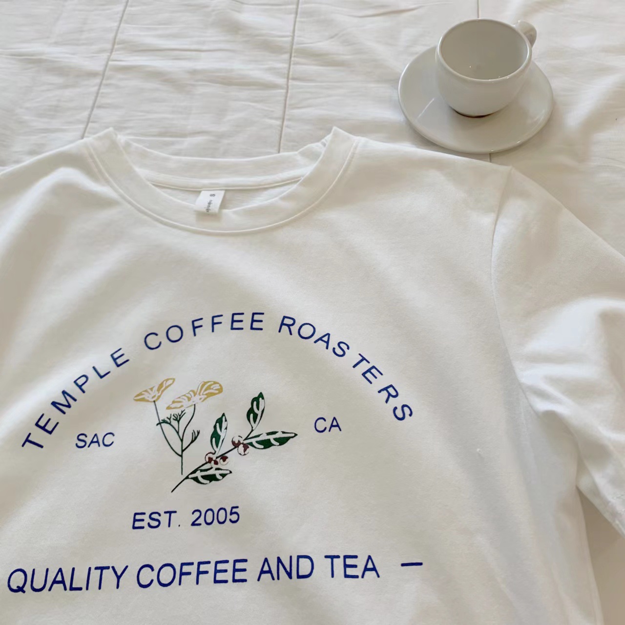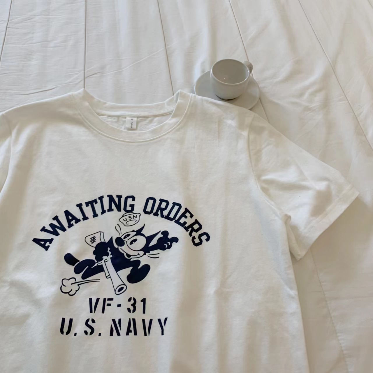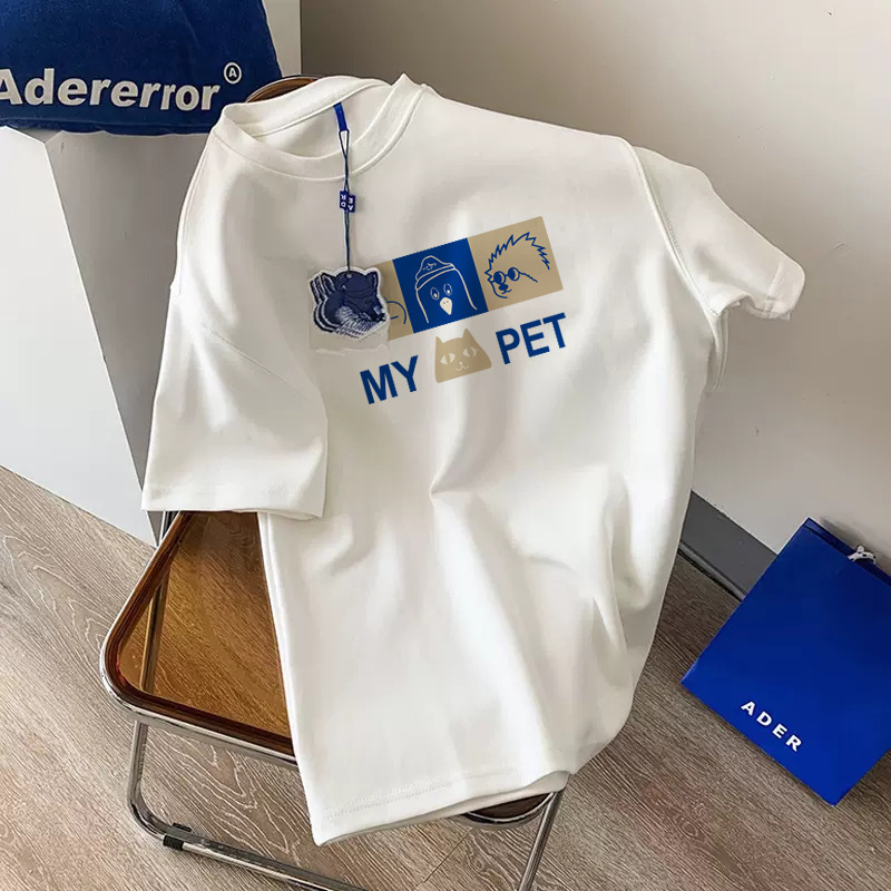 트렌디한 화이트 순면 반팔 티셔츠 여성 여름 루즈핏 디자인 감성적인 2025 신상 프린트 오버숄더 탑스토어 가기