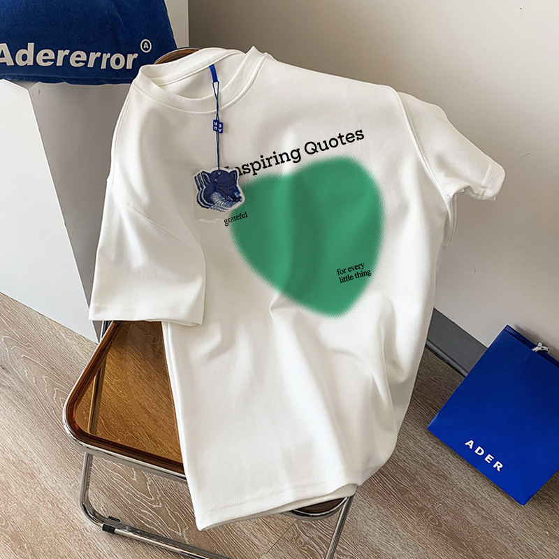 트렌디한 화이트 순면 반팔 티셔츠 여성 여름 루즈핏 디자인 감성적인 2025 신상 프린트 오버숄더 탑