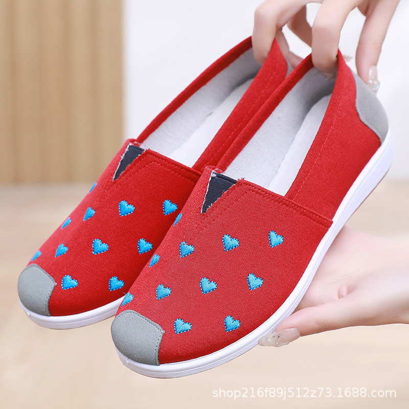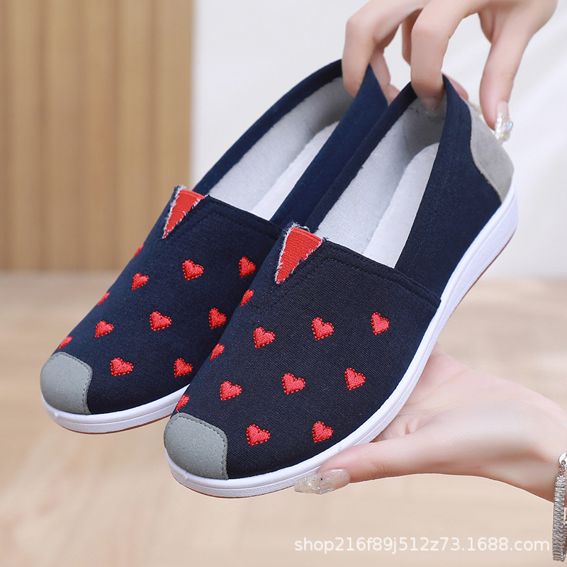 봄과 가을 미끄럼 방지 올드 베이징 천 신발 여성 천 신발 캔버스 신발 캐주얼 학생 한국 스타일 슬립온 보드 신발스토어 가기