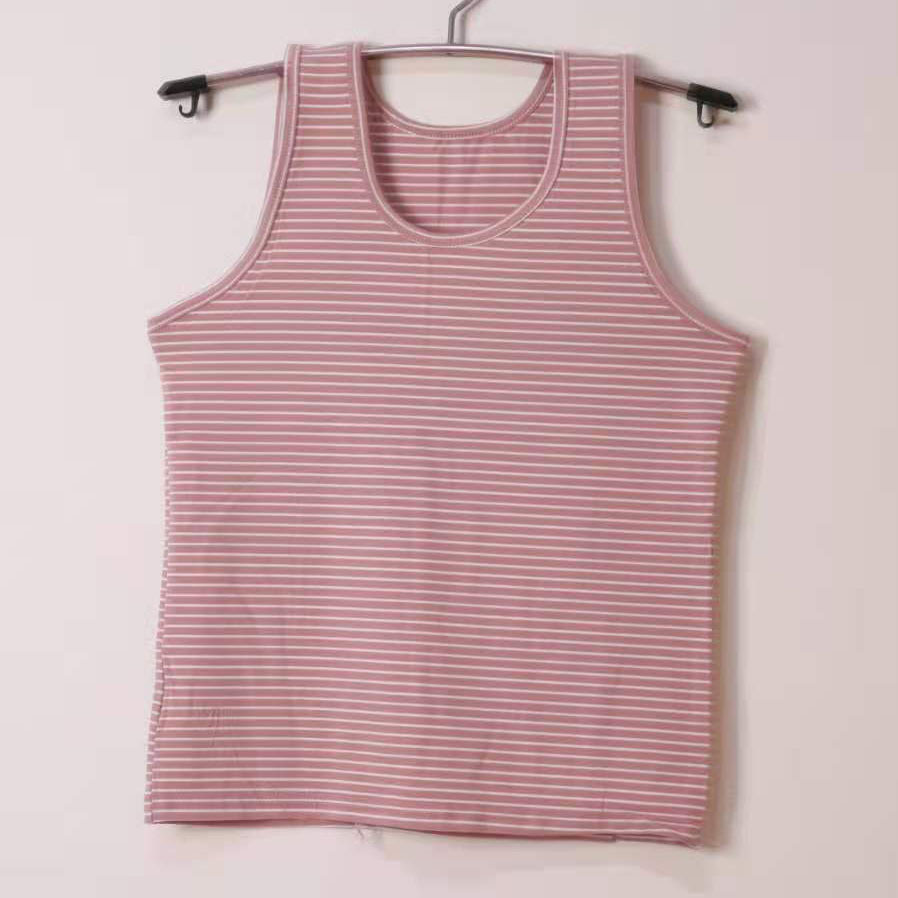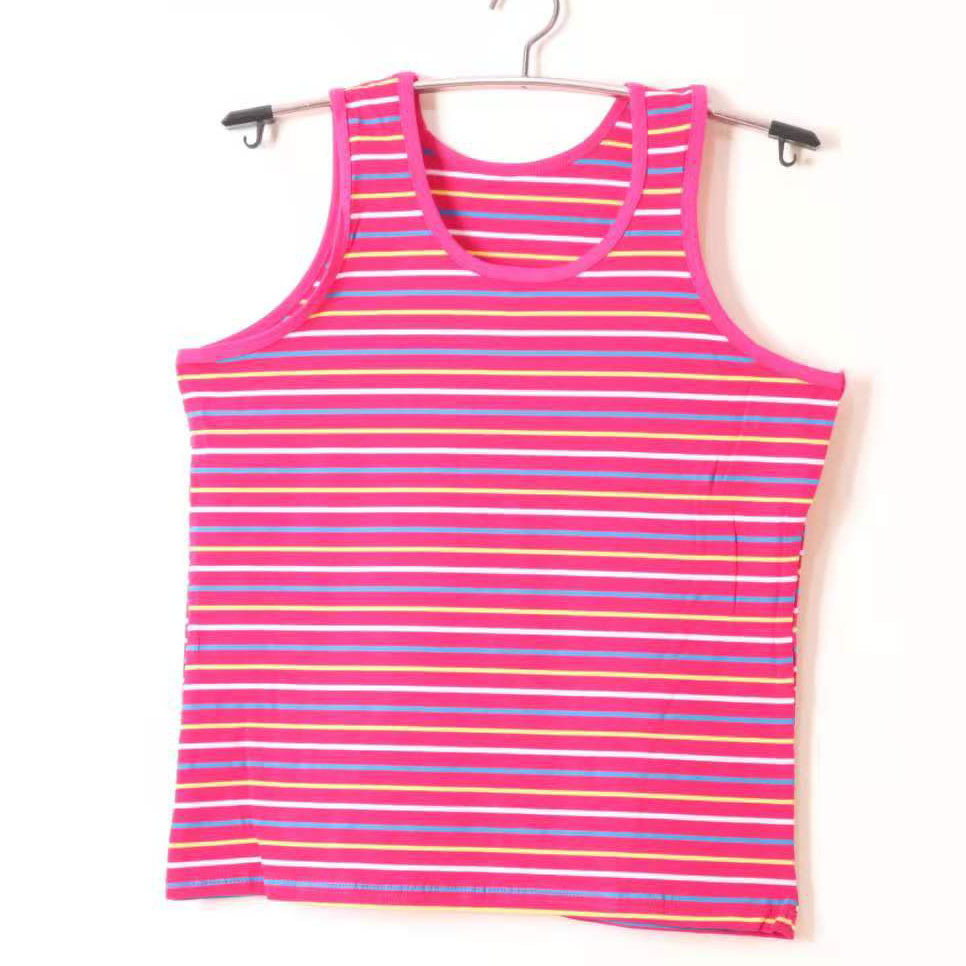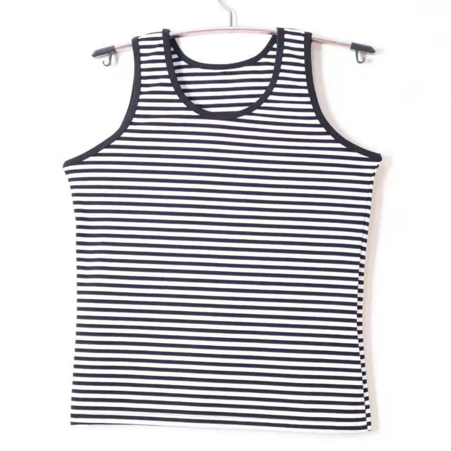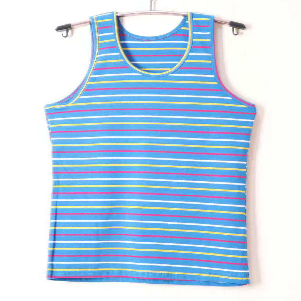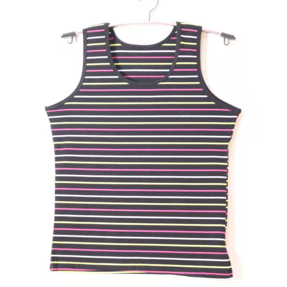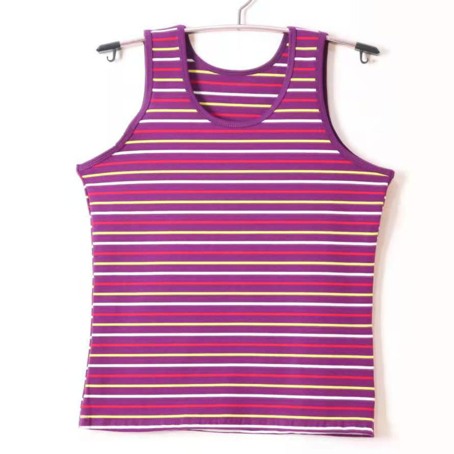신축성있는 풀 코튼 라이크라 내부와 외부가있는 중년 및 젊은 여성 백킹 수평 컬러 스트라이프 대형 조끼 언더 셔츠스토어 가기