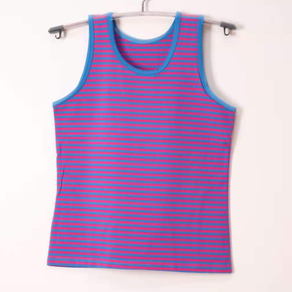 신축성있는 풀 코튼 라이크라 내부와 외부가있는 중년 및 젊은 여성 백킹 수평 컬러 스트라이프 대형 조끼 언더 셔츠