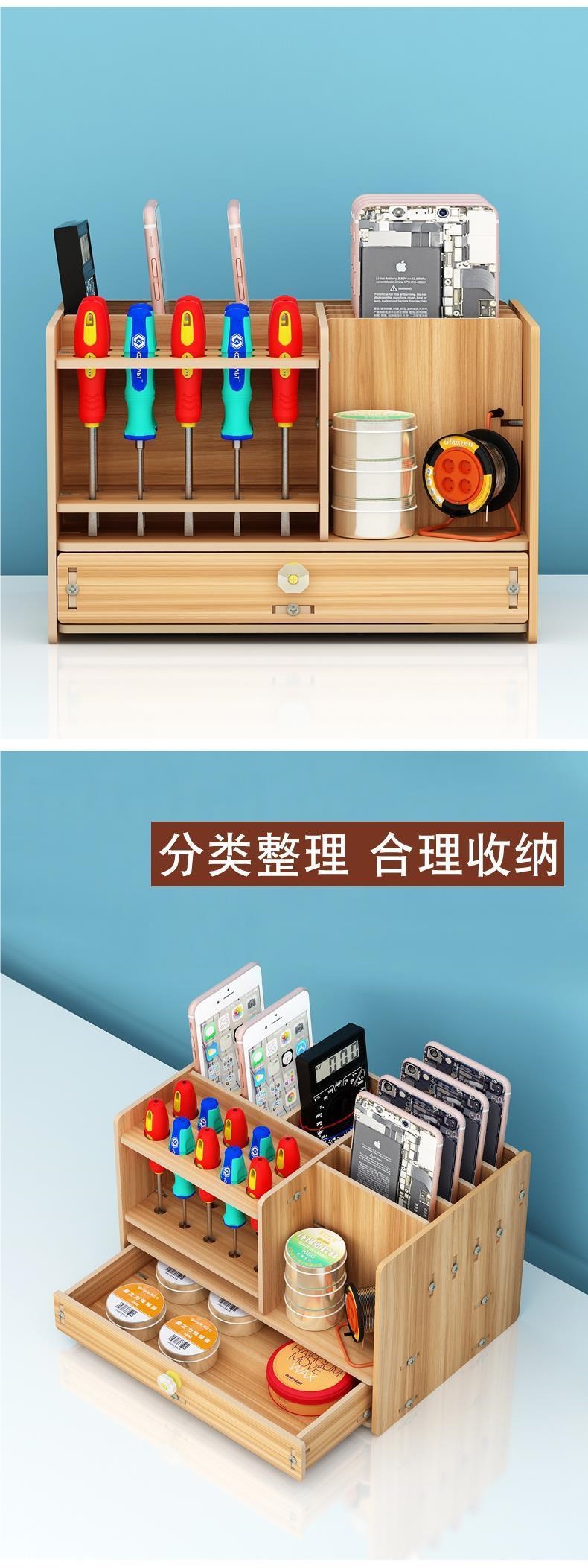 휴대 전화 수리 테이블 도구 스크루 드라이버 핀셋 저장 상자 워크 테이블 멀티 그리드 마무리 상자 데스크탑 스토리지 랙