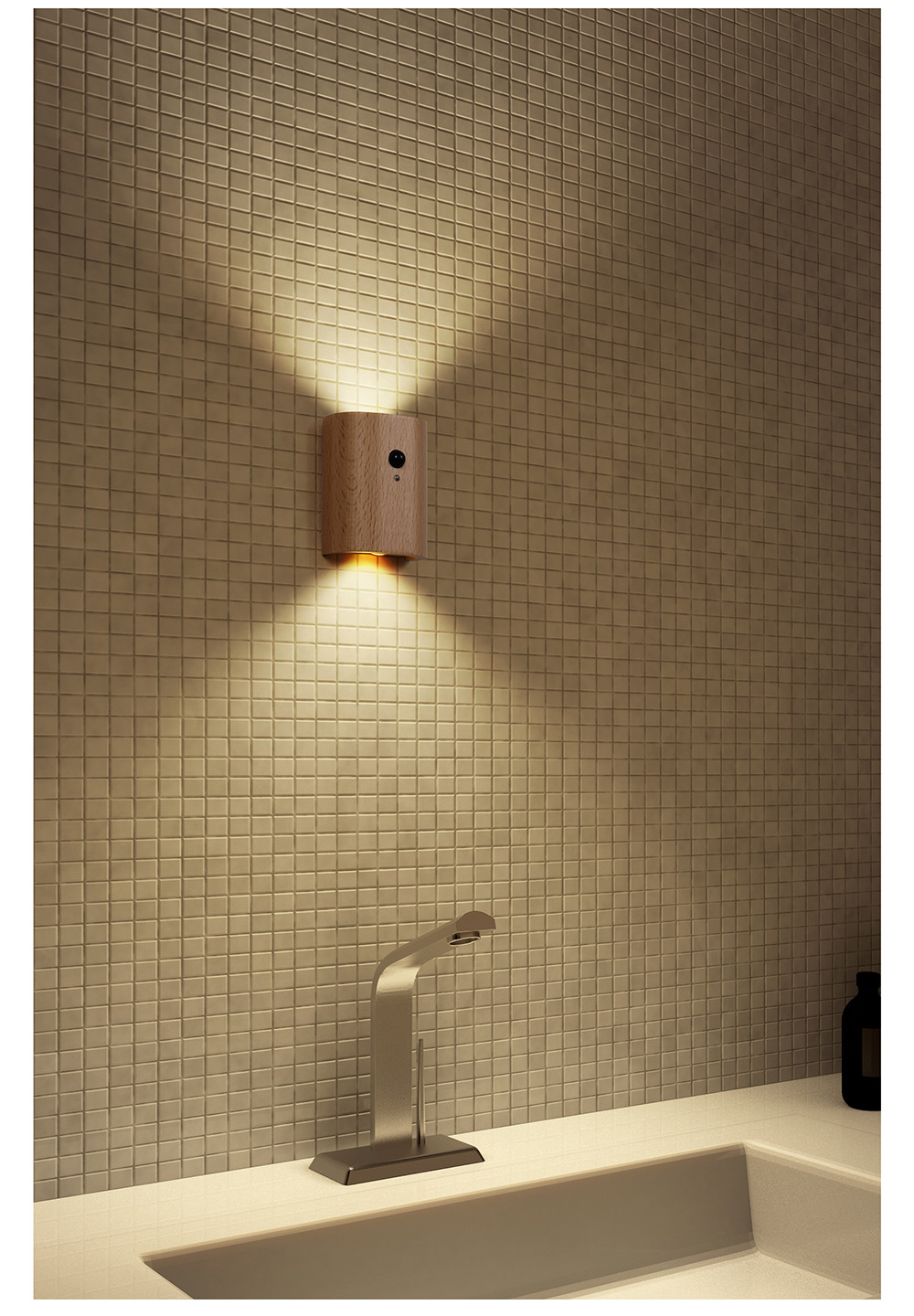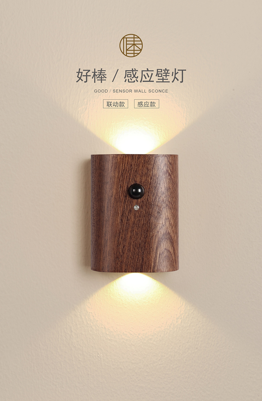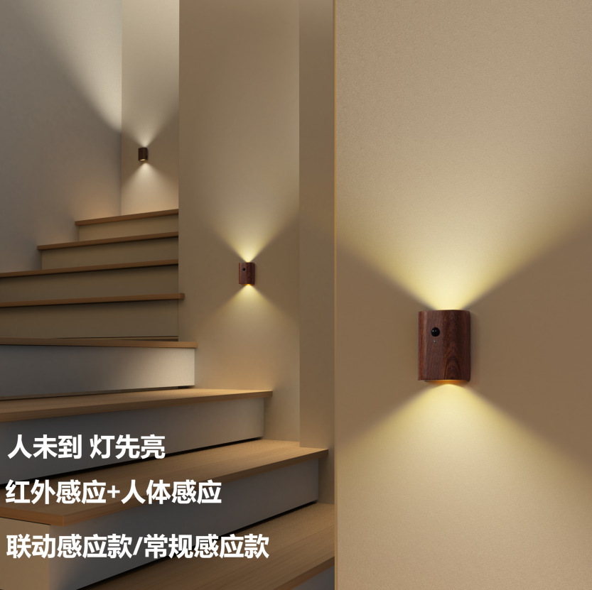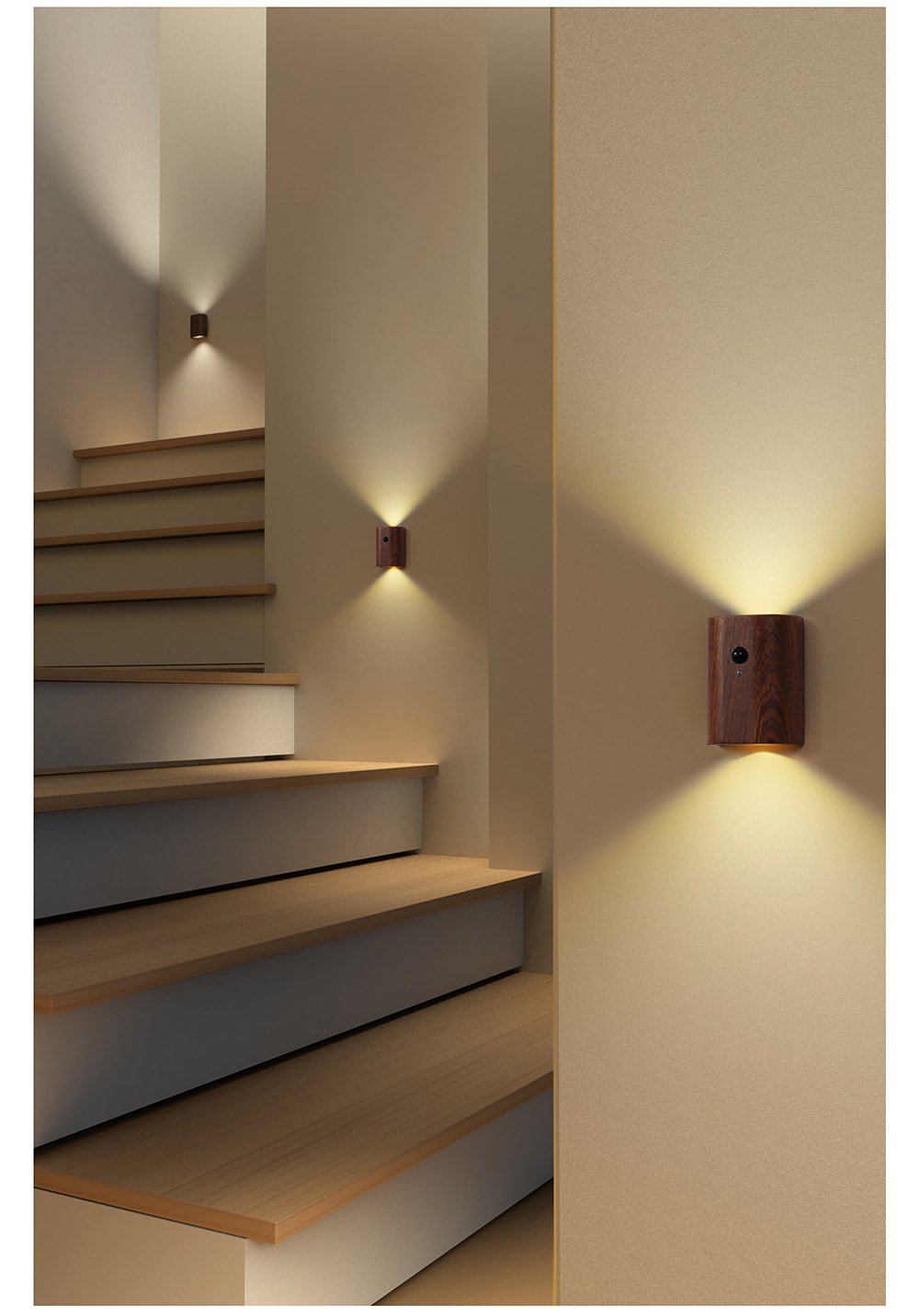 나무 재질 충전식 센서 벽등, 오리지널 해외 직구 인체 감지 야간등, 계단 조명, 인체 감지 야간등스토어 가기