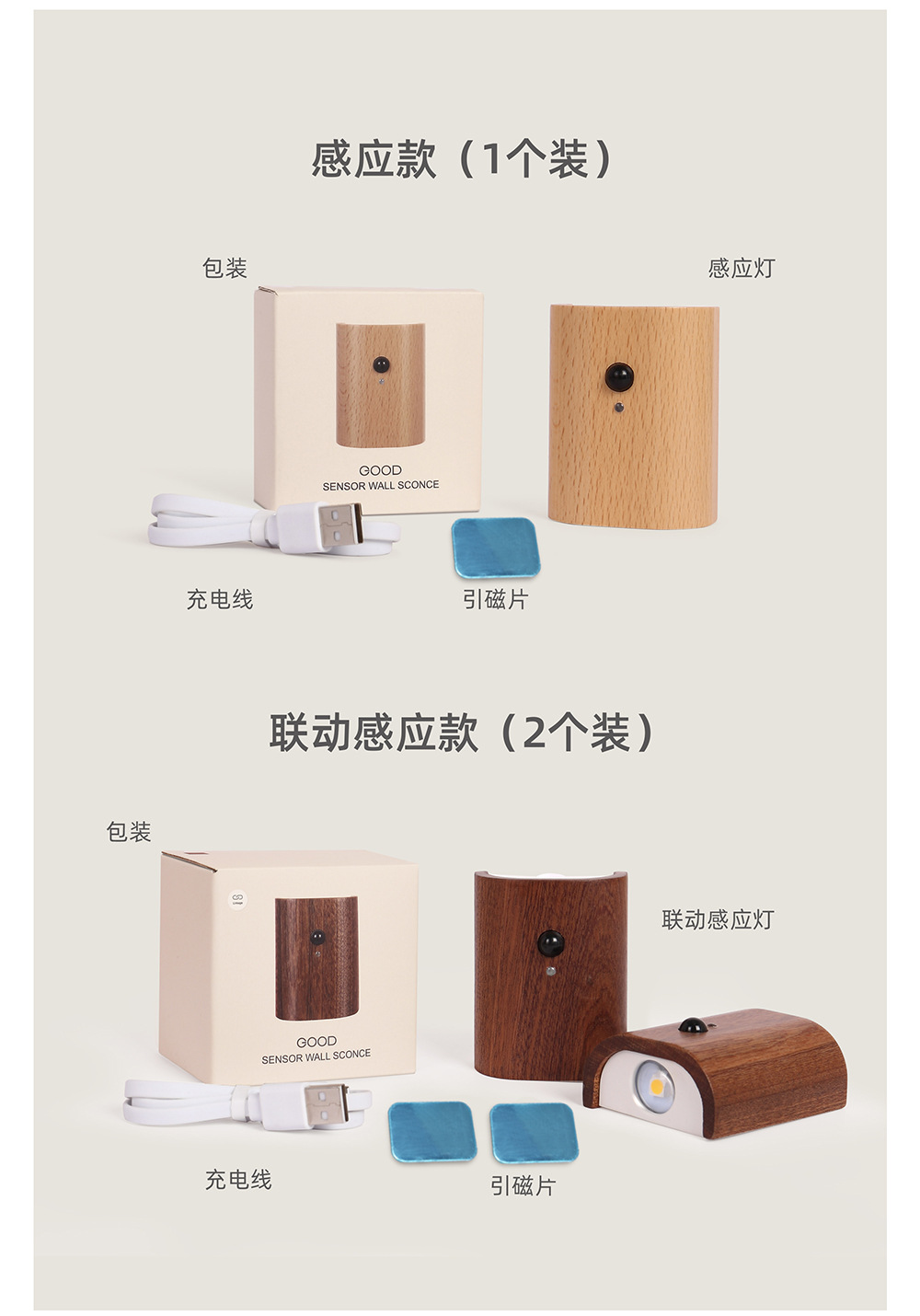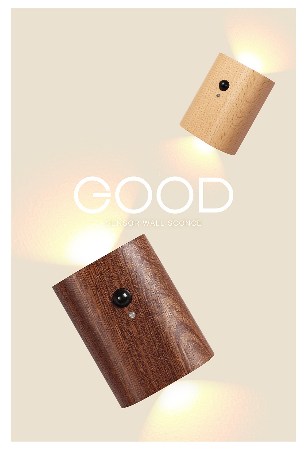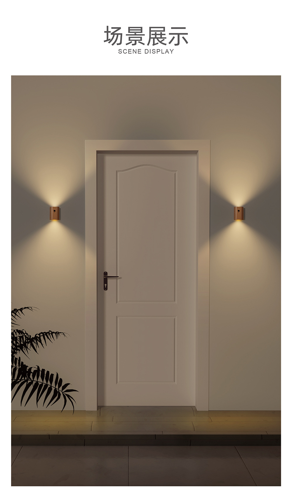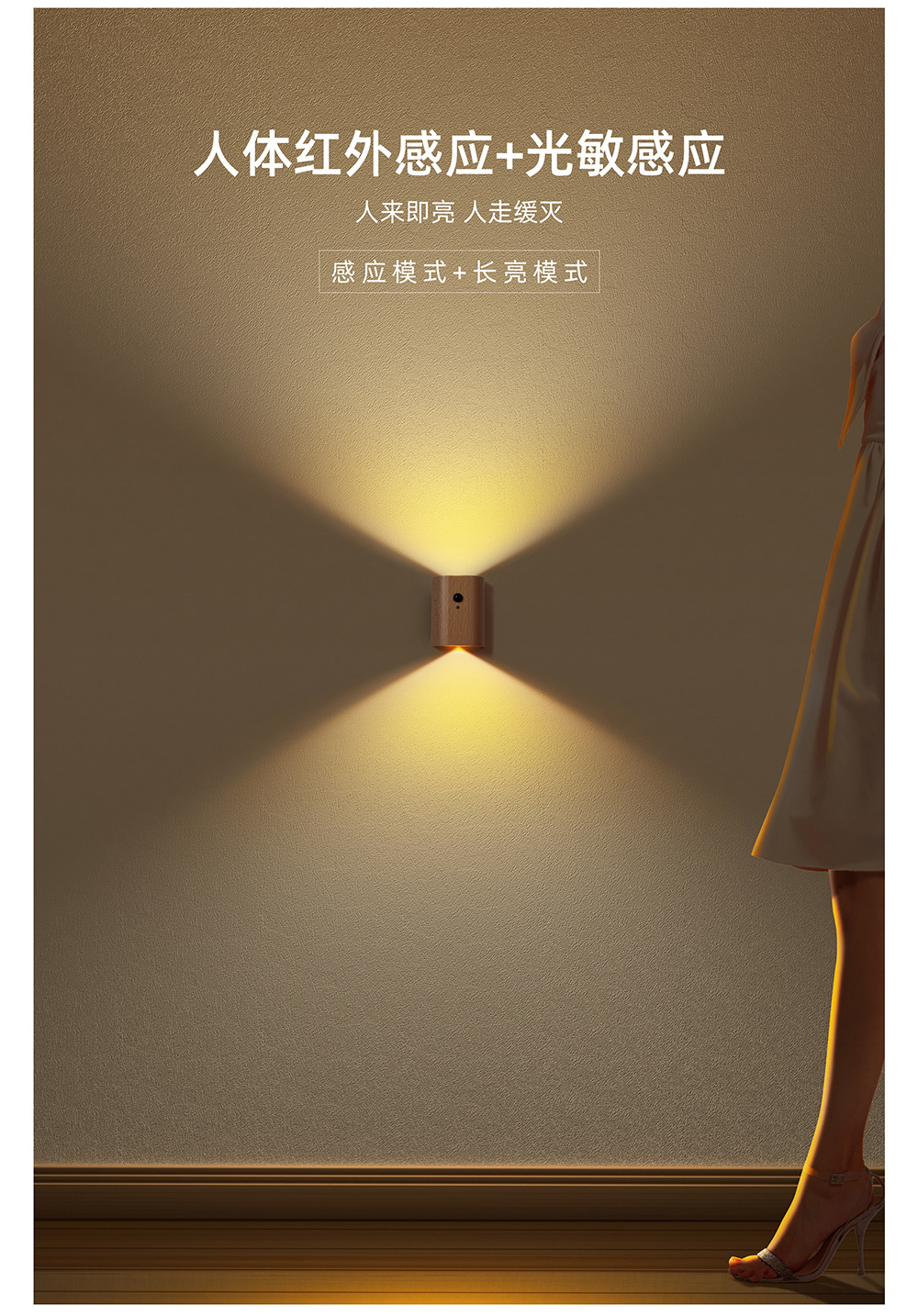 나무 재질 충전식 센서 벽등, 오리지널 해외 직구 인체 감지 야간등, 계단 조명, 인체 감지 야간등스토어 가기