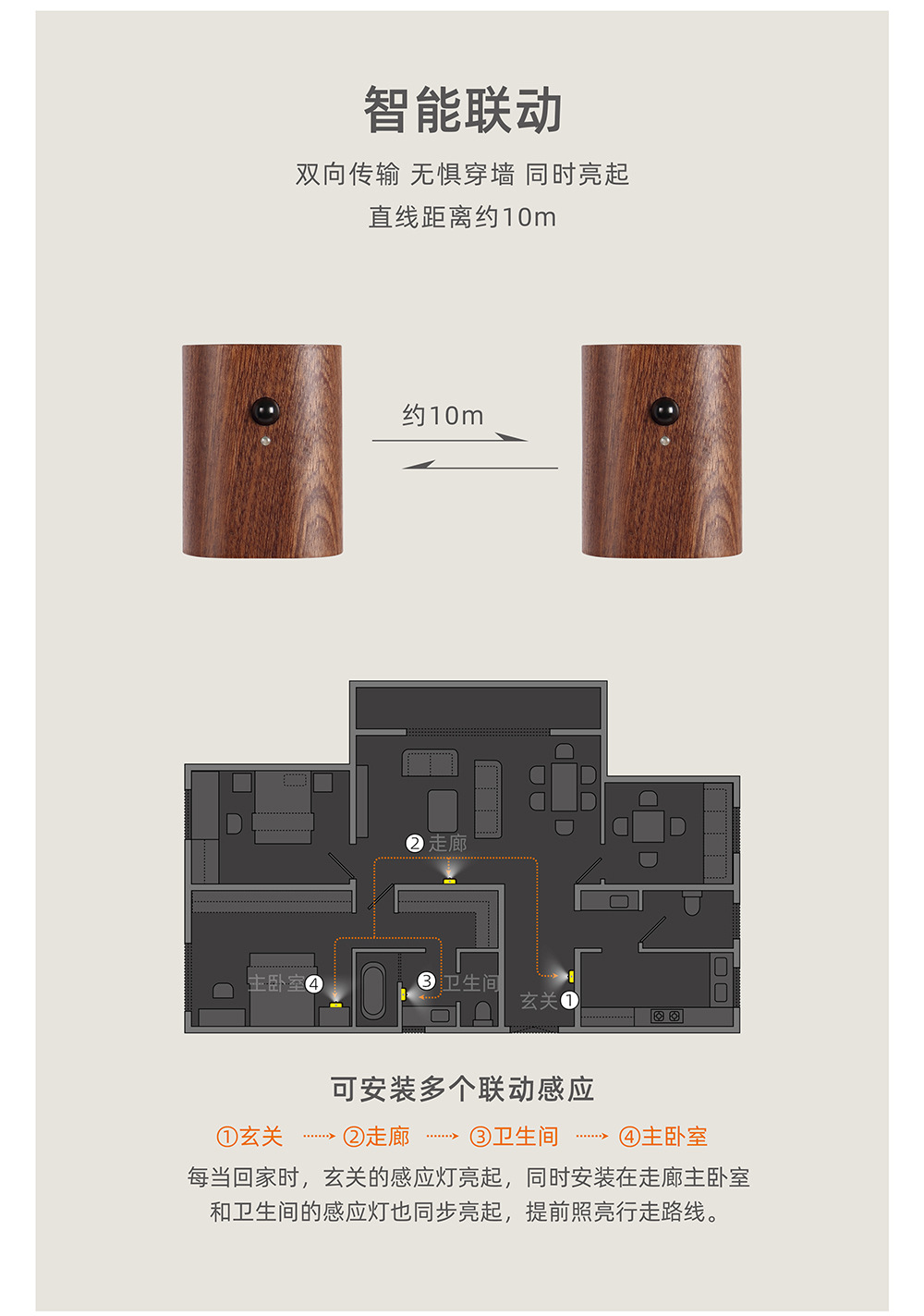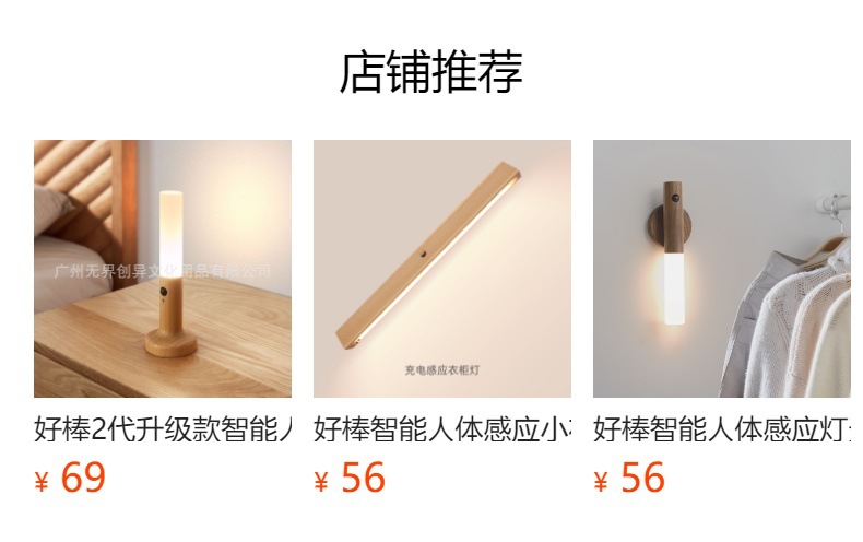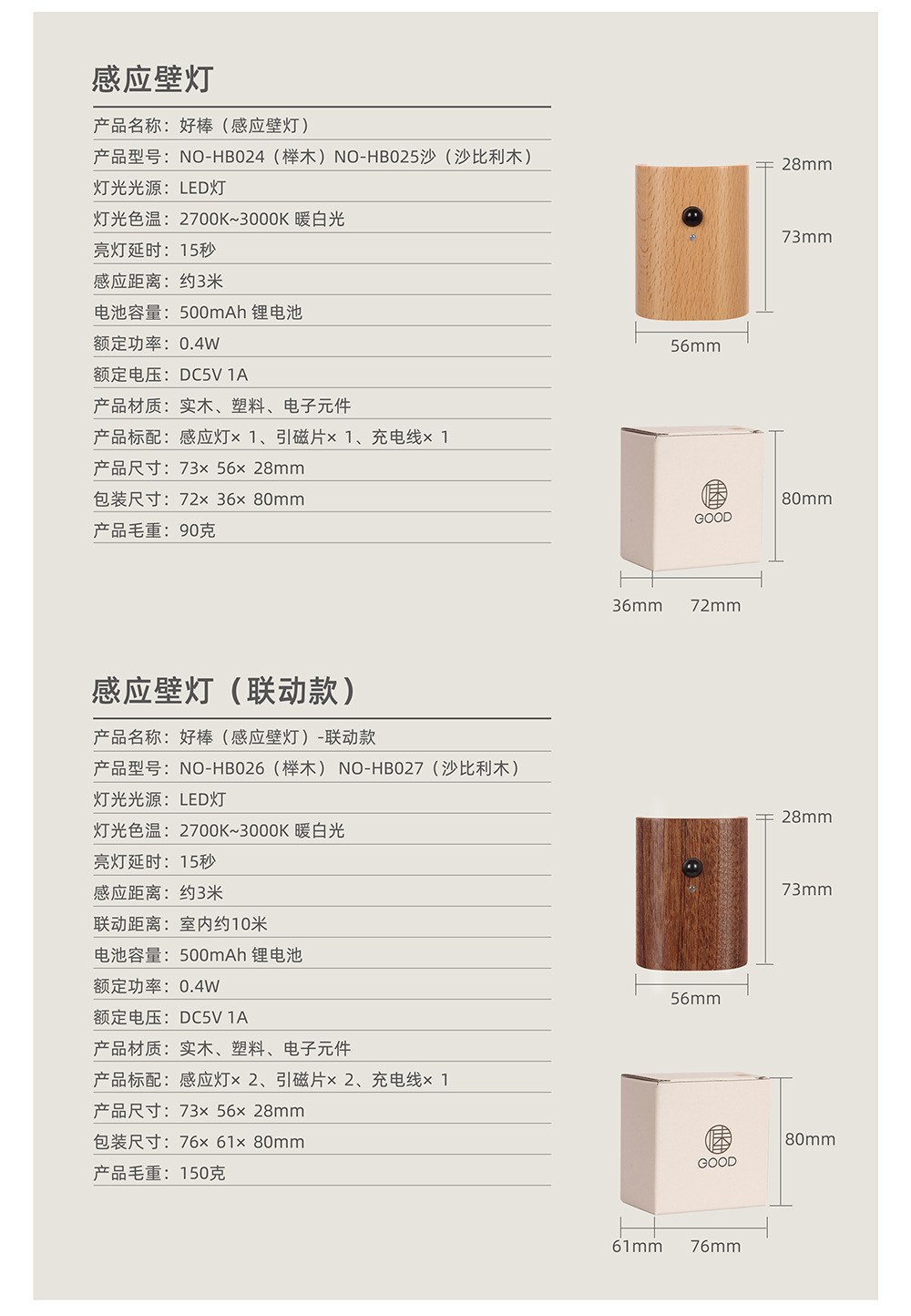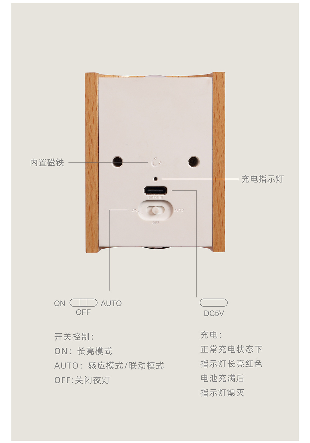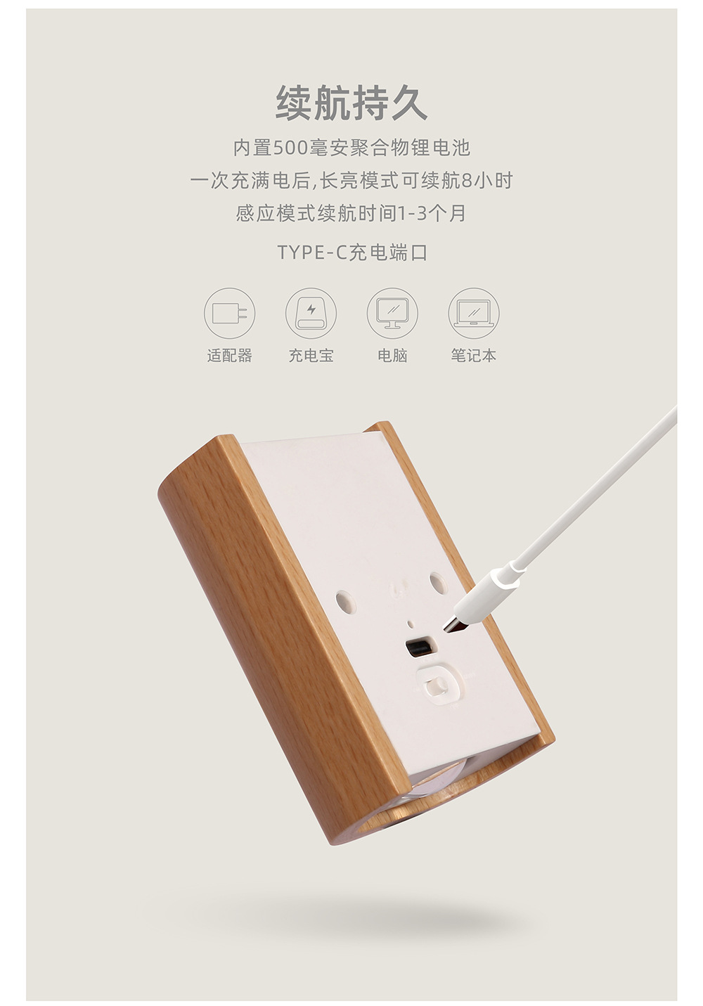 나무 재질 충전식 센서 벽등, 오리지널 해외 직구 인체 감지 야간등, 계단 조명, 인체 감지 야간등스토어 가기