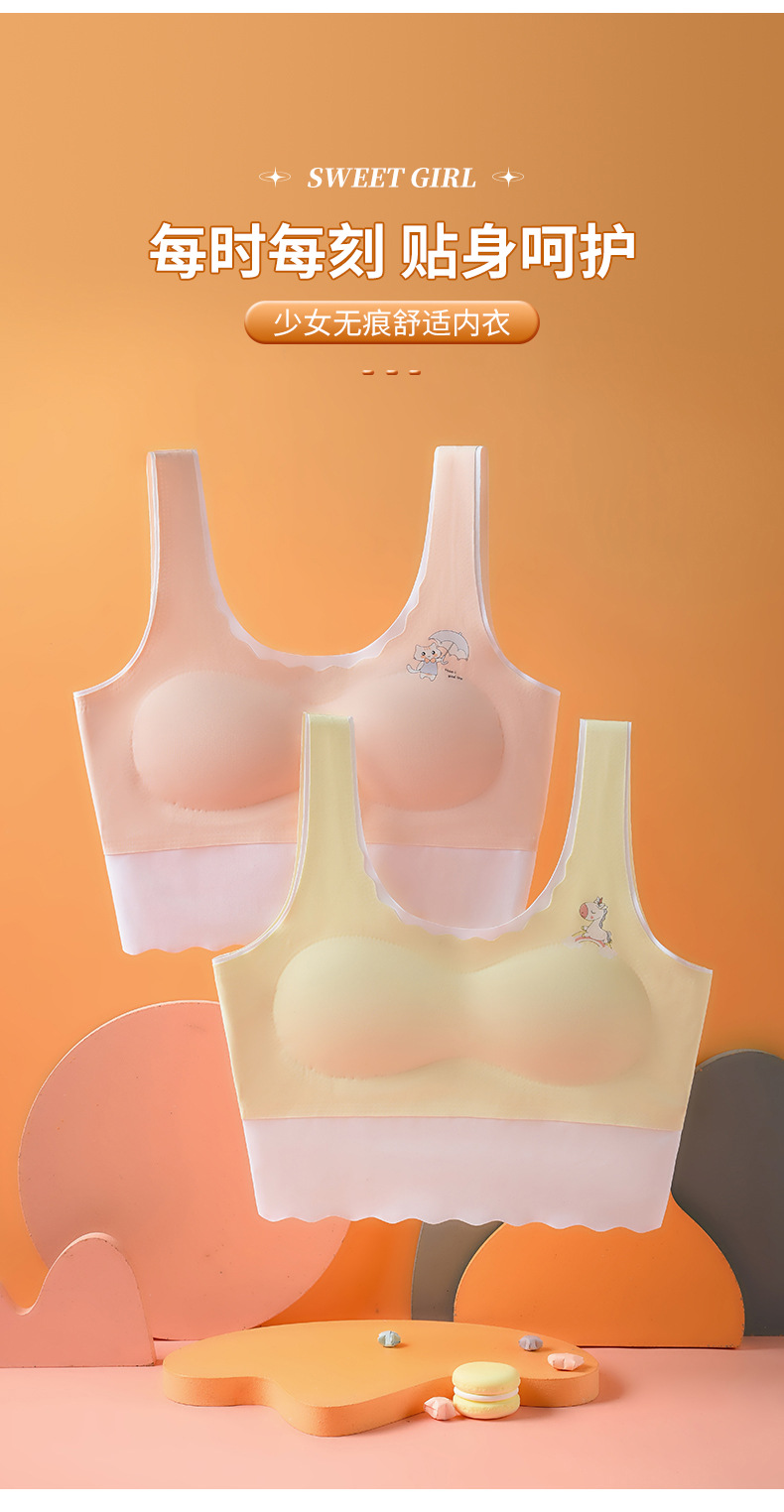 여아 속옷 여자 중학생 랩 가슴 학생 튜브 탑 어린 소녀 조끼 개발 기간 원활한 브래지어 아이스 실크 얇은스토어 가기