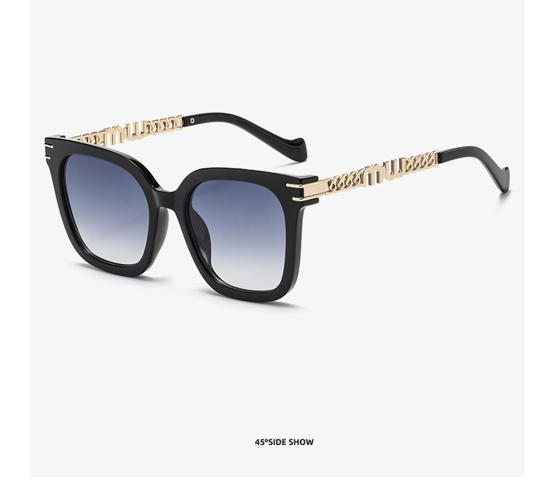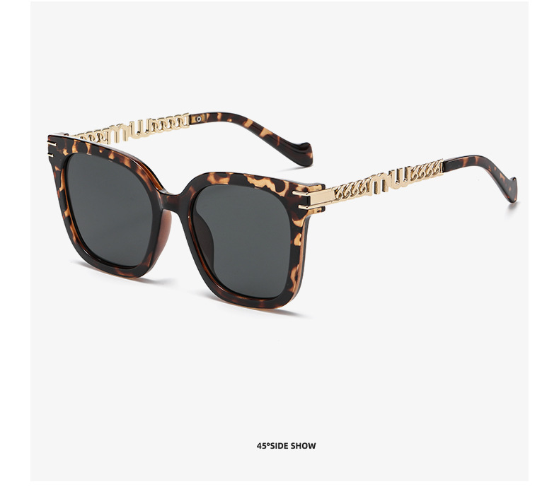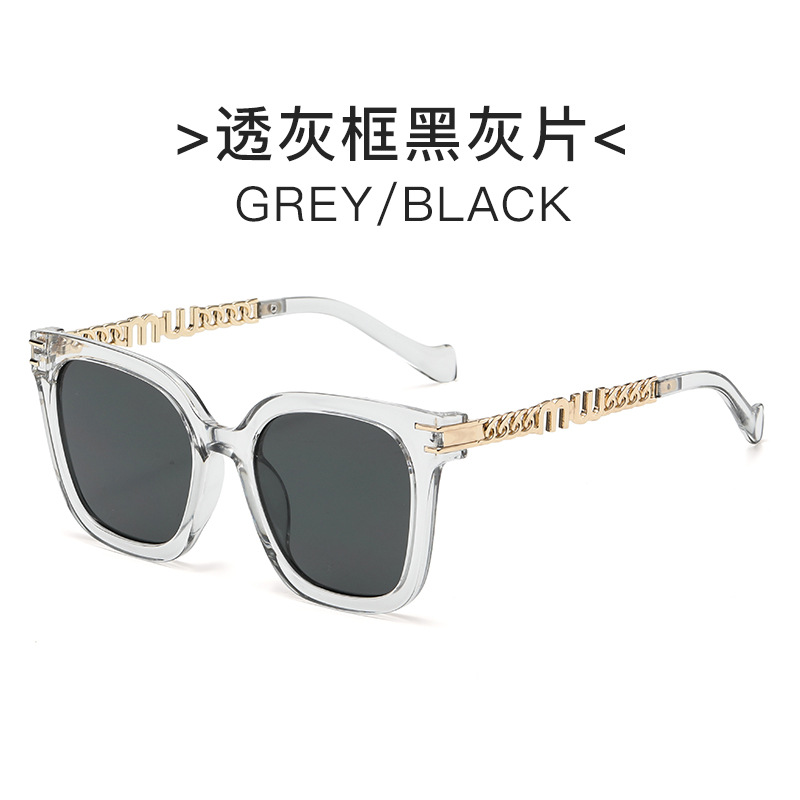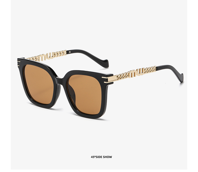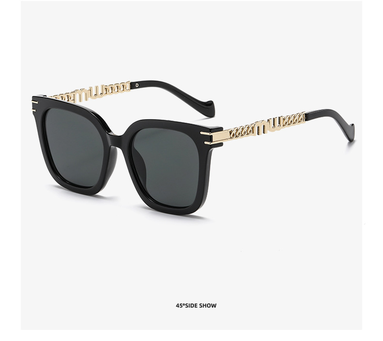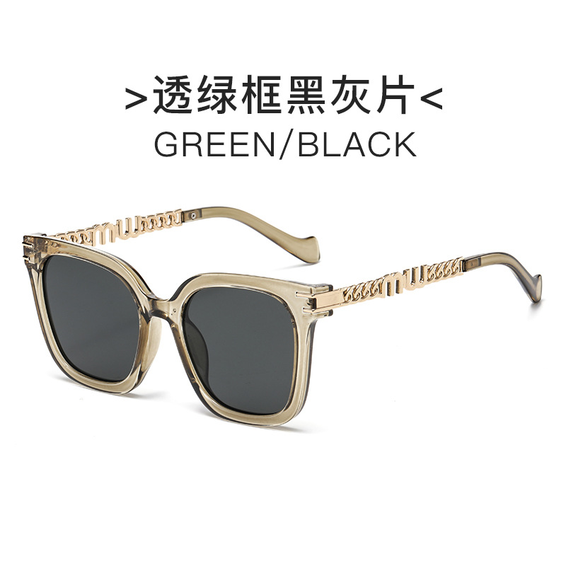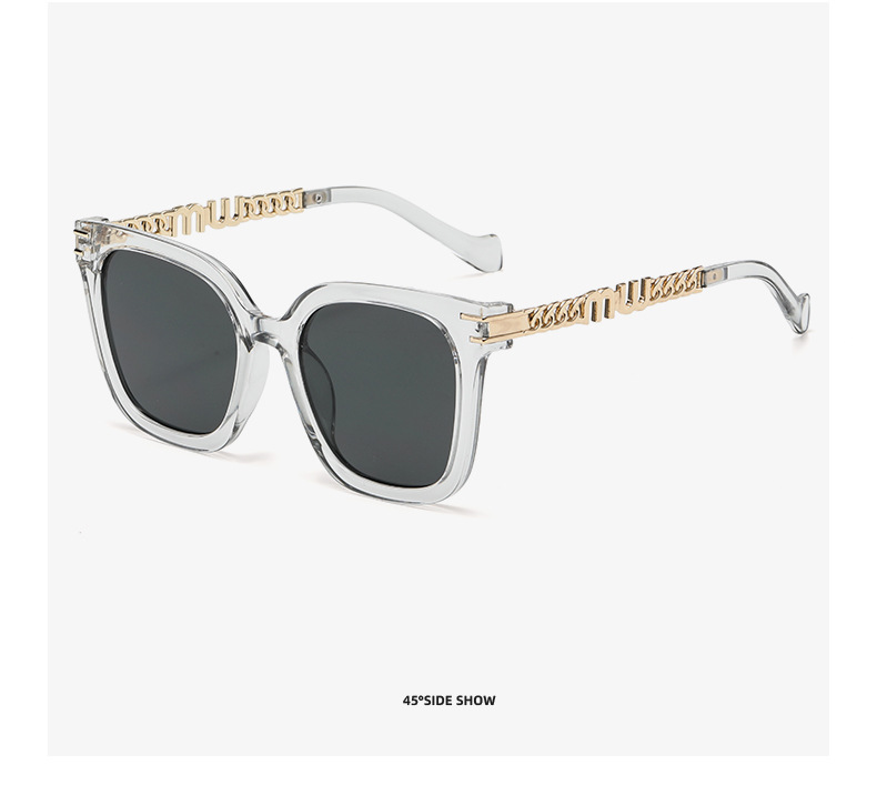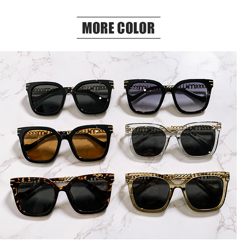 새로운 유럽 및 미국 스퀘어 대형 프레임 체인 선글라스 스트리트 슈팅 트렌디 한 남성과 여성의 Instagram 차양 자외선 차단 선글라스 여성