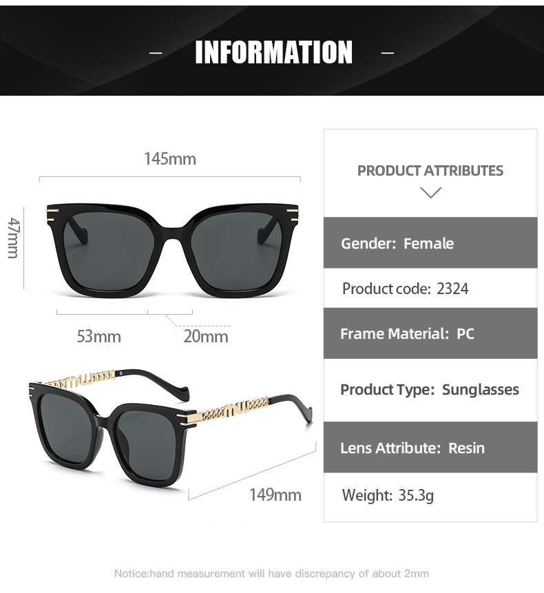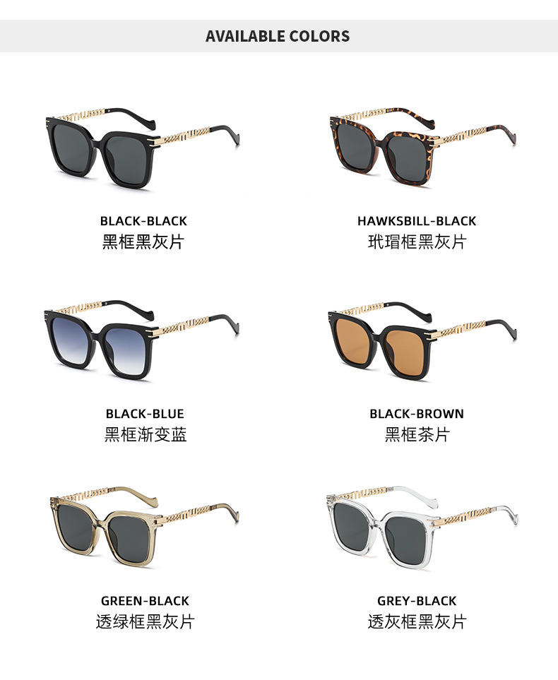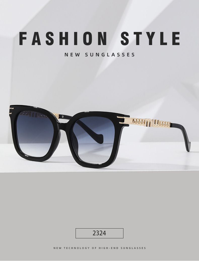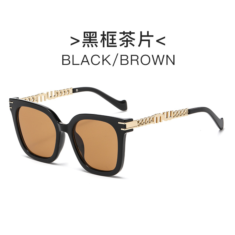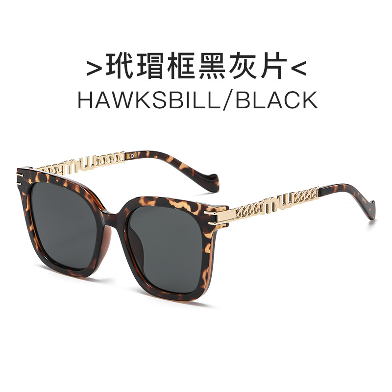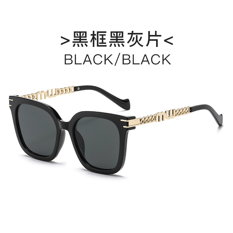 새로운 유럽 및 미국 스퀘어 대형 프레임 체인 선글라스 스트리트 슈팅 트렌디 한 남성과 여성의 Instagram 차양 자외선 차단 선글라스 여성