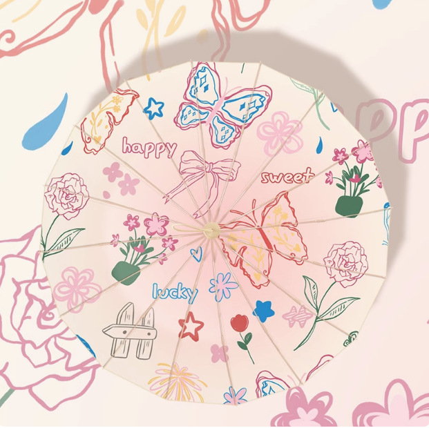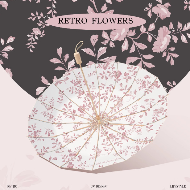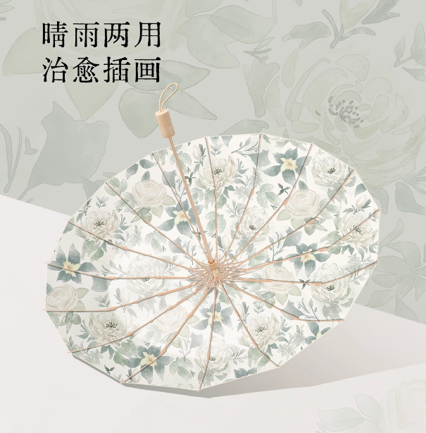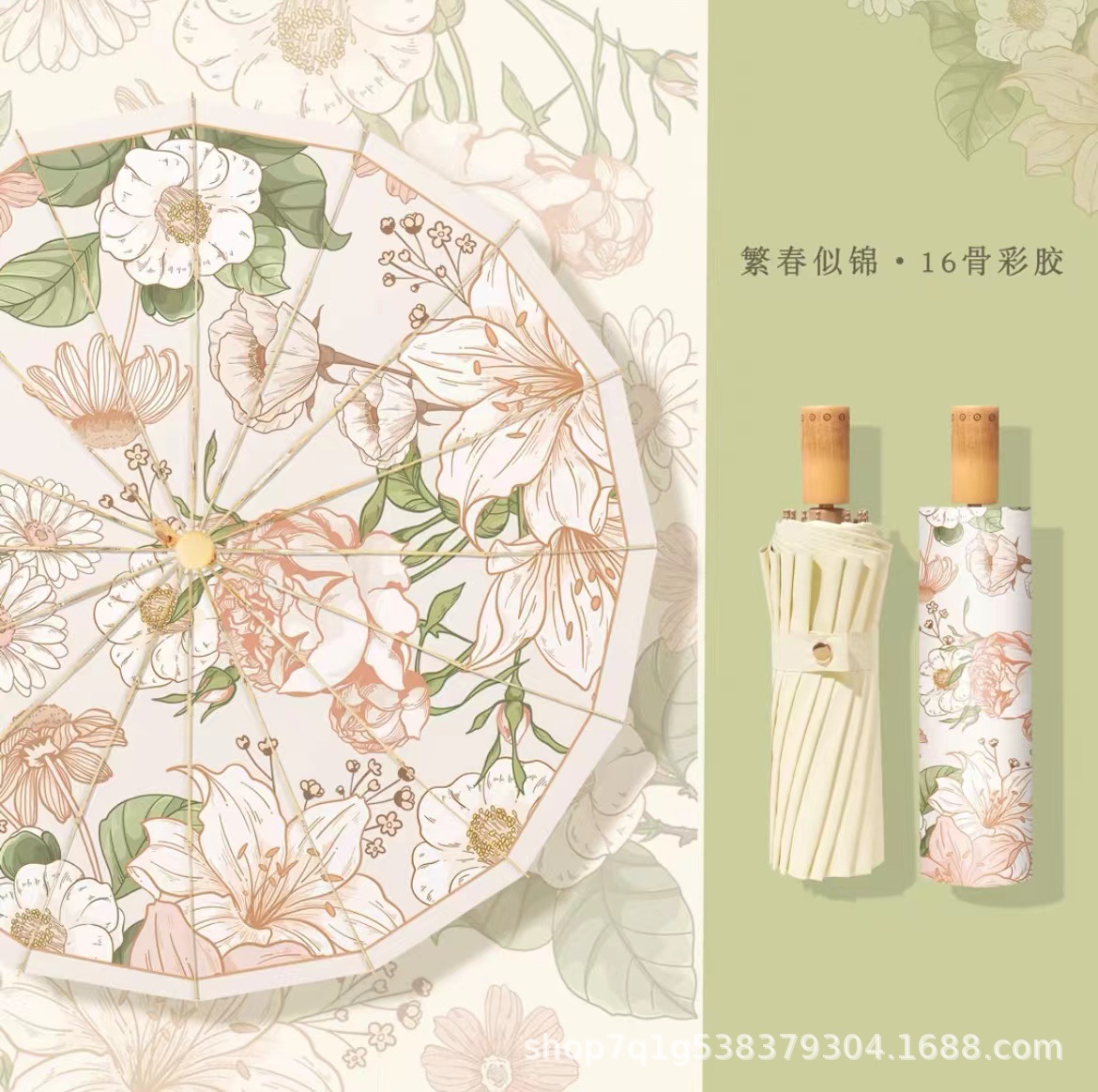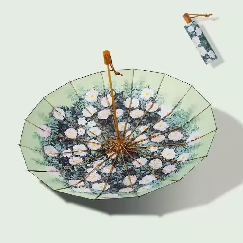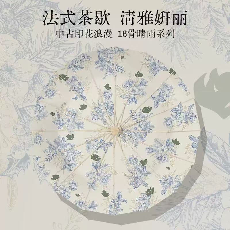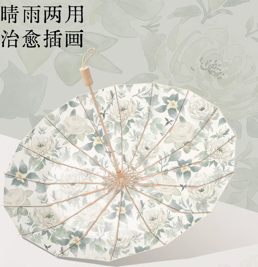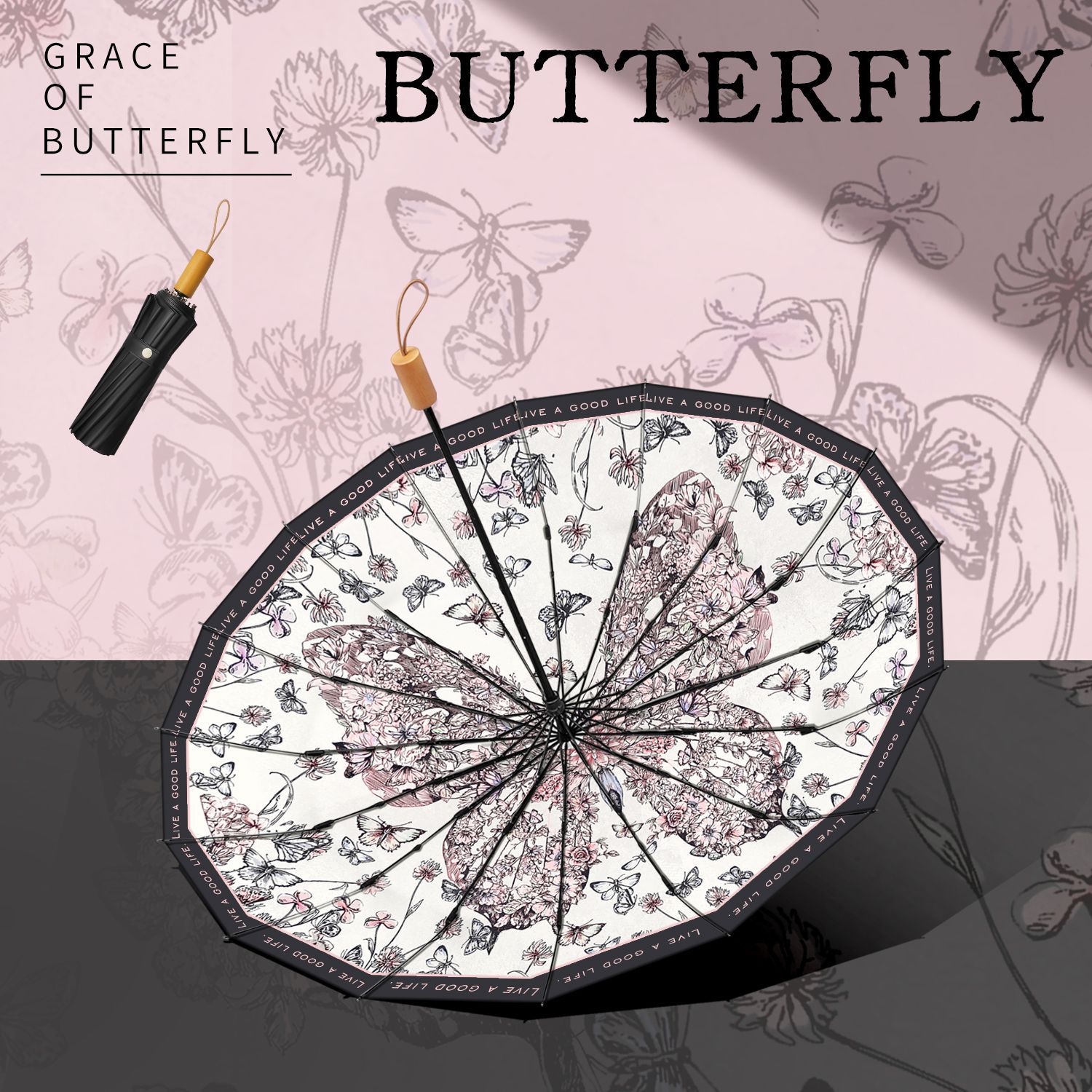 16 본 우산 대형 방풍 강화 빈티지 우산 맑고 비오는 이중 사용 여성용 접이식 우수한 자외선 차단제 우산 이중 우산