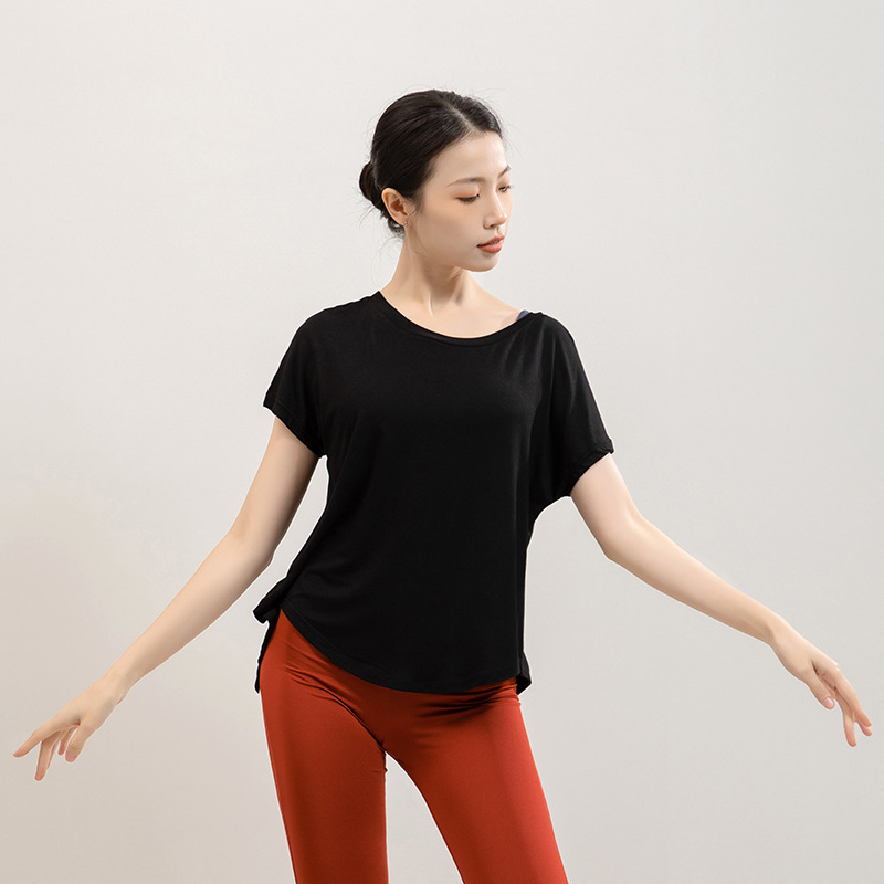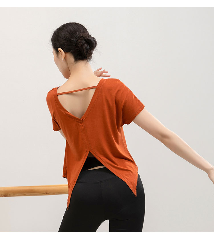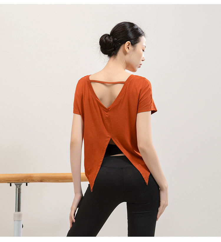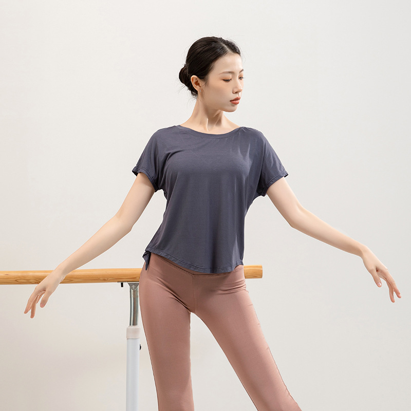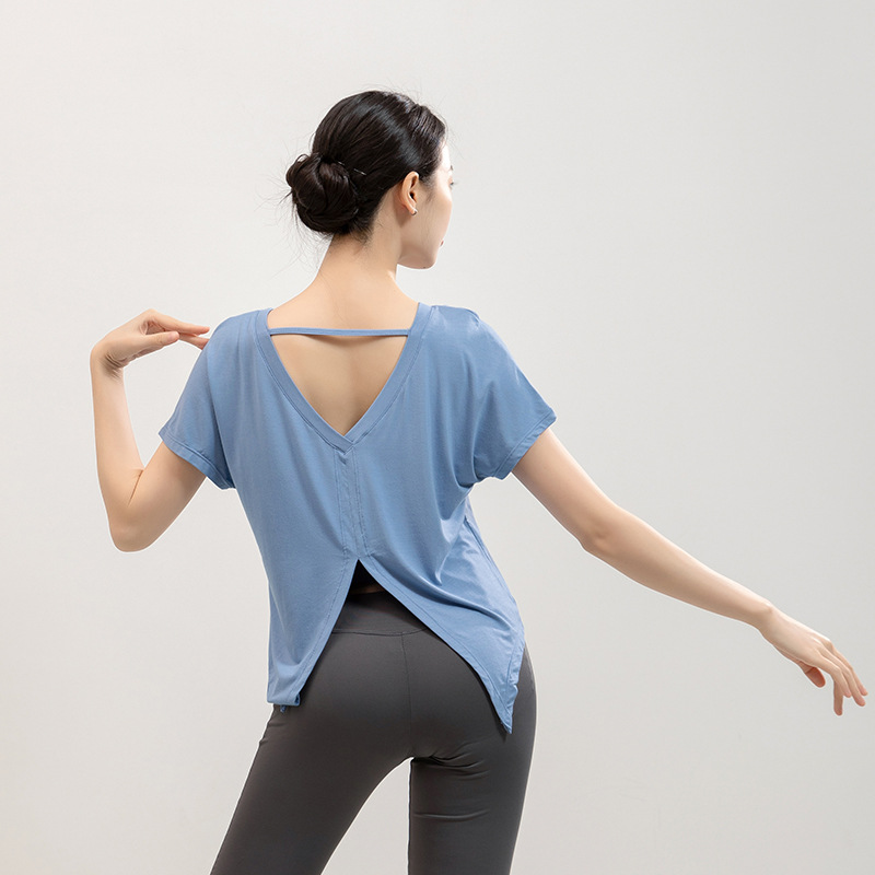 요가 의류 반팔 티셔츠 여성용 시아 메이 백 스플릿 블라우스 느슨한 러닝 스포츠 피트니스 탑 댄스 트레이닝 복스토어 가기