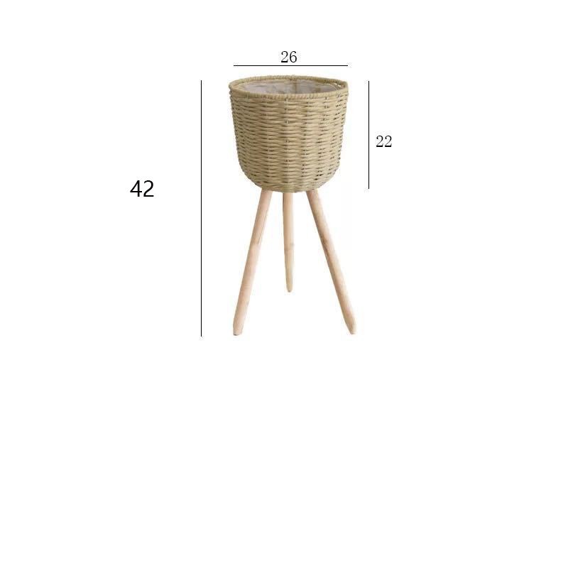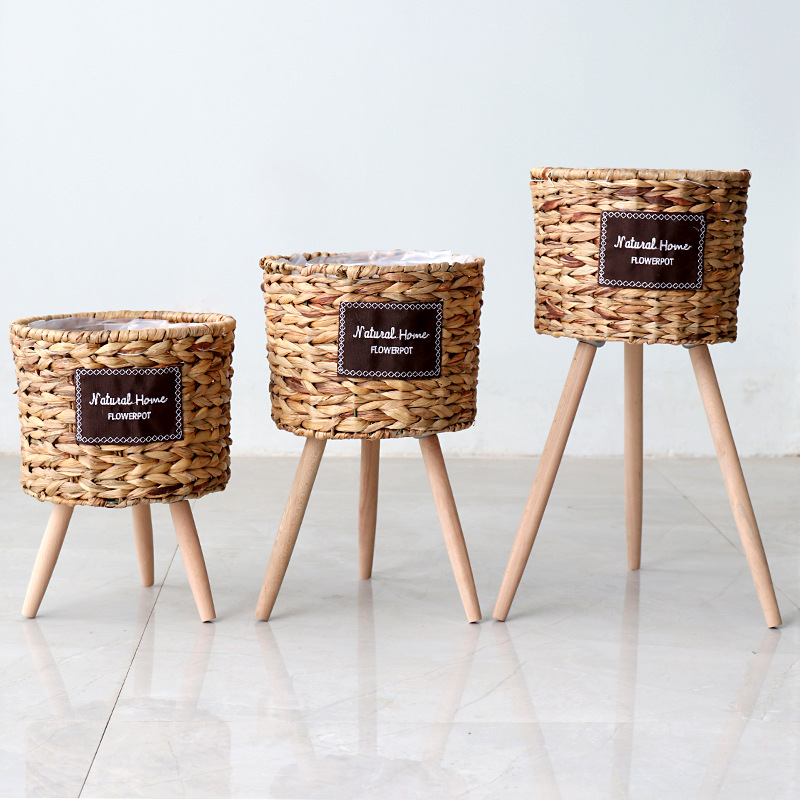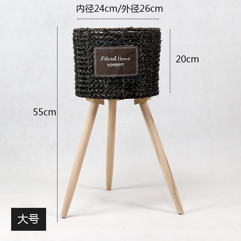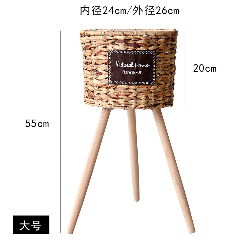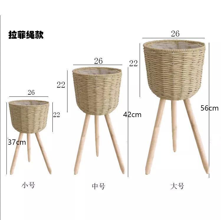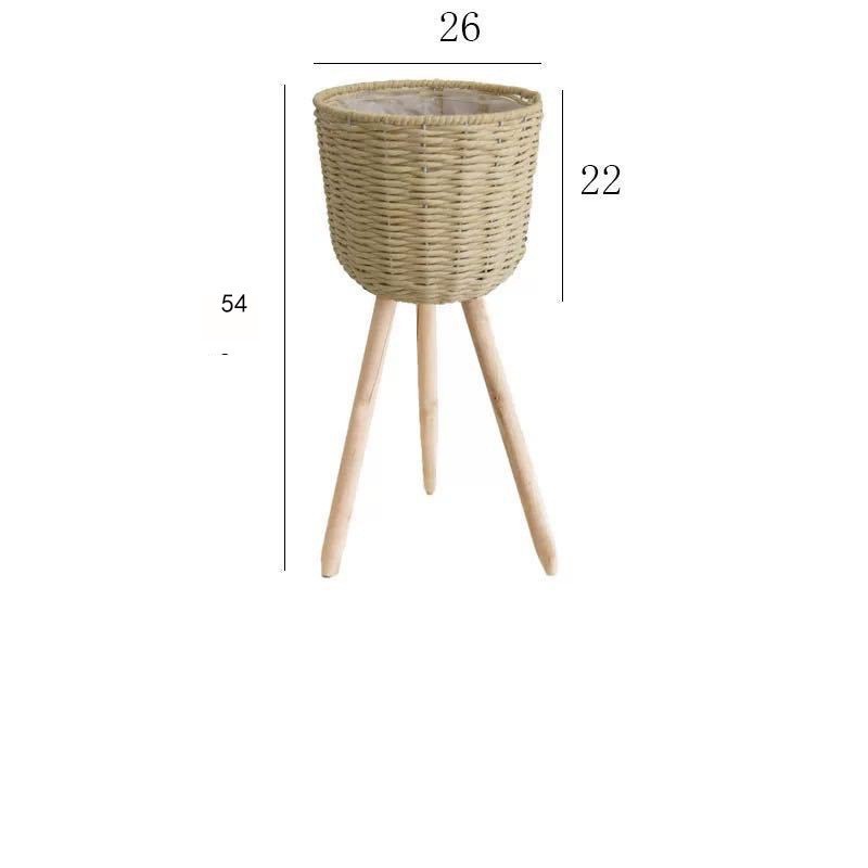 북유럽 스타일 크리에이 티브 등나무 짚 꽃 바구니 나무 높은 꽃 랙 바닥 서 실내 거실 장식 녹색 화분