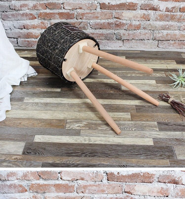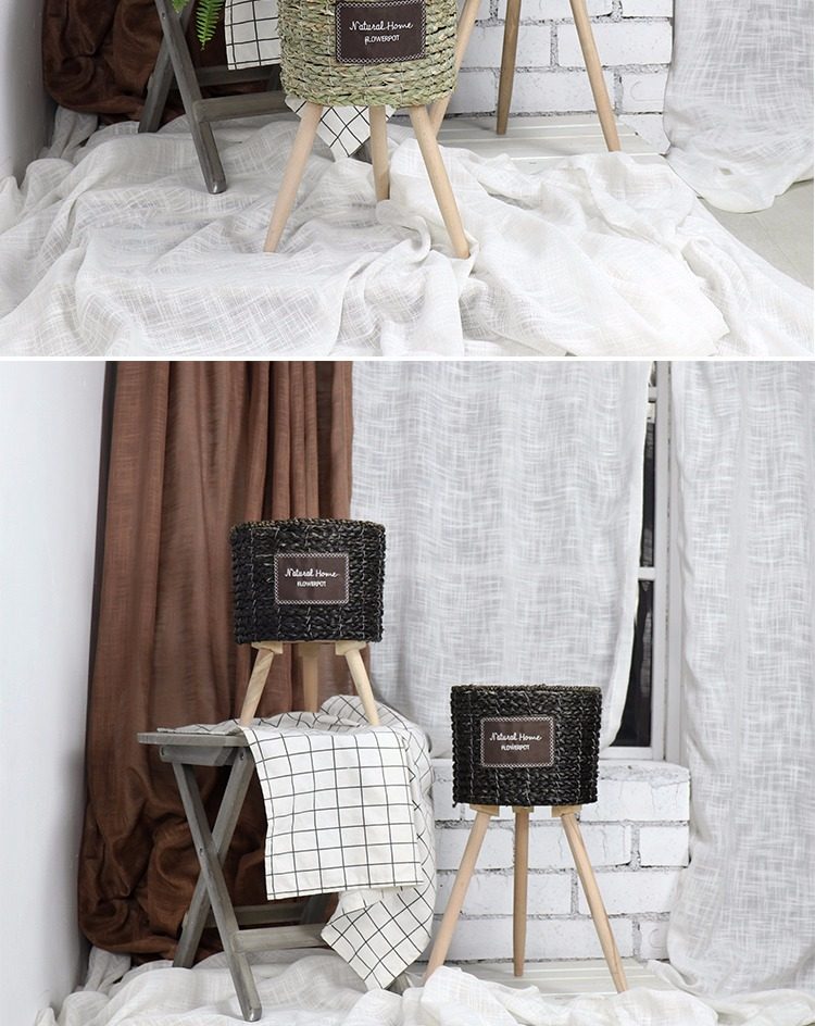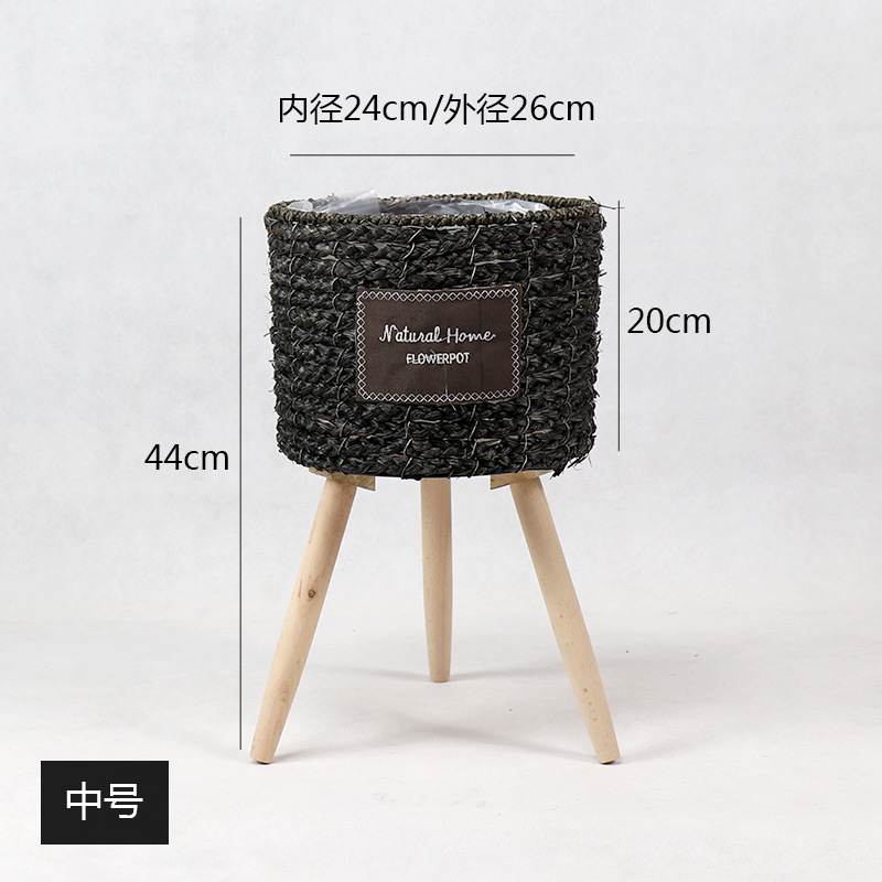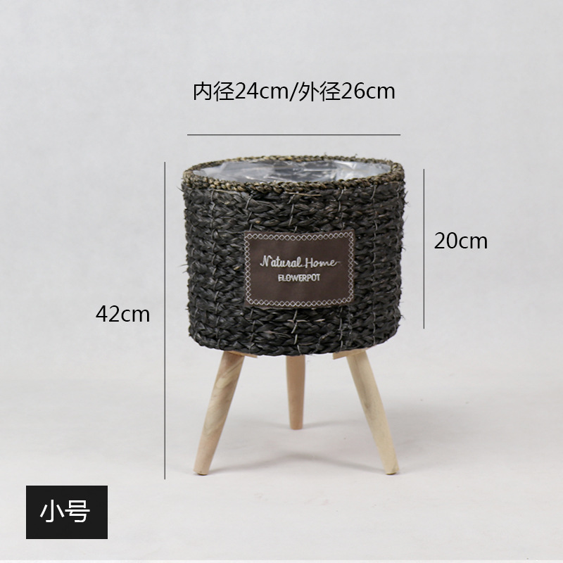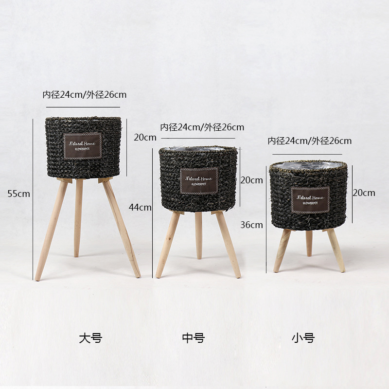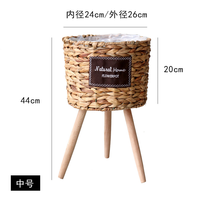 북유럽 스타일 크리에이 티브 등나무 짚 꽃 바구니 나무 높은 꽃 랙 바닥 서 실내 거실 장식 녹색 화분