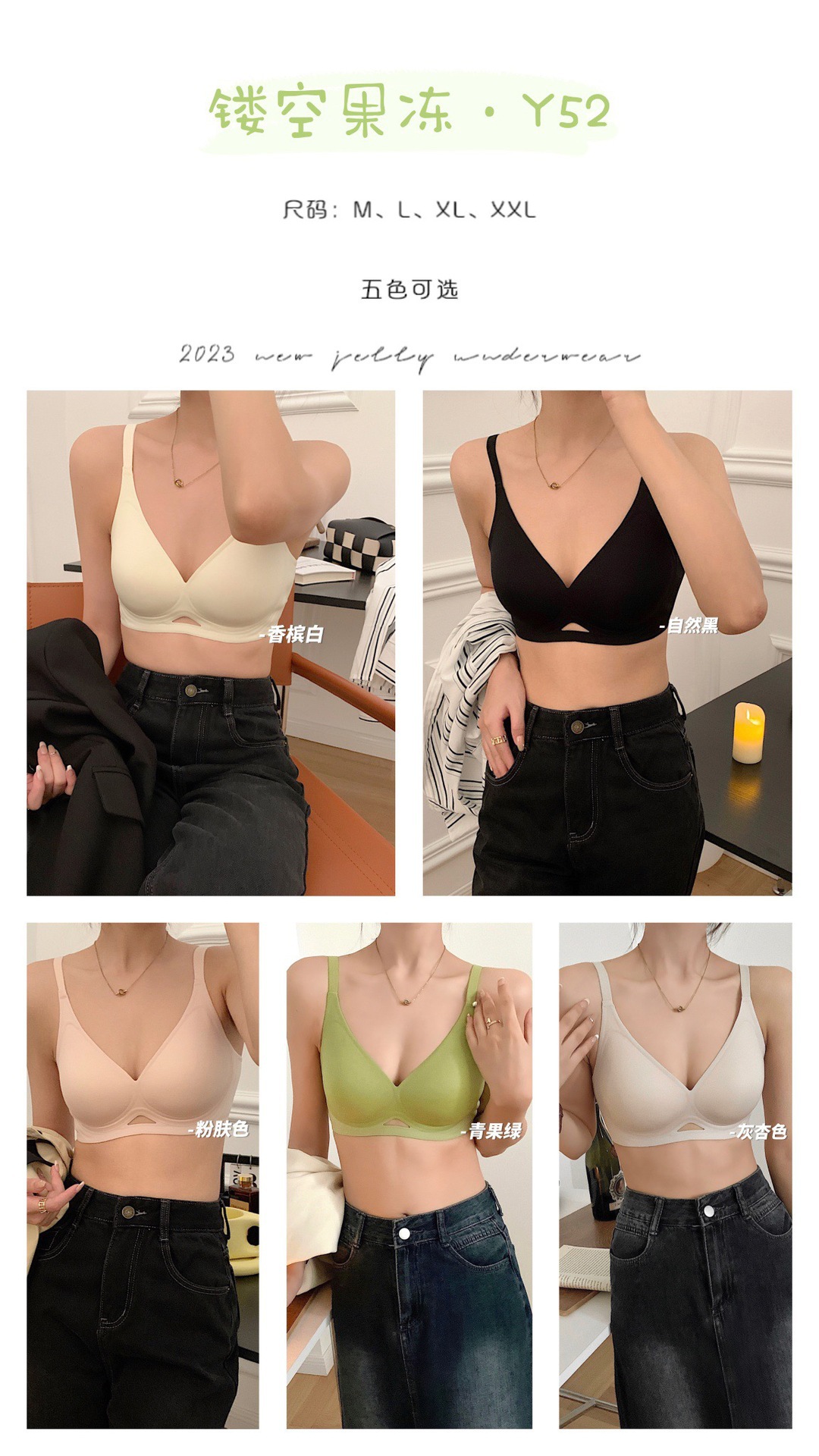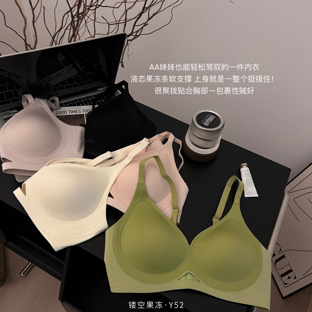Y52 중공 젤리 소프트 지원 고정 컵 속옷 여성용 심리스 풀 작은 가슴 푸시 업 액세서리 유방 뷰티 백 브라스토어 가기