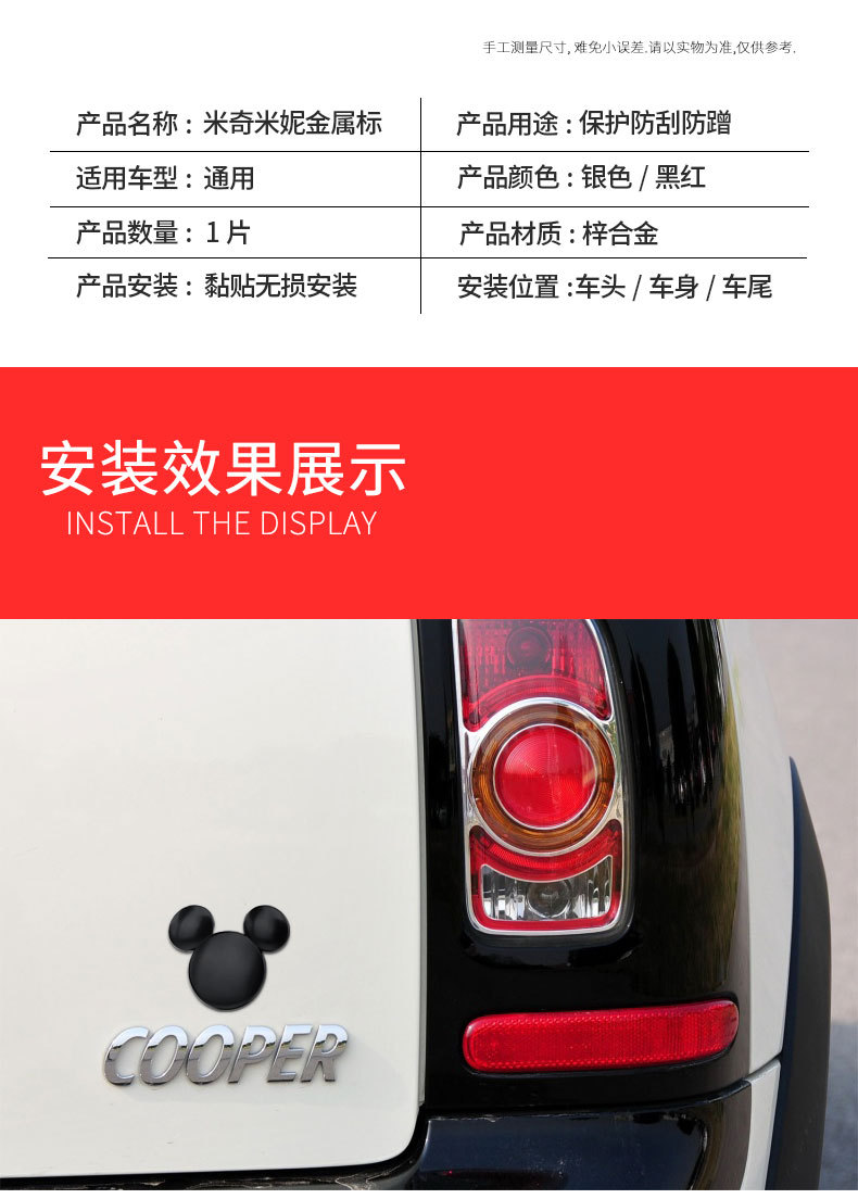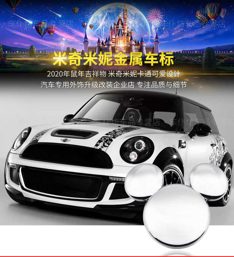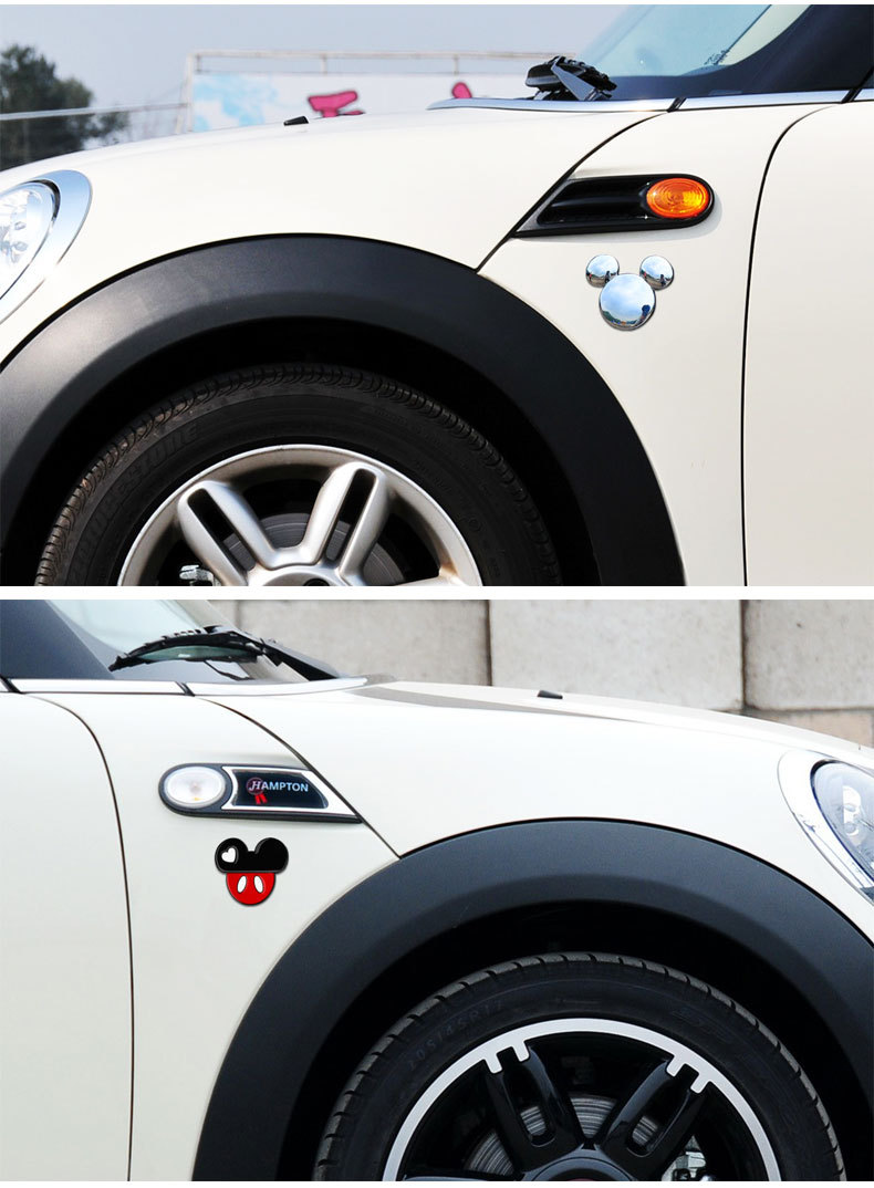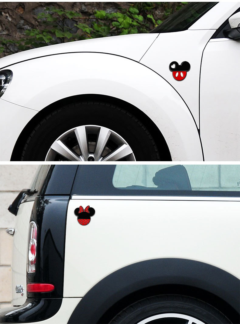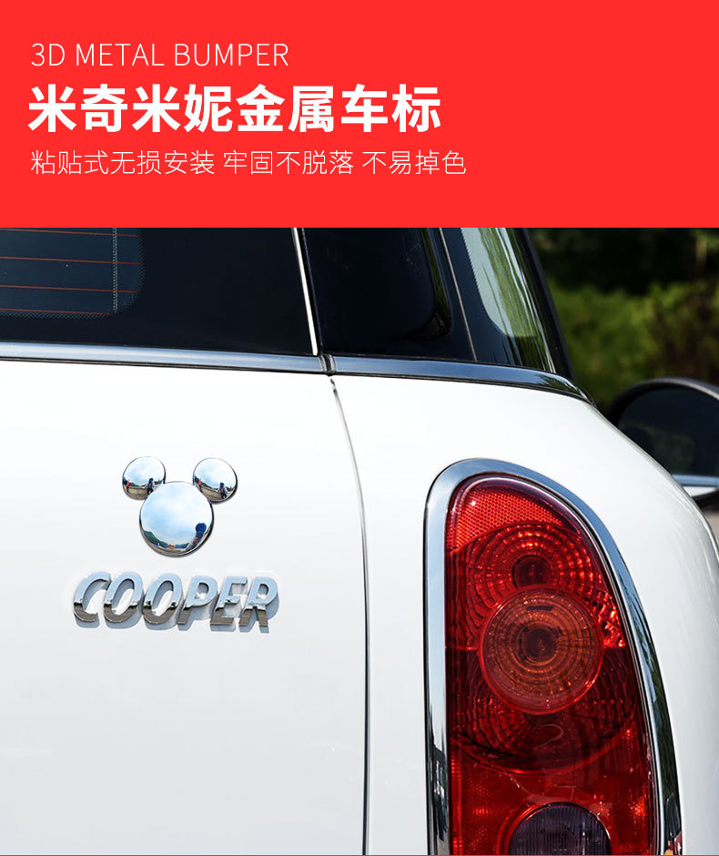크로스 보더 자동차 스티커 자동차 꼬리 로고 3D 입체 미키 창조적 인 성격 귀여운 금속 자동차 로고 스크래치 커버스토어 가기