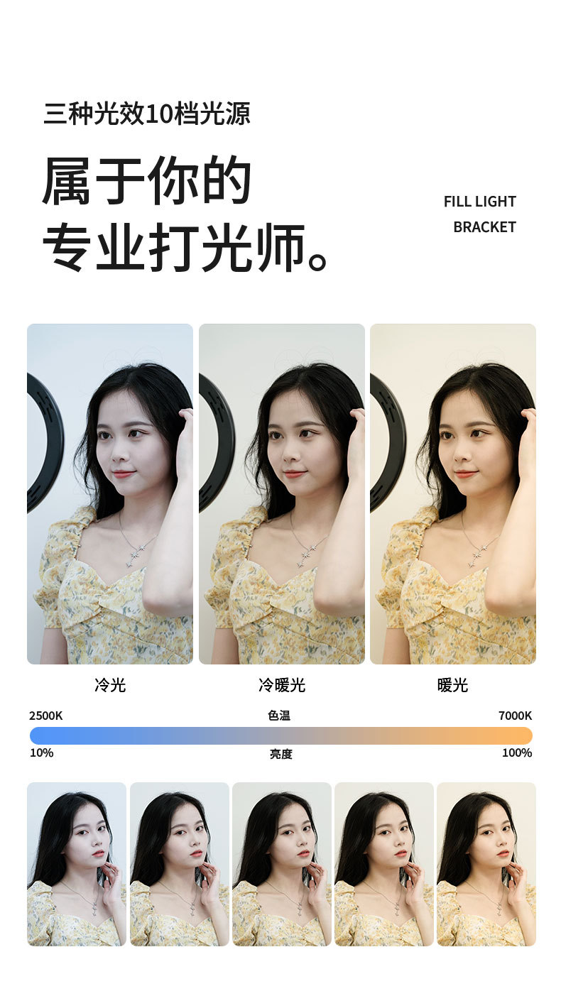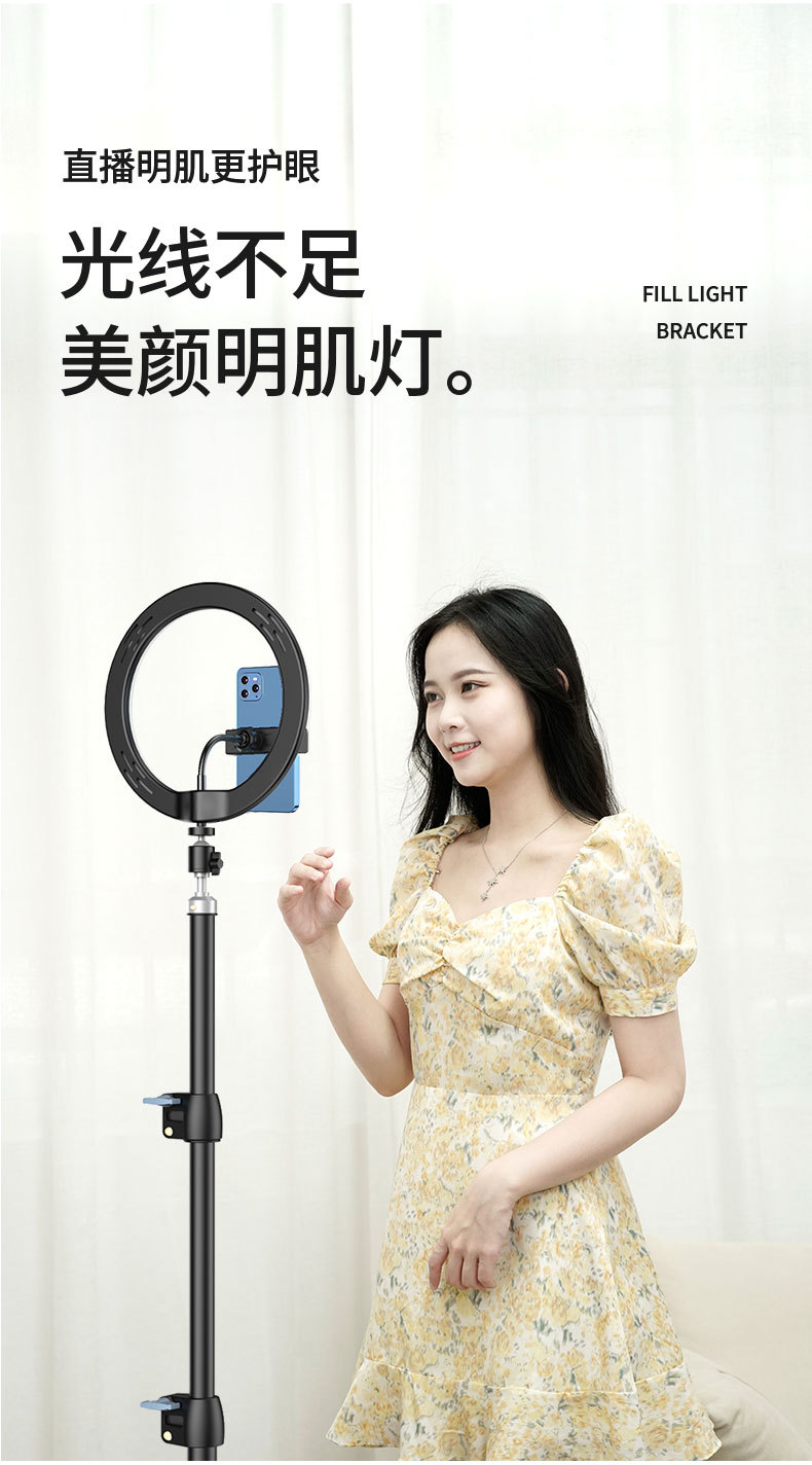 • 2.1 m 브래킷 + 단일 위치 + 보관 가방 + 트레몰로 리모콘 + 직경 26cm 필 라이트