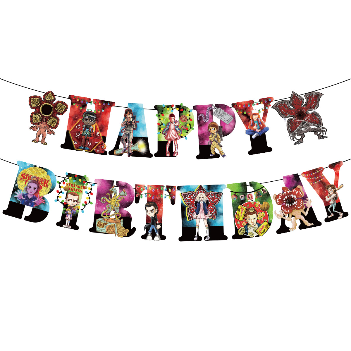 이상한 이야기 테마 생일 파티 낯선 것들 깃발 풍선 케이크 장식 세트