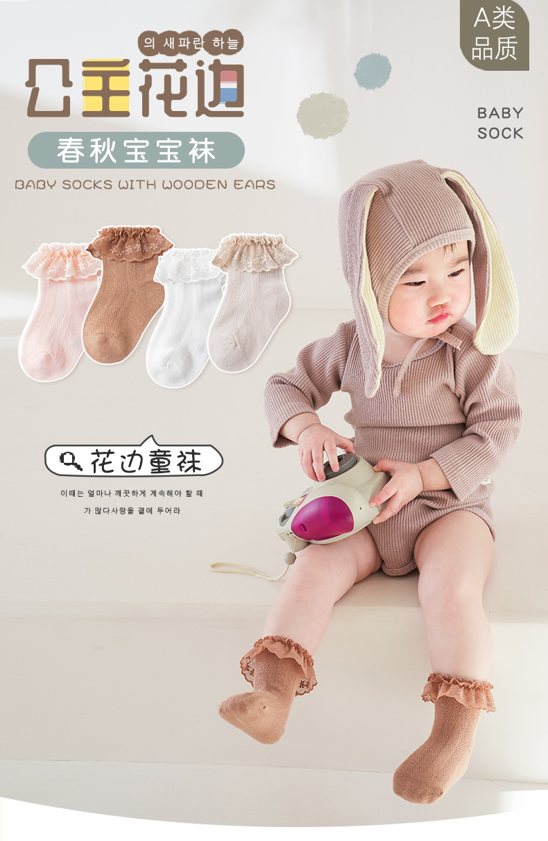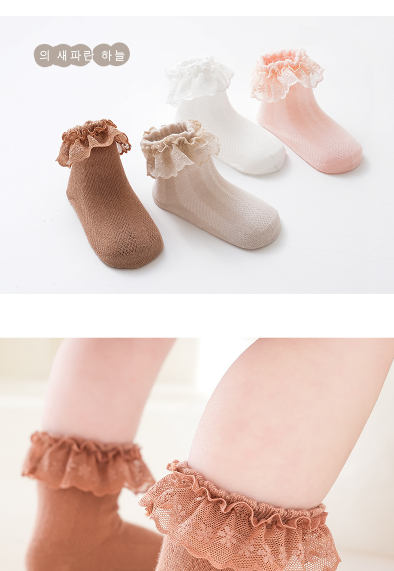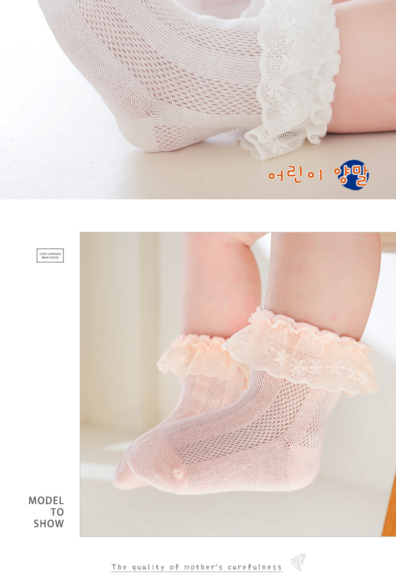 2025 새로운 여름 어린이 레이스 양말 메쉬 빗질면 아기 양말 봄과 가을 중간 튜브 아기 양말스토어 가기