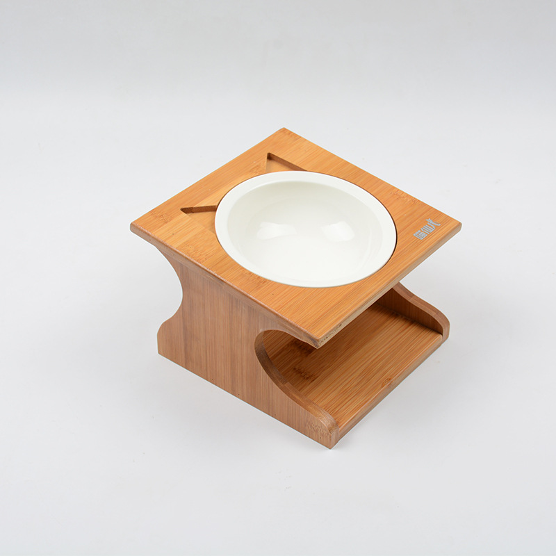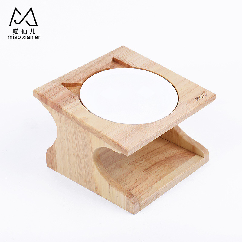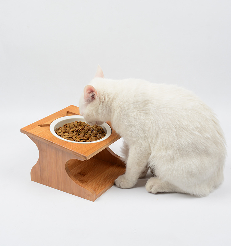 고양이 밥그릇 세라믹 이중 그릇 고양이 사료 그릇 경사형 목 보호 스테인리스 강아지 그릇 물그릇 나무 그릇 받침대 식탁 고양이 용품