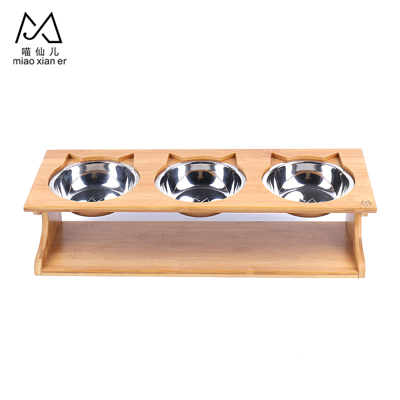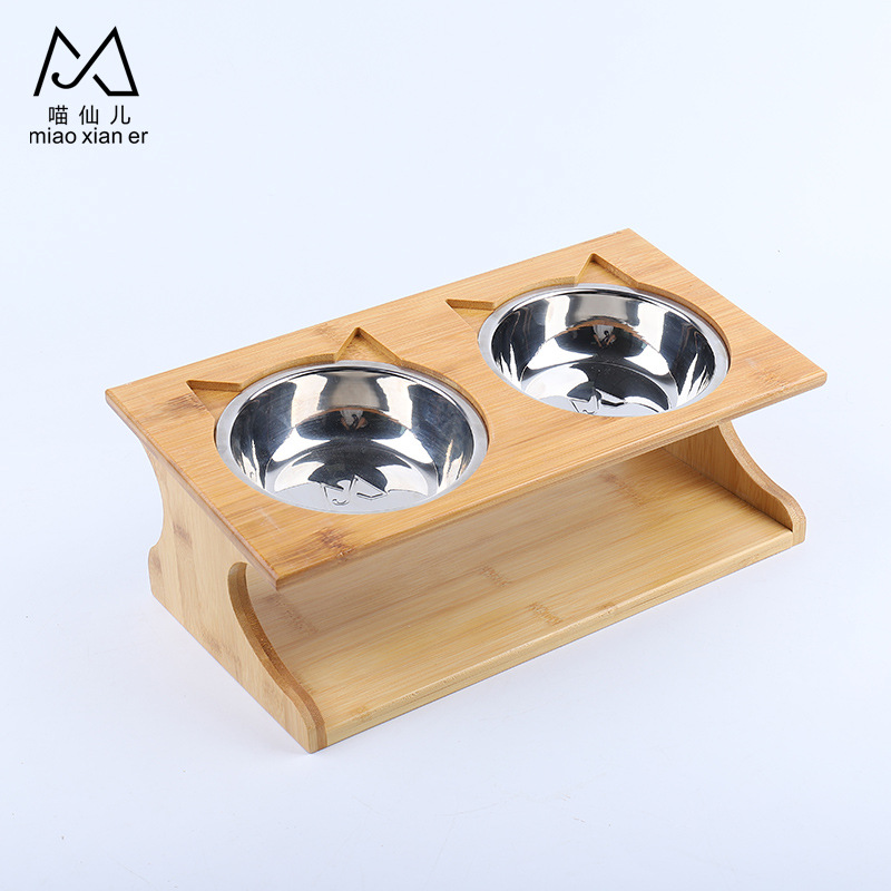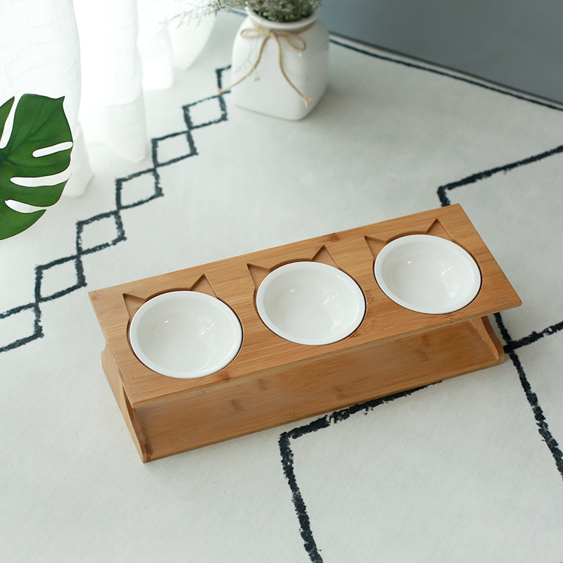고양이 밥그릇 세라믹 이중 그릇 고양이 사료 그릇 경사형 목 보호 스테인리스 강아지 그릇 물그릇 나무 그릇 받침대 식탁 고양이 용품스토어 가기