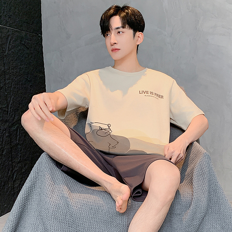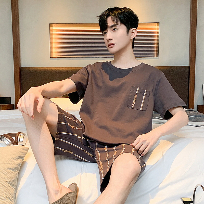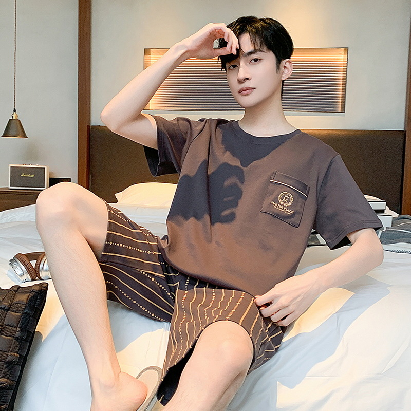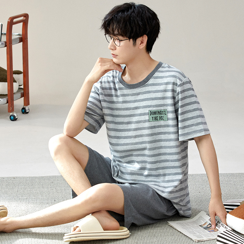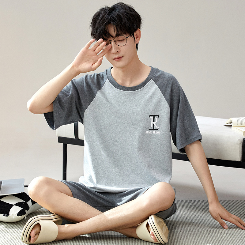 엄격한 선택 2025 남자 잠옷 여름 반팔 반바지 순면 얇은 청소년 플러스 사이즈 캐주얼 홈 의류 세트
