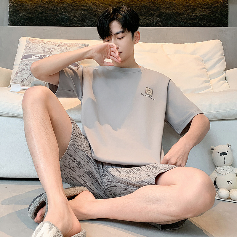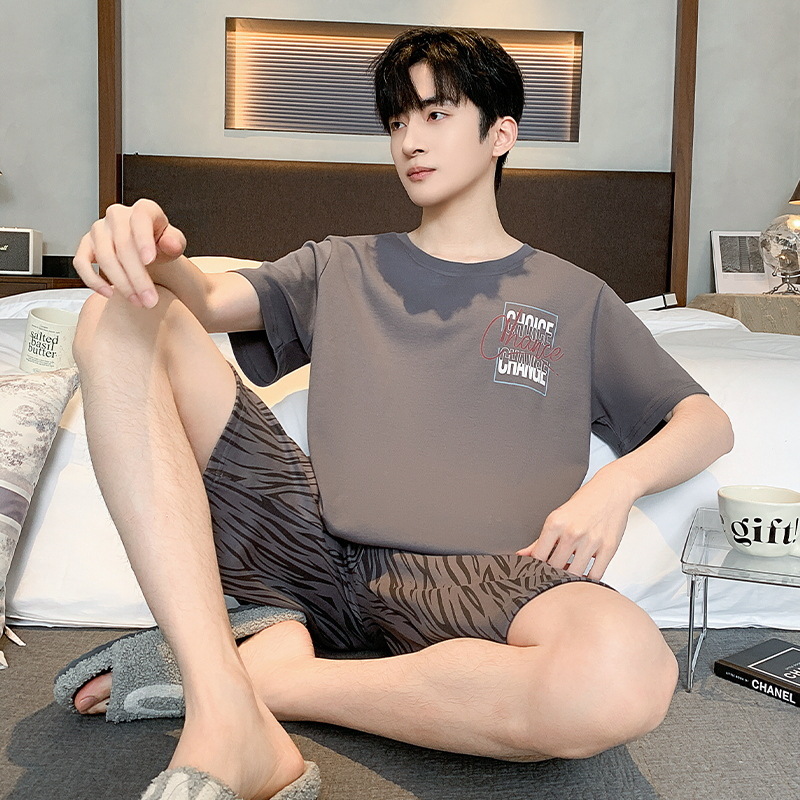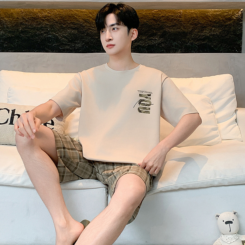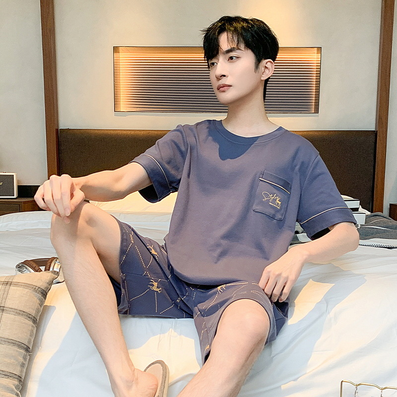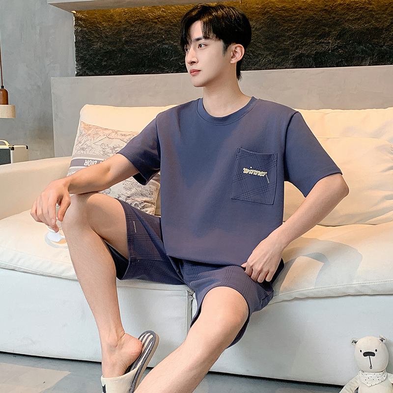 엄격한 선택 2025 남자 잠옷 여름 반팔 반바지 순면 얇은 청소년 플러스 사이즈 캐주얼 홈 의류 세트스토어 가기