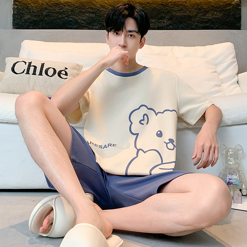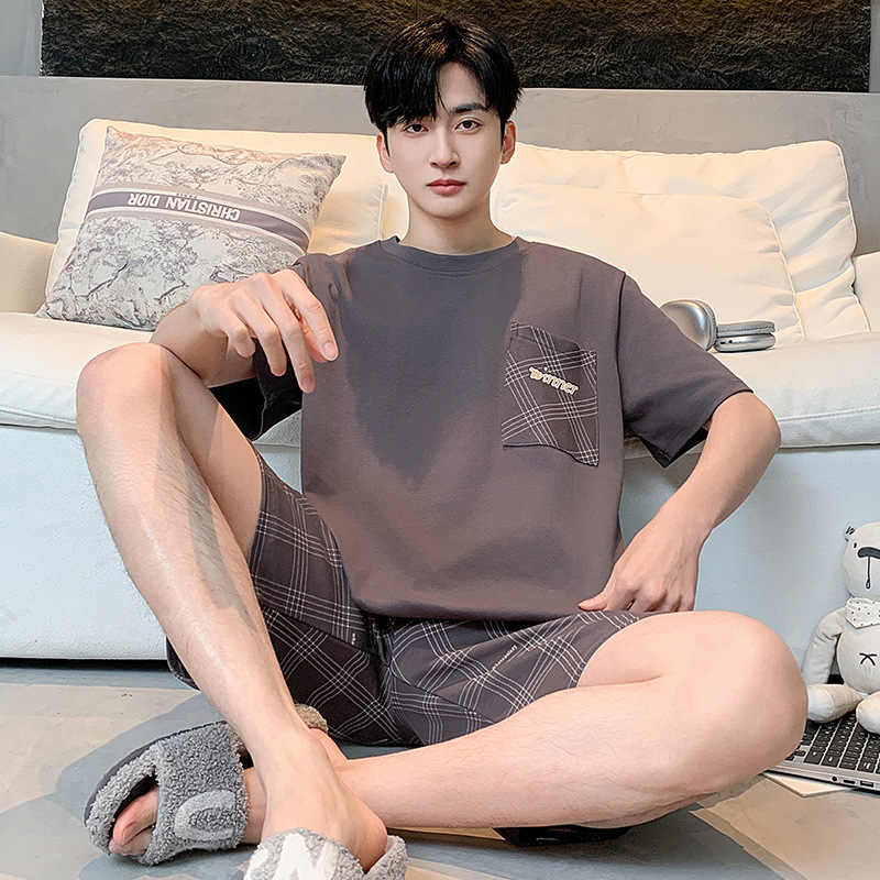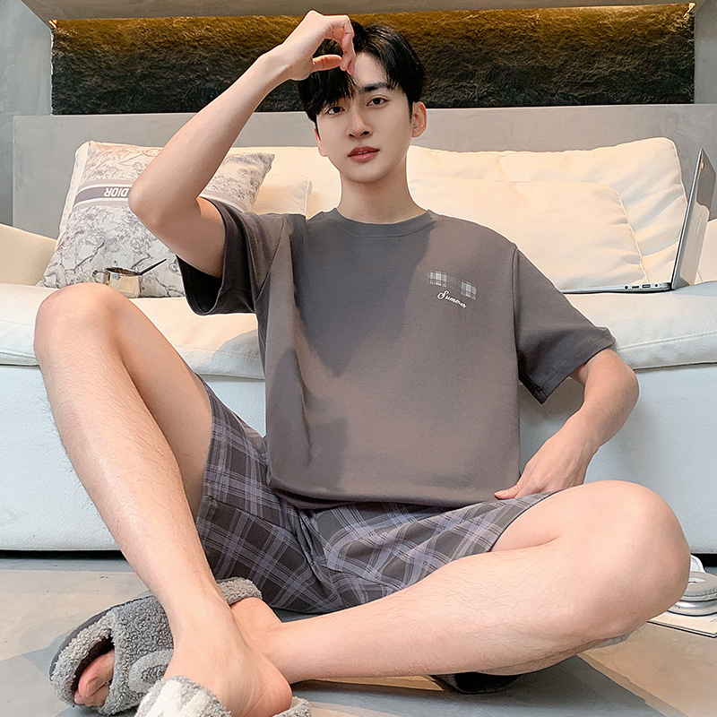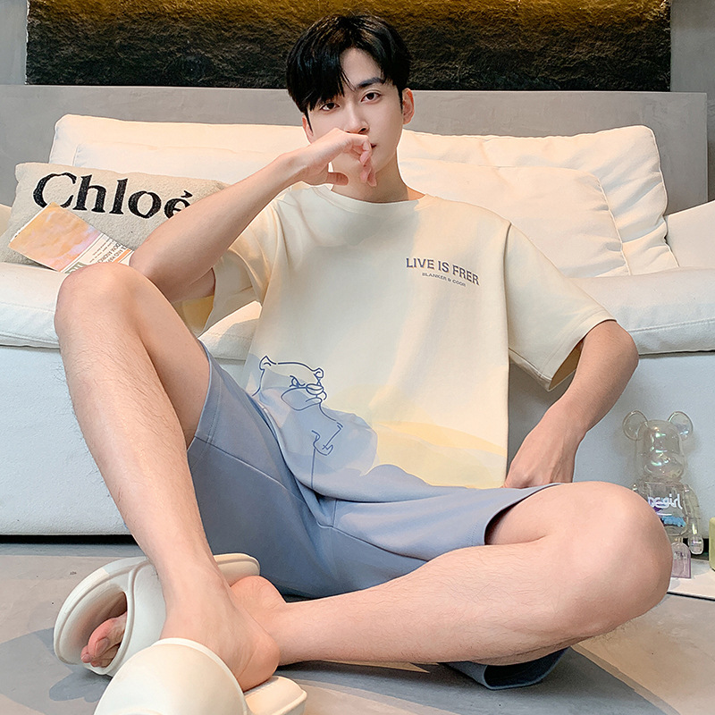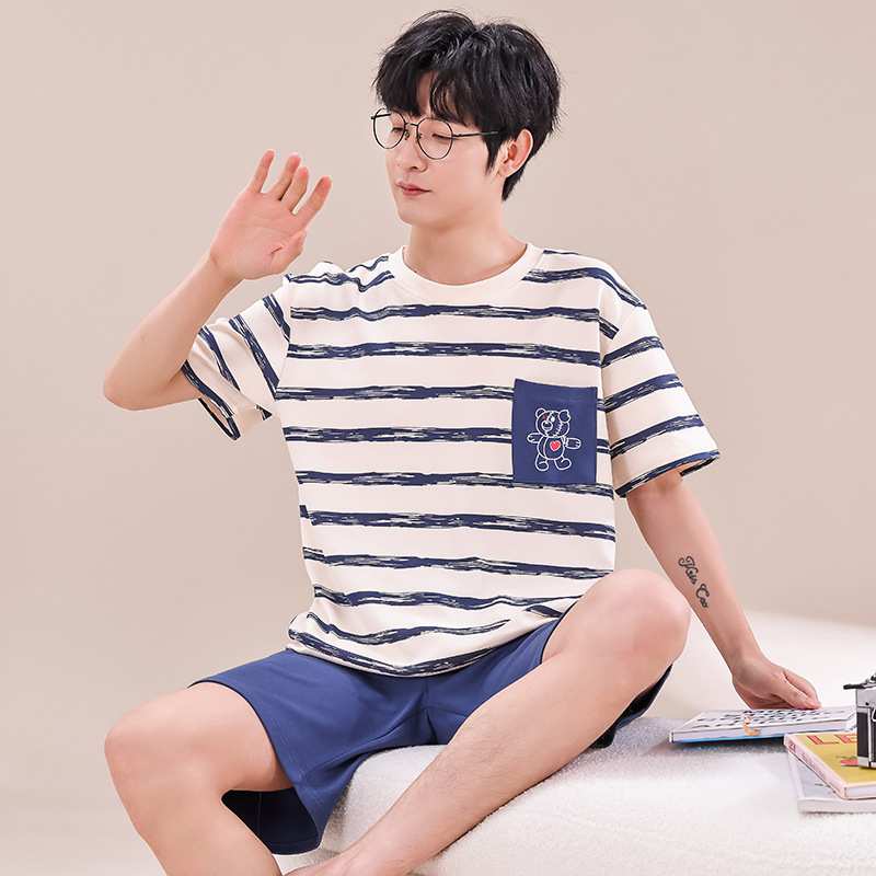엄격한 선택 2025 남자 잠옷 여름 반팔 반바지 순면 얇은 청소년 플러스 사이즈 캐주얼 홈 의류 세트스토어 가기