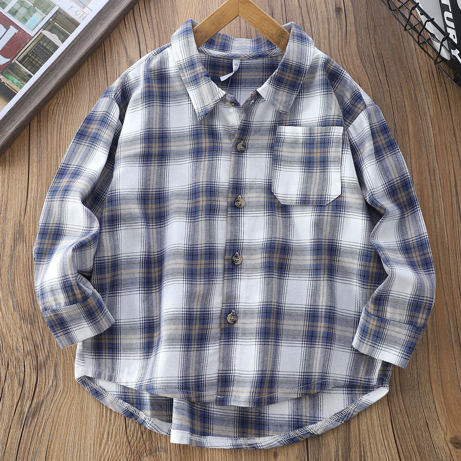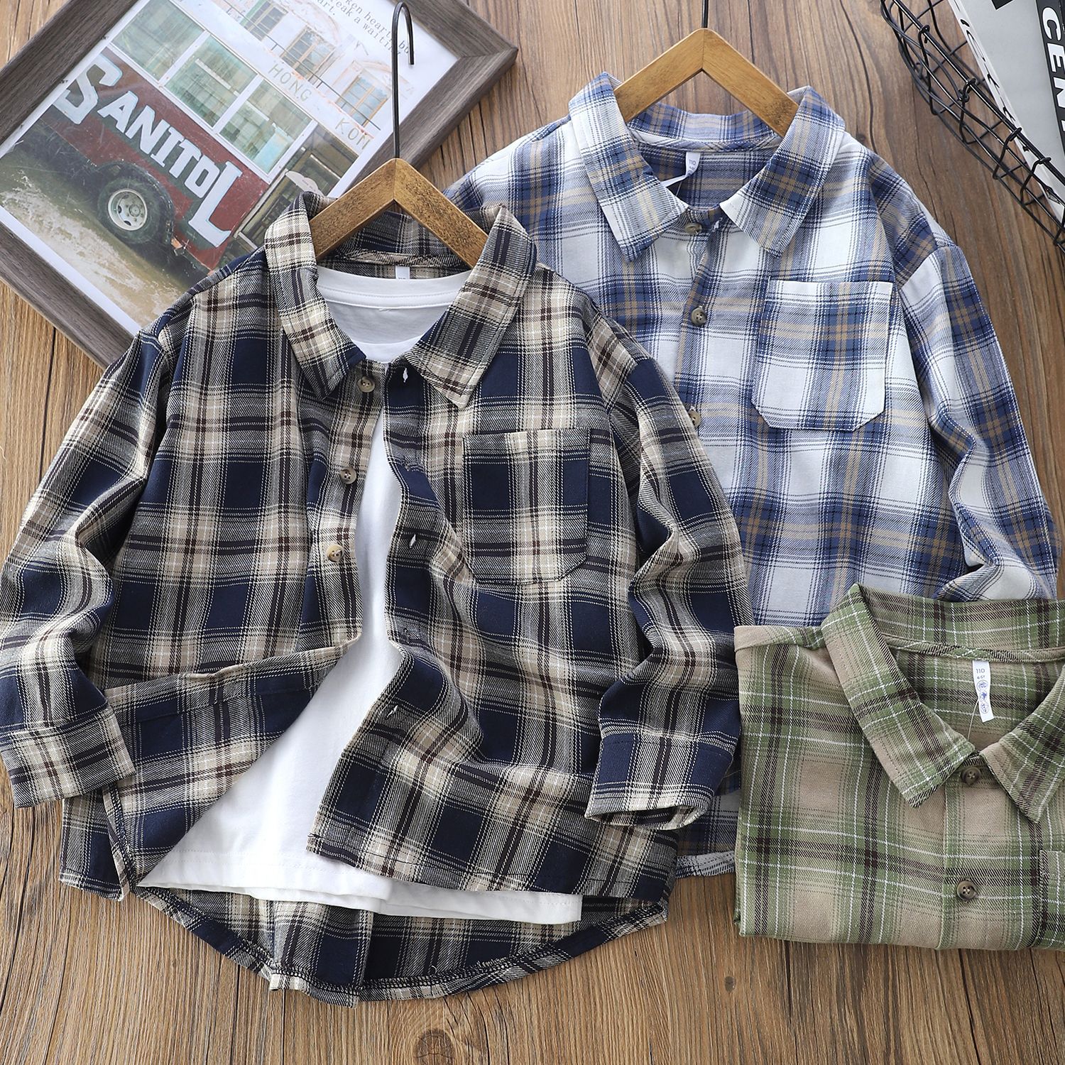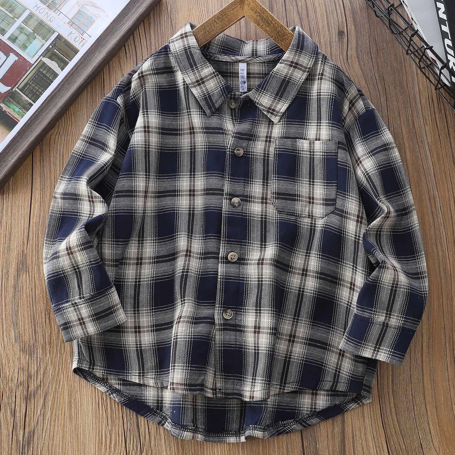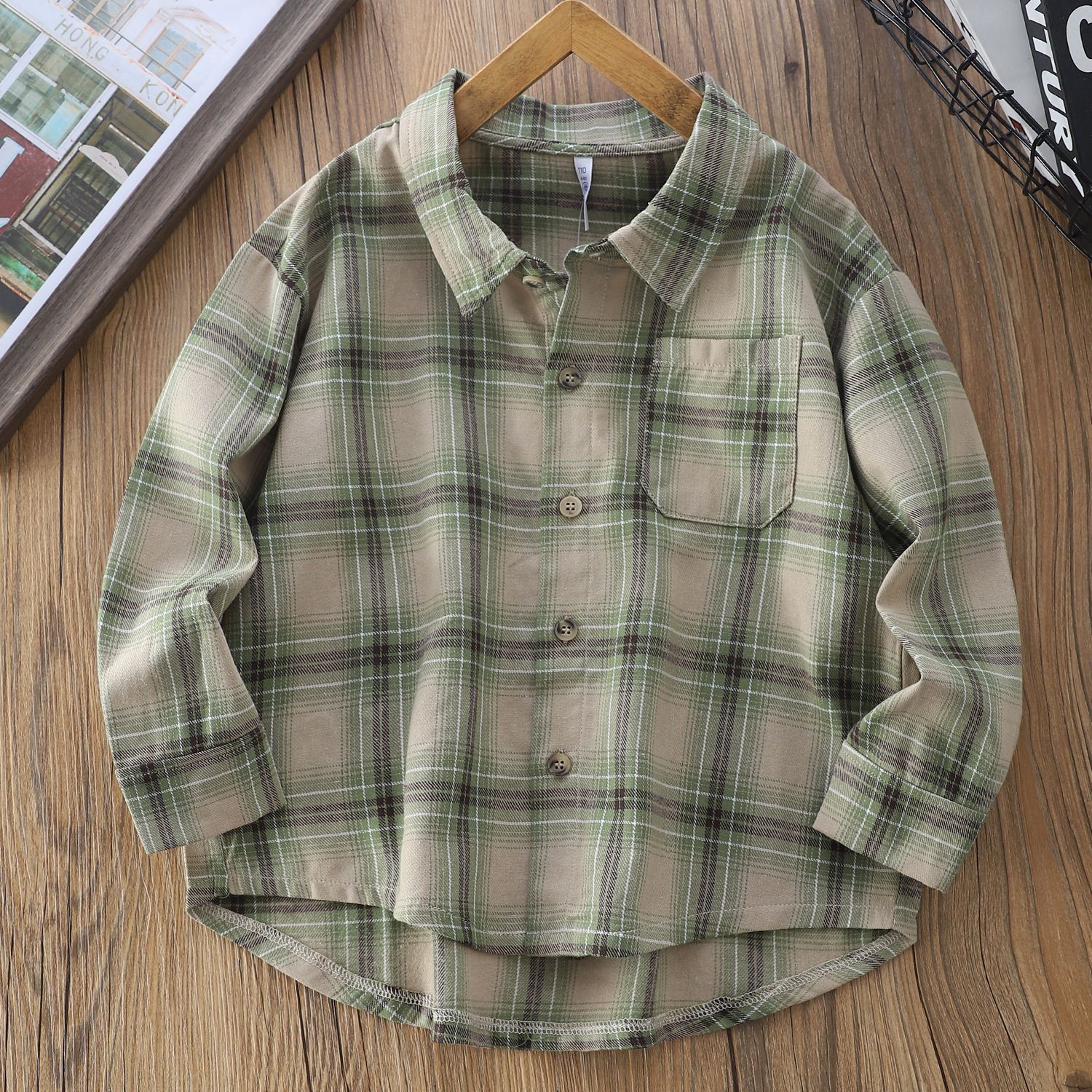 2025秋季爆款儿童格子衬衣春秋季新款男孩中大童衬衫韩版潮范男童衬衣翻领开衫jxk5317
