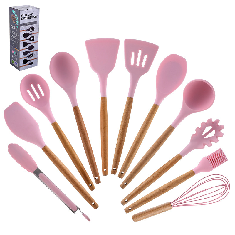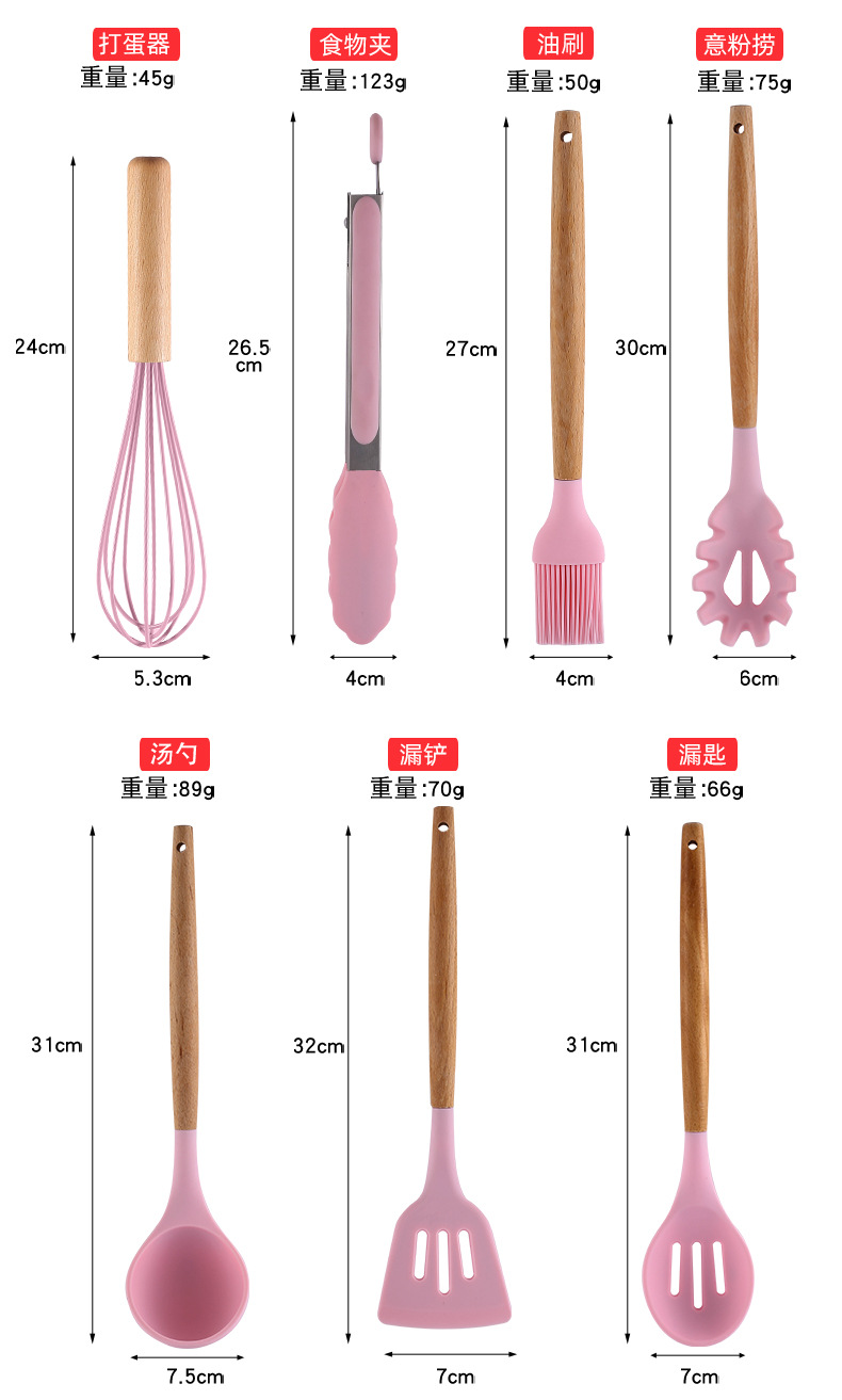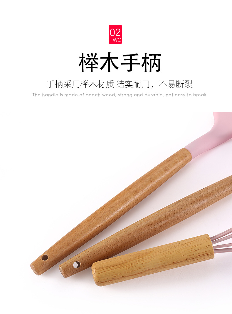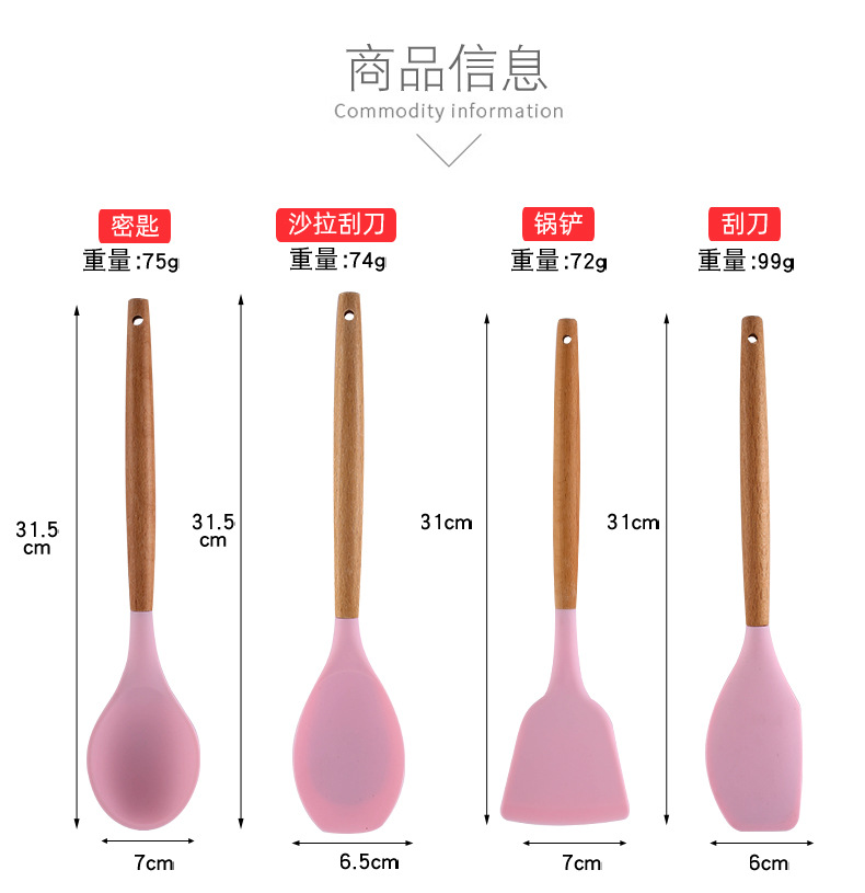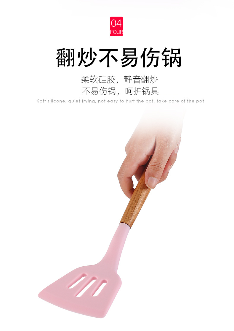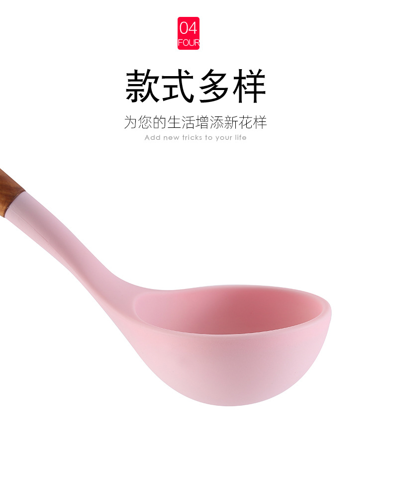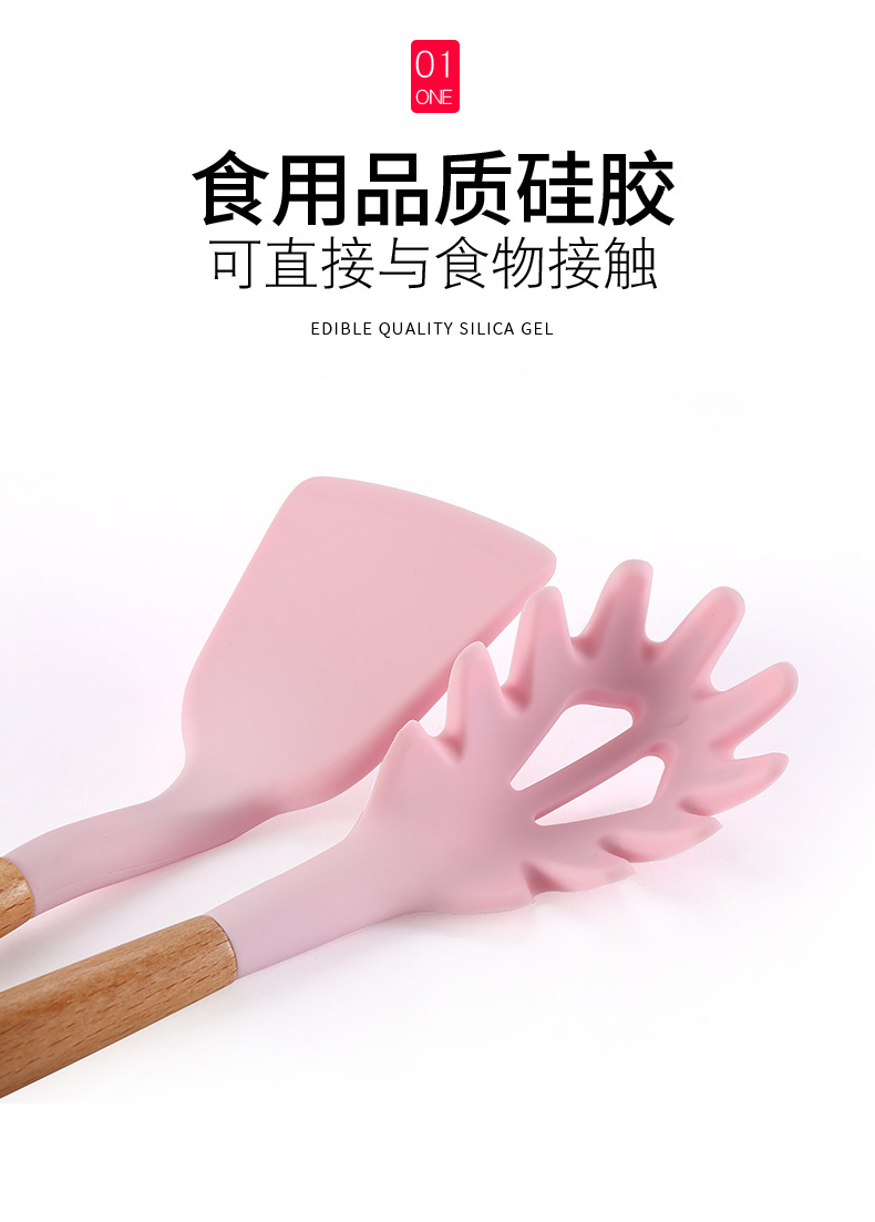 실리콘 나무 손잡이 주방용품 베이킹 도구 나무 손잡이 실리콘 주방용품 스틱 요리 스파게티 숟가락 음식 클립