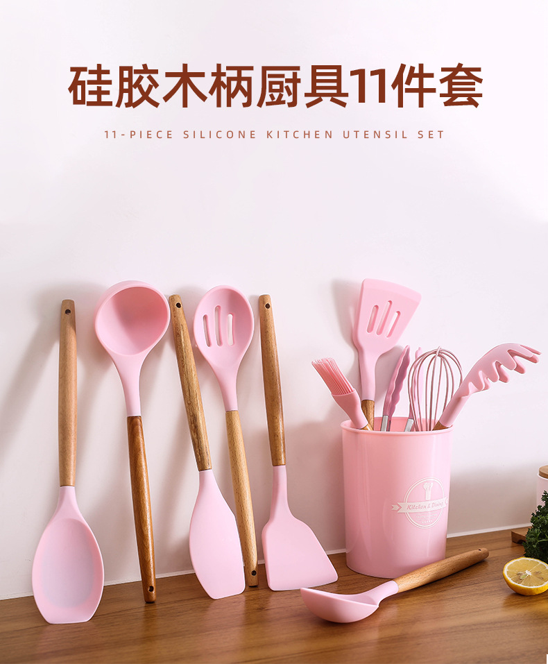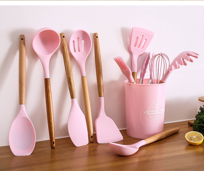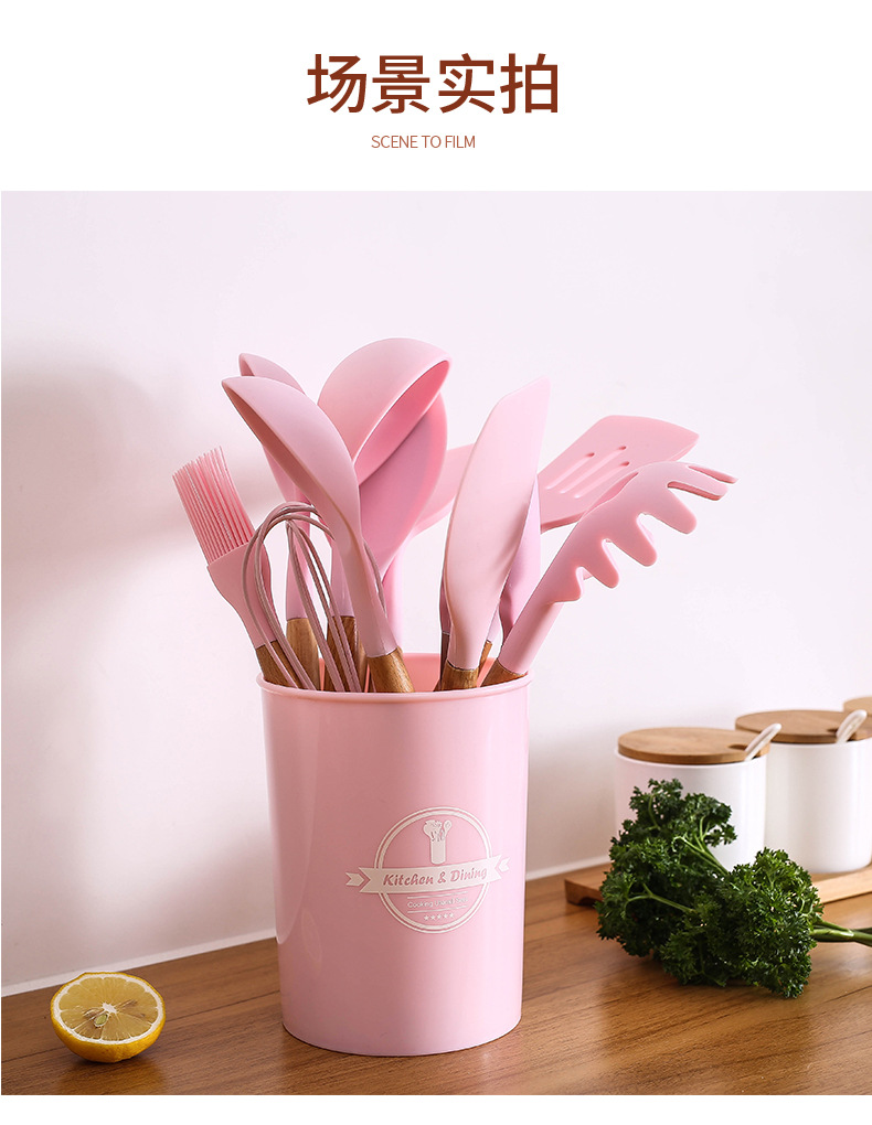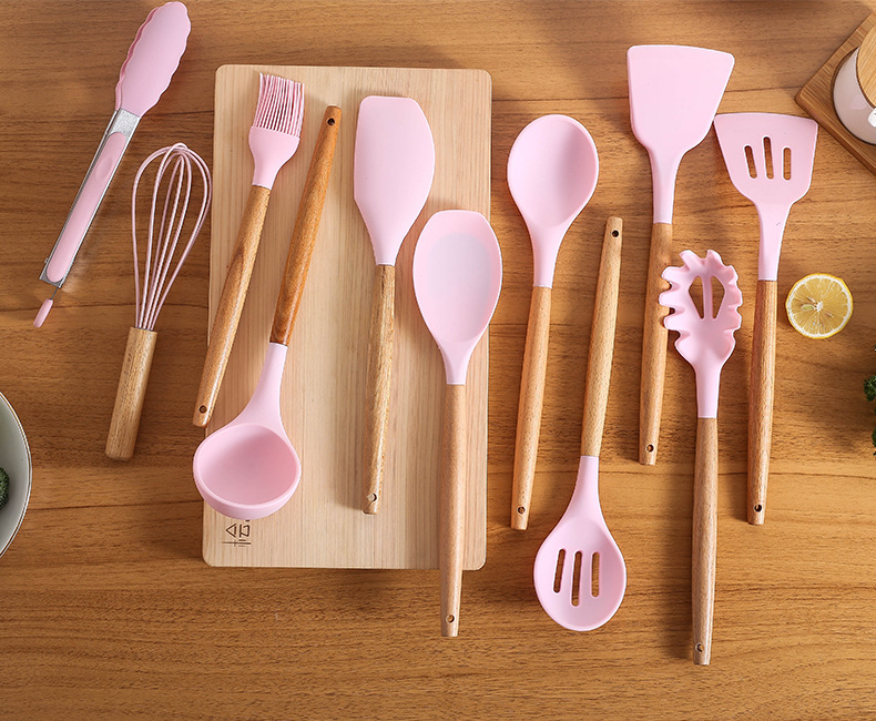 실리콘 나무 손잡이 주방용품 베이킹 도구 나무 손잡이 실리콘 주방용품 스틱 요리 스파게티 숟가락 음식 클립스토어 가기