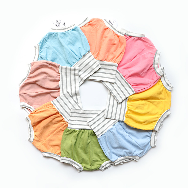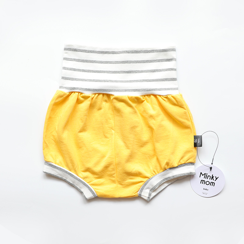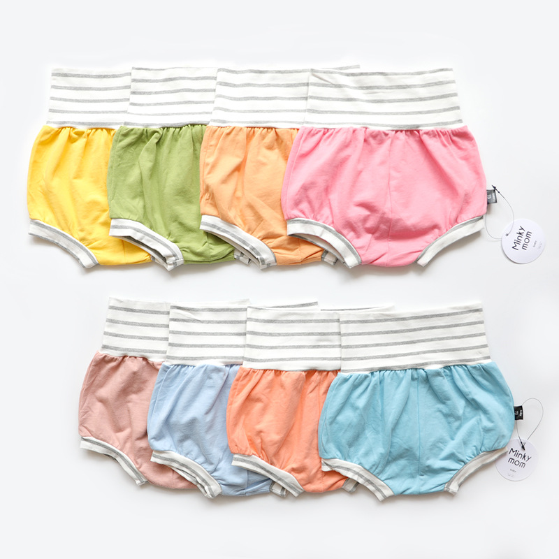 2023 아기 아동복 새로운 여름 minkymom 코튼 캔디 컬러 스웨터 하이 웨이스트 배 보호 빵 바지
